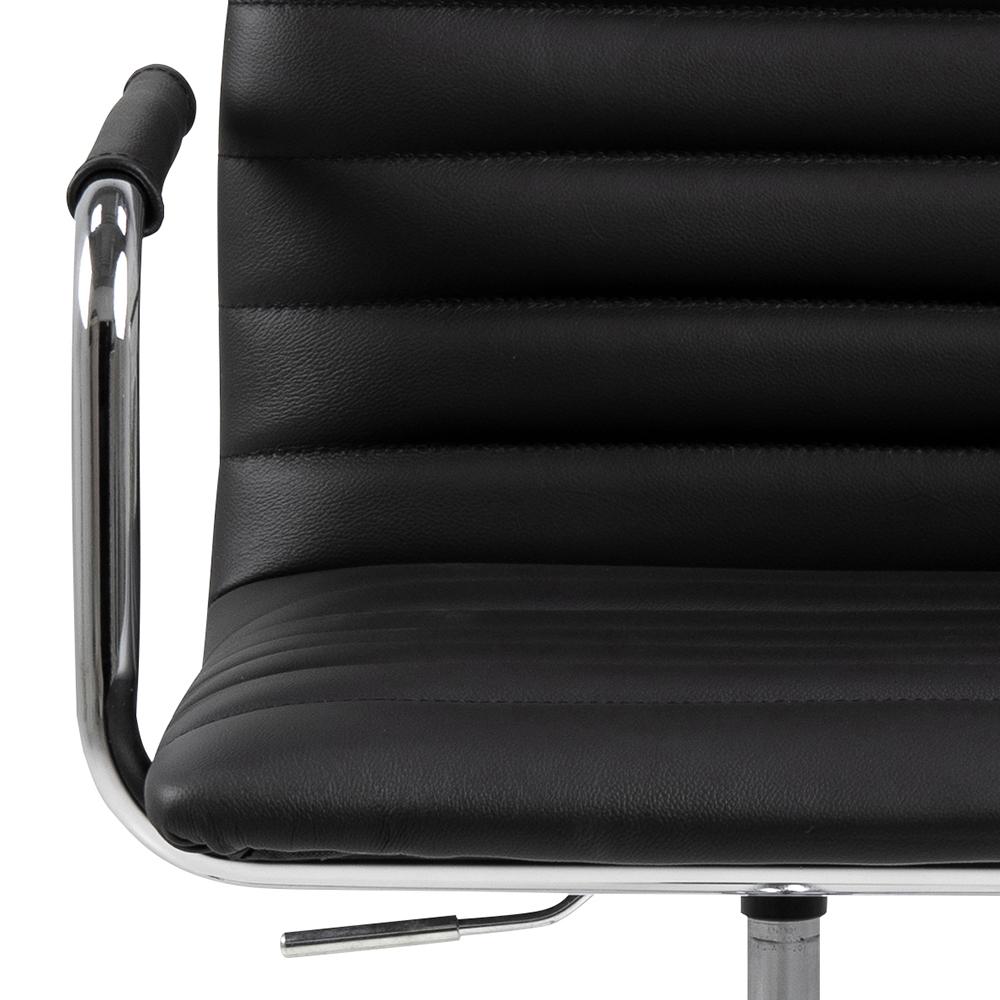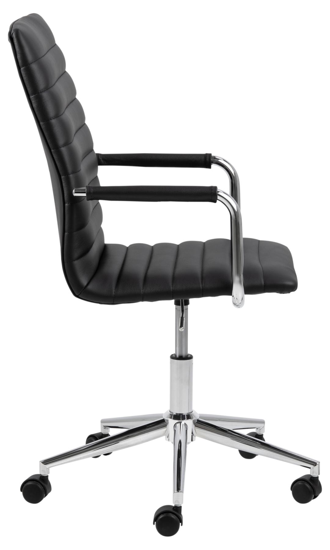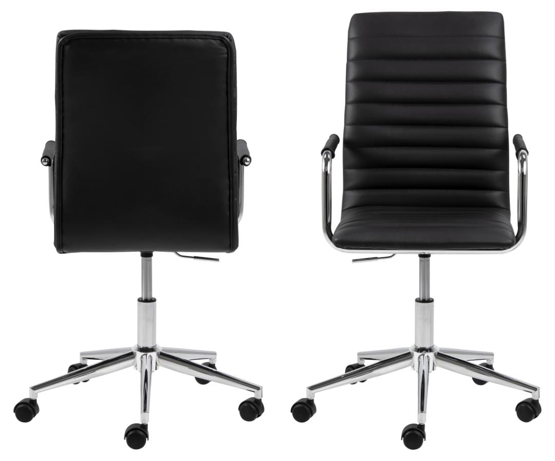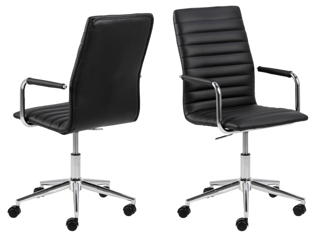 Winslow darbo kėdė su porankiais, juodas Lido, penkių atšakų pagrindas – chromuotas plienas, ratukai su stabdžiais, dujinis pakėlimo mechanizmas, aukštas atlošas, horizontalūs dygsniai ir pasukimo funkcija.