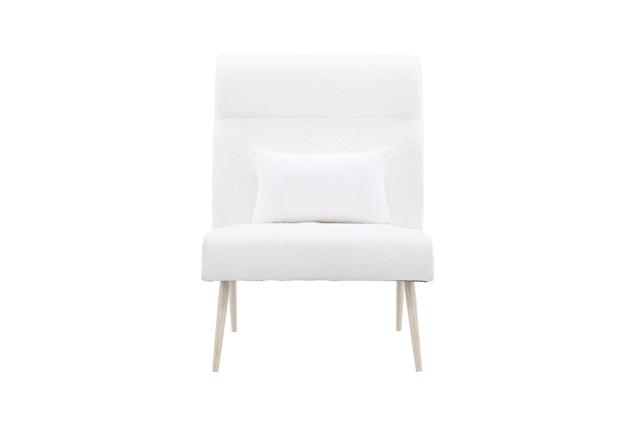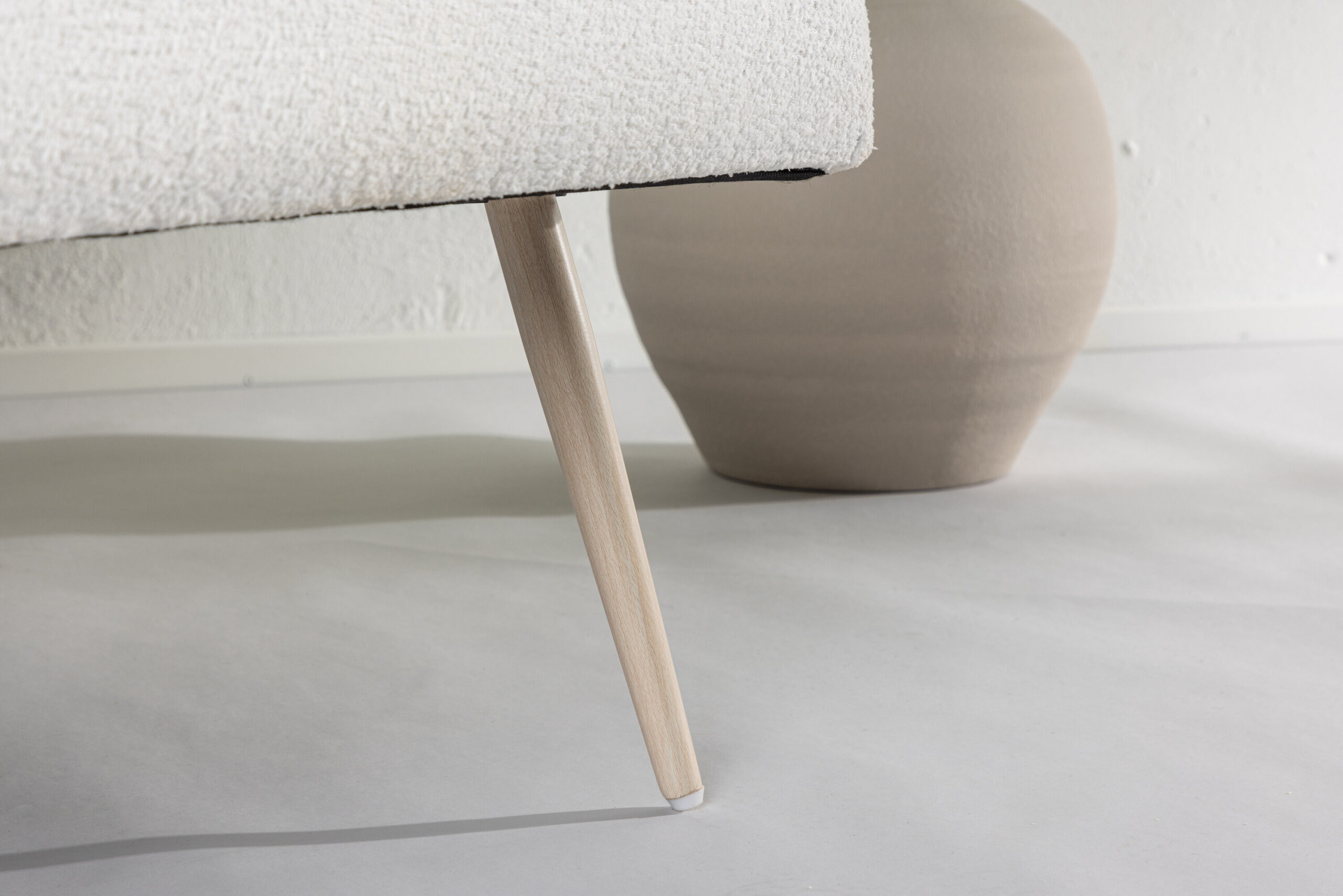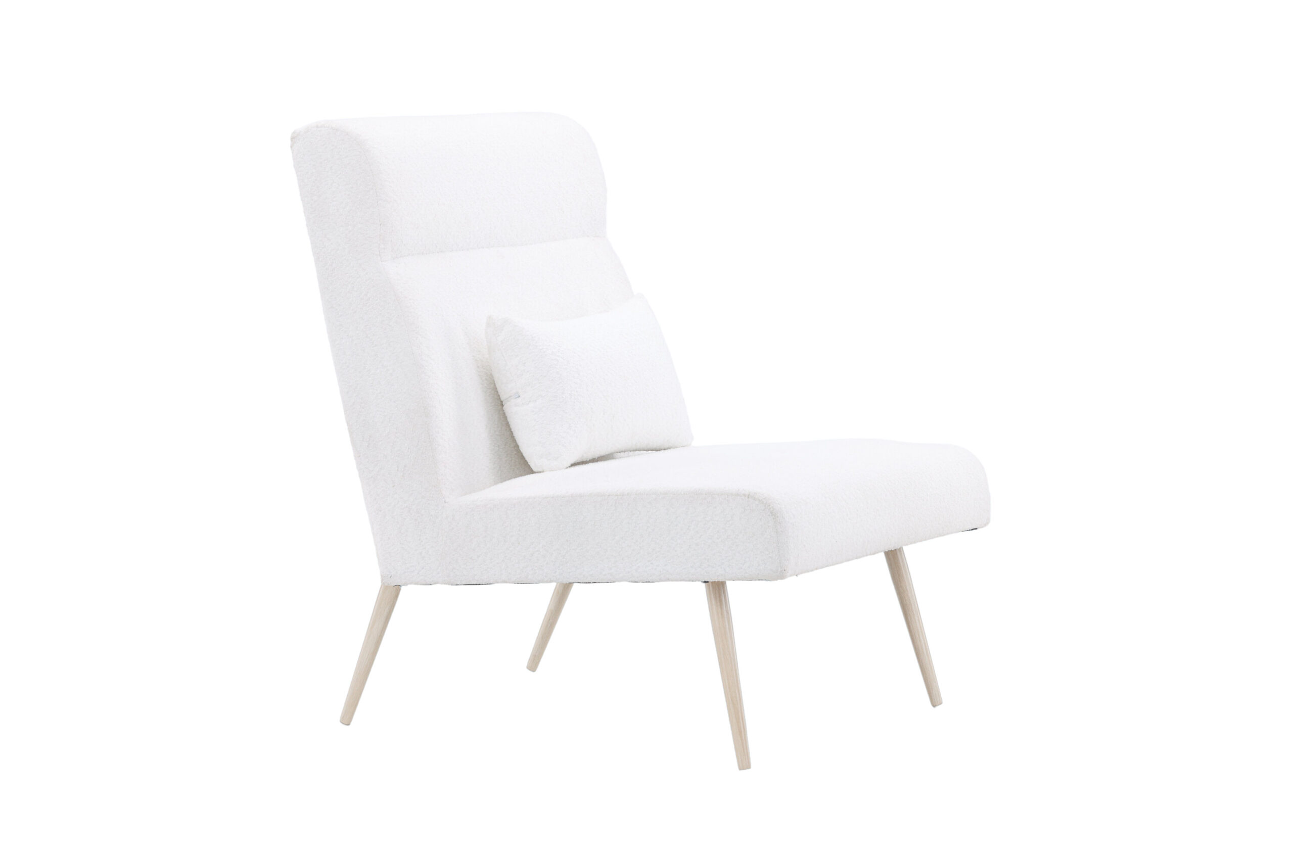 Stylish, minimalist and inviting! This white teddy chair from the Bloom series has everything you dream of in an armchair. The Scandinavian design is well thought out with a compliant seat with built -in headrest and pillow to the back end for extra convenience. The fully -clad upholstery is in furry, white teddy fabric and the legs are easily flared in white washed wood. The generous seat depth and wide seat gives you a comfortable armchair that you are happy to settle down after a long day. Place next to the sofa group to create extra seating or alone as a style icon to get a modern eye -catcher in your home. Only the imagination sets limits and it is you who chooses!