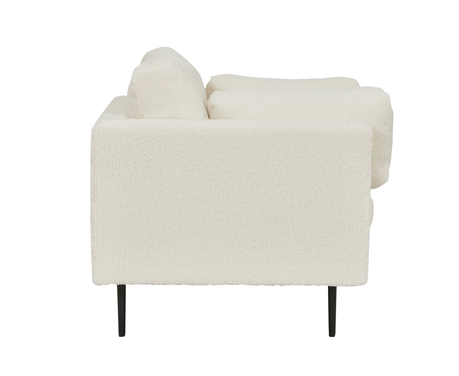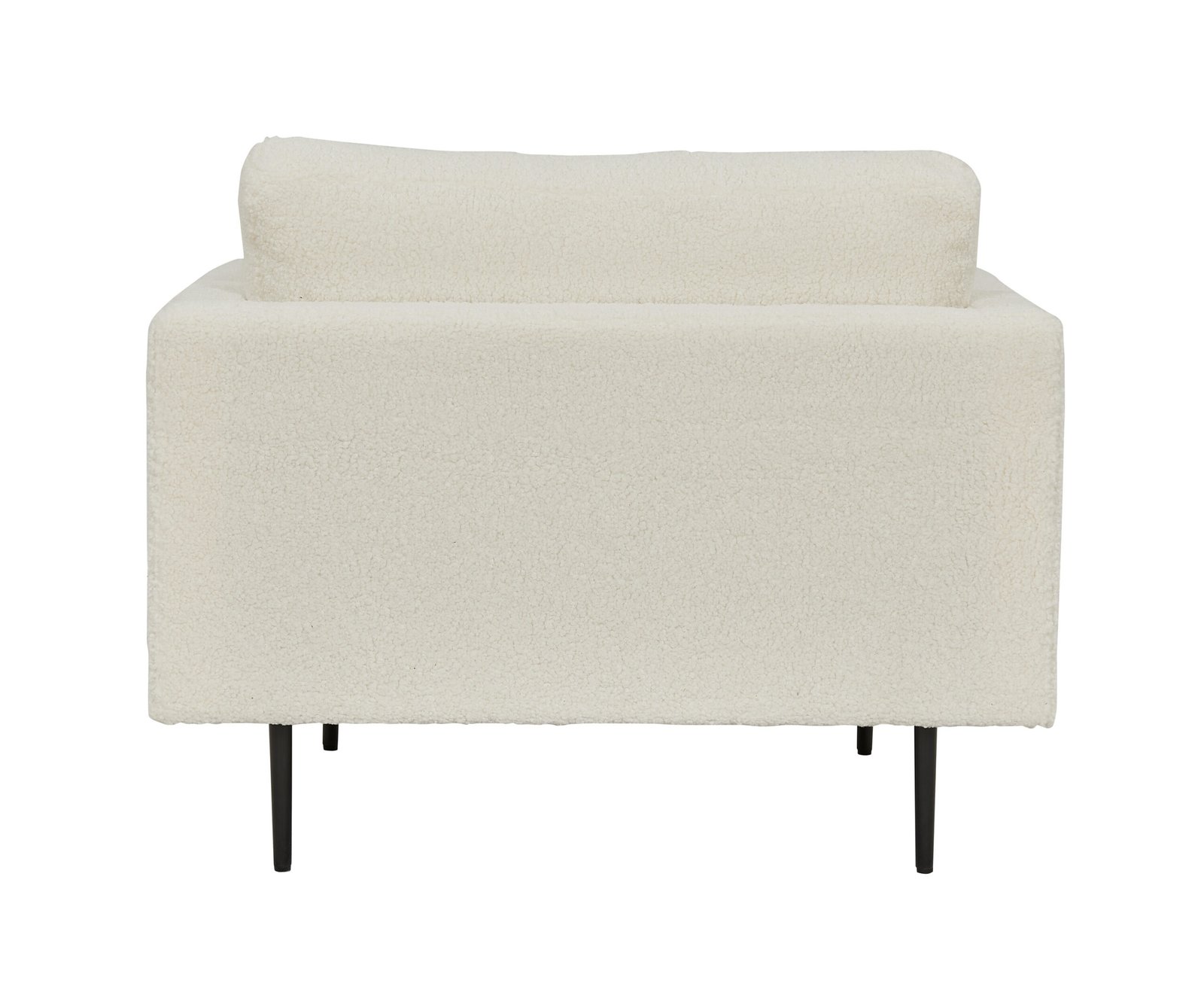 Jaukus, prabangus ir neįtikėtinai patogus - tiesiog tikras fotelis! Mūsų stilingas Boom Inger kolekcijos fotelis neįtikėtinai šildys ir kvies į namus, neabejotinai namuose praleisite žymiai daugiau laiko. Kreminės baltos spalvos Teddy audinio dėka, fotelis yra toks pat patogus, kaip ir madingas. Dizainas nesenstantis - ramios šiaurietiškos formos ir siauros metalinės kojos. Pasidovanokite sau malonią atsipalaidavimo vietą ir leiskite foteliui tapti svetainės ašimi!