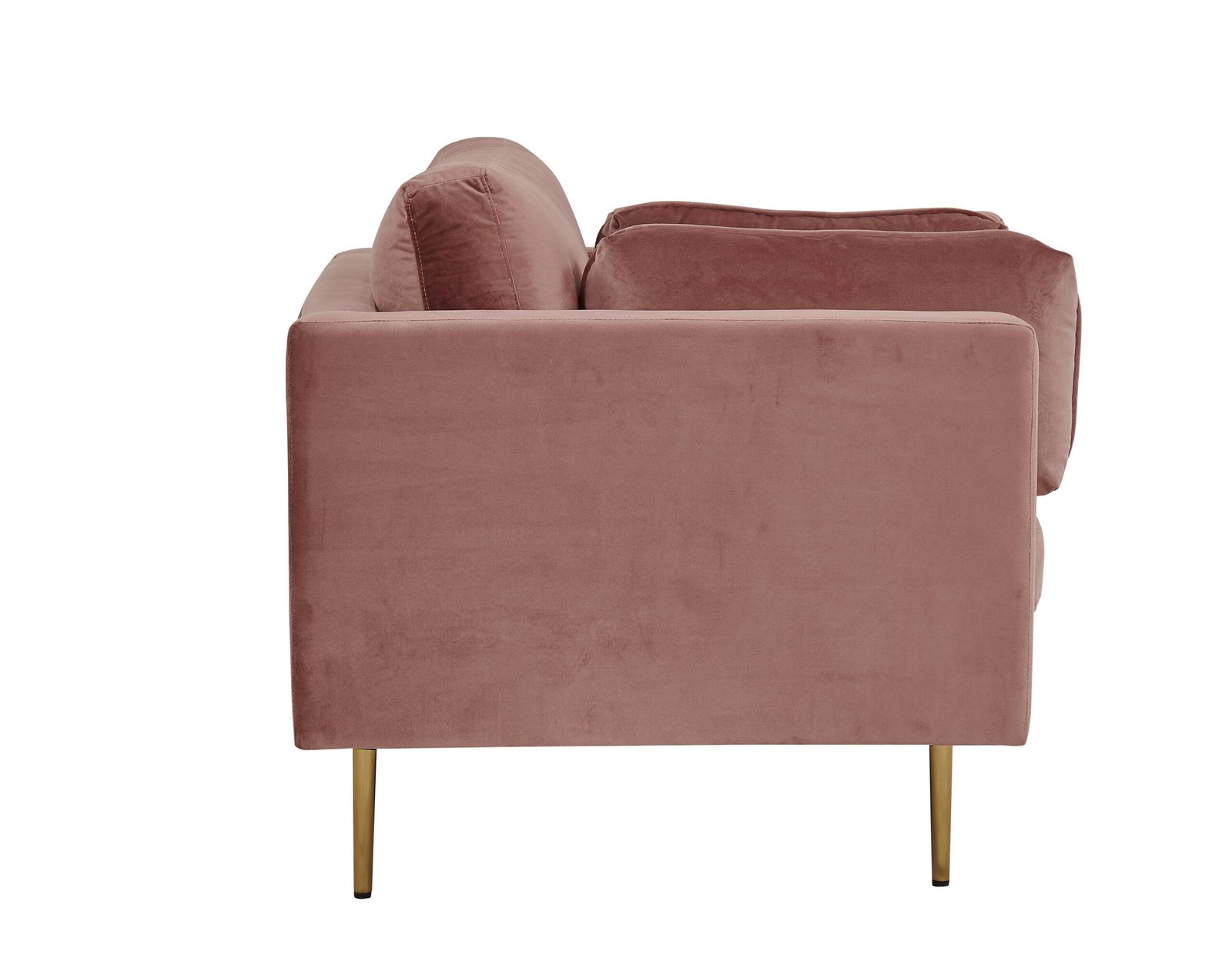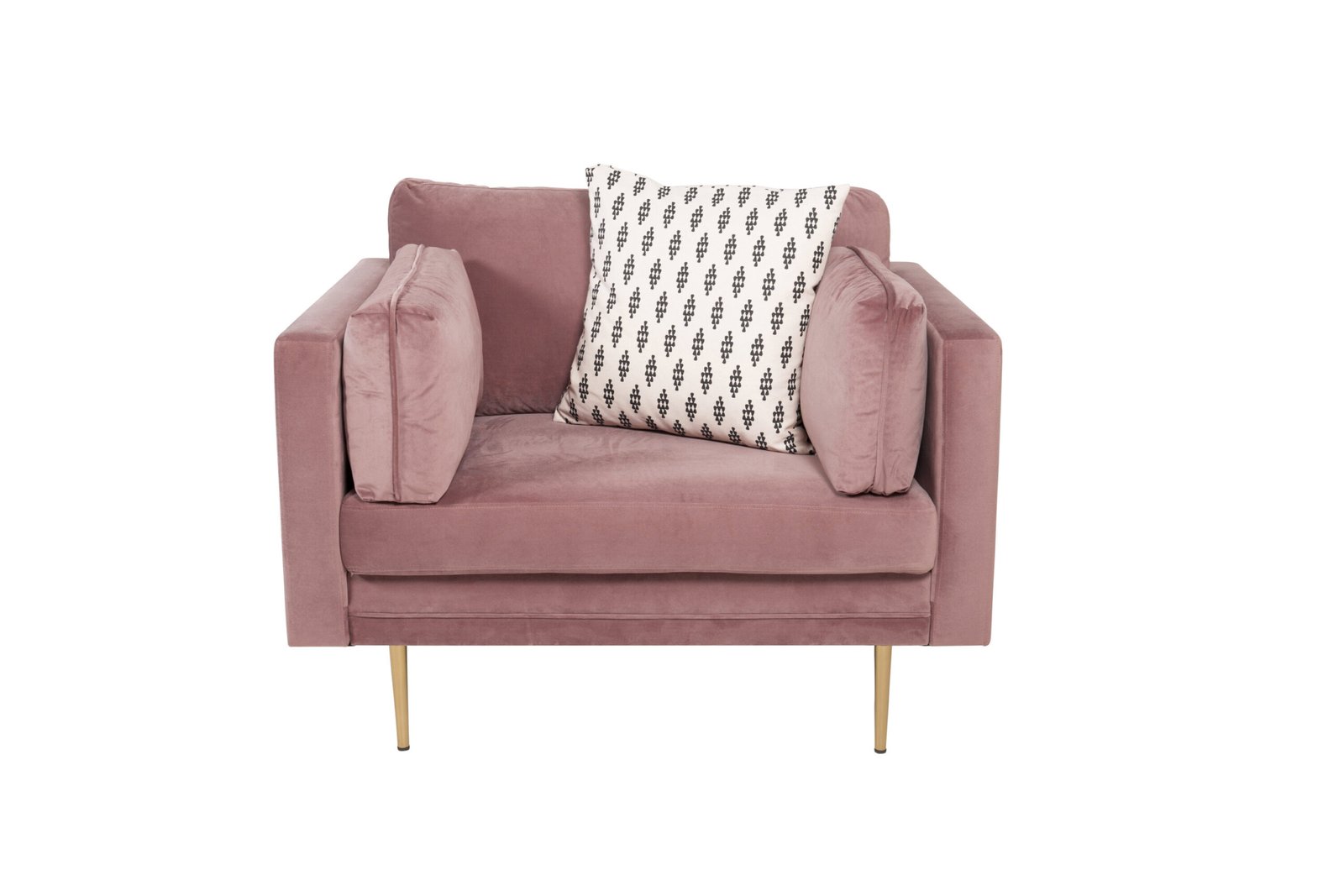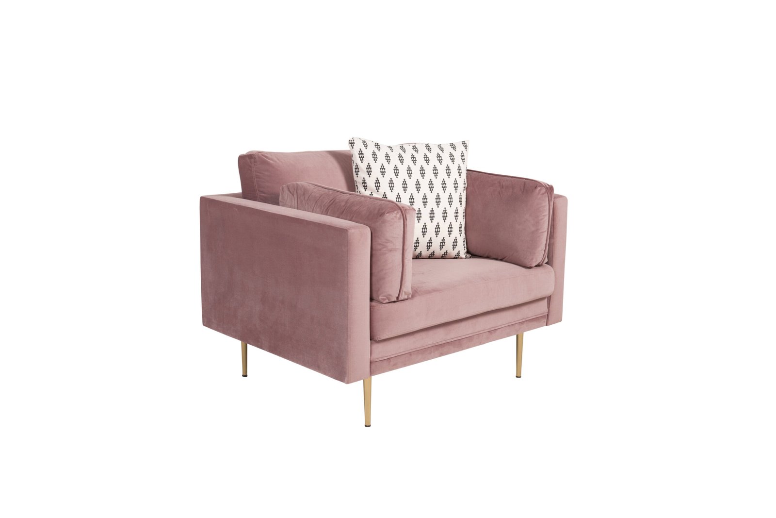 Fotelis, kuris daro įspūdį – papuoškite savo namus gražiu spalviniu akcentu nuostabia sendinta rožine spalva! Fantastiškai apgalvotas Boom serijos bendras dizainas – tiesios, bet kartu minkštos formos, siauros, aukštos kojos ir didelis sėdimosios dalies gylis sukuria erdvumo ir jaukumo pojūtį. Elegantiškas Lena aksomo audinys suteikia svetainei gražaus blizgesio ir modernią išvaizdą. Pastatykite atskirai kaip stiliaus ikoną arba grupėje kartu su 3 vietų sofa, kuri taip pat priklauso Boom kolekcijai.