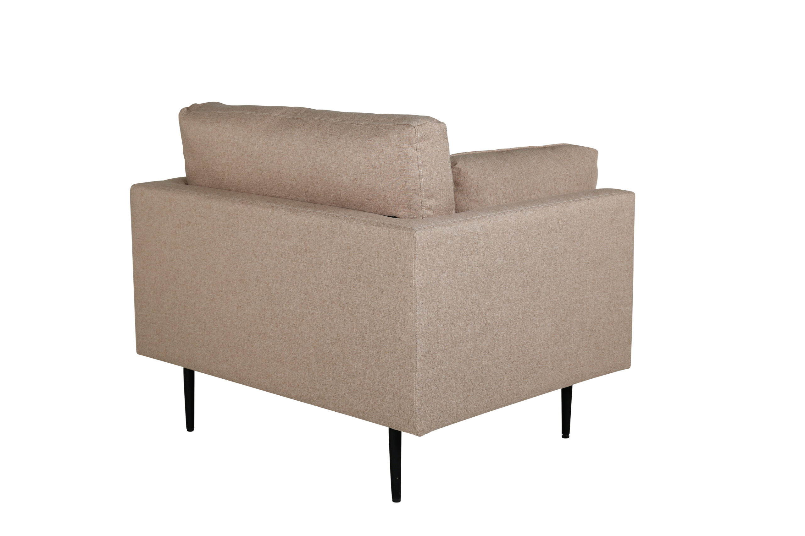 Papuoškite savo namus stilingu smėlio spalvos foteliu ir leiskite laikui tapti vienu iš šiandienos akcentų! Fotelis Boom kilstelės jūsų interjerą į kitą lygį, savo madingu stiliumi, elegantiška dizaino kalba ir sėdėjimo komfortu. Aukštos juodo metalo kojos prisideda prie stilingo vaizdo, o sėdimosios dalies gylis kviečia ilgoms ir patogioms akimirkoms. Statykite vieną arba kartu su tos pačios kolekcijos sofų grupe.