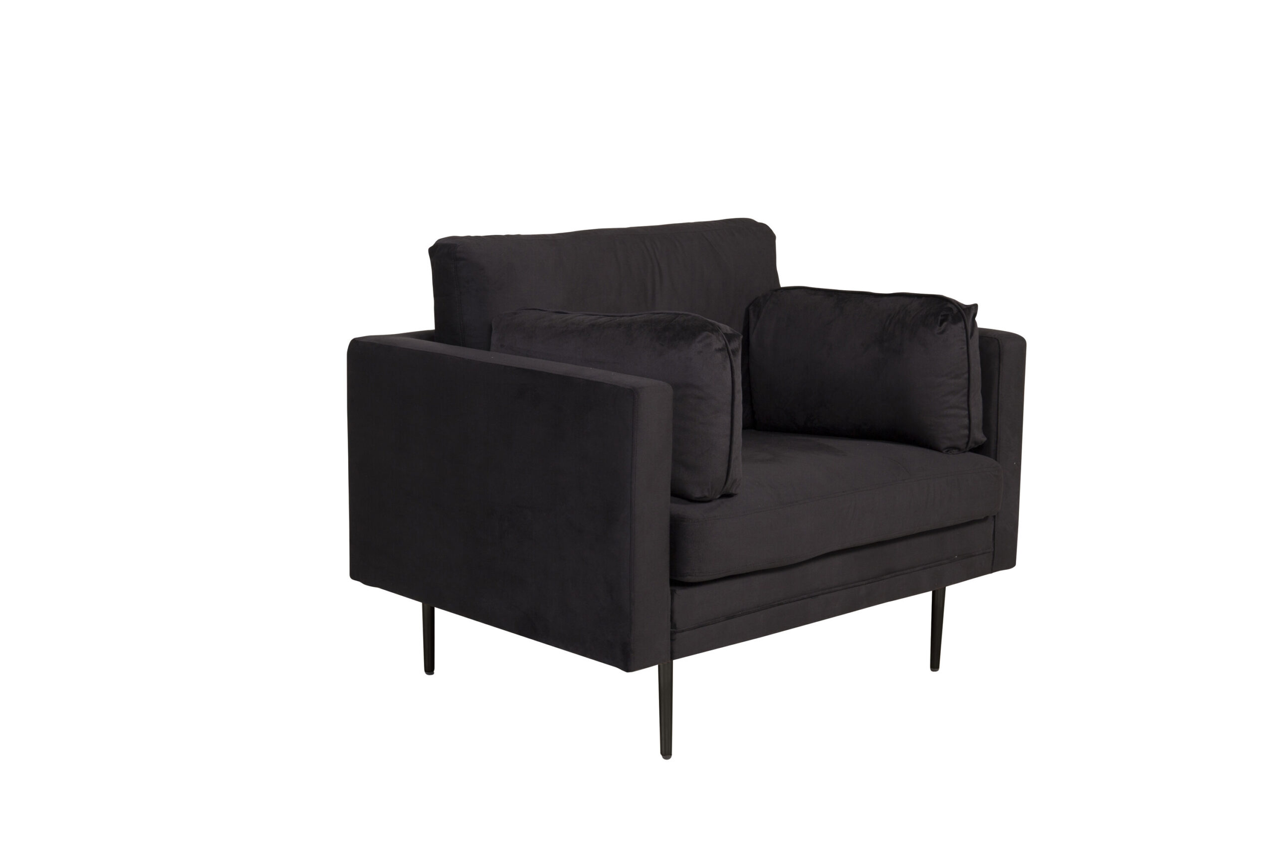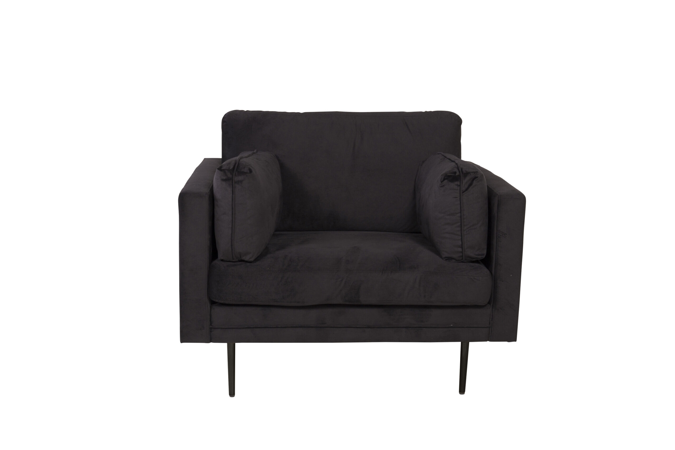 Prabangus, modernus ir elegantiškas - fotelis, pasižymintis patogumu ir pompastišku dizainu, guru. Fantastiškai apgalvotas fotelio dizainas - paprastos, bet kartu minkštos linijos, siauros, aukštos kojos ir erdvi sėdimoji dalis - nuostabus erdvės ir jaukumo pojūtis. Elegantiškas juodo aksomo audinys suteikia svetainei individualumo ir prabangos. Statykite atskirai kaip stiliaus ikoną arba grupėje kartu su mūsų 3 vietų sofa, iš Boom kolekcijos.