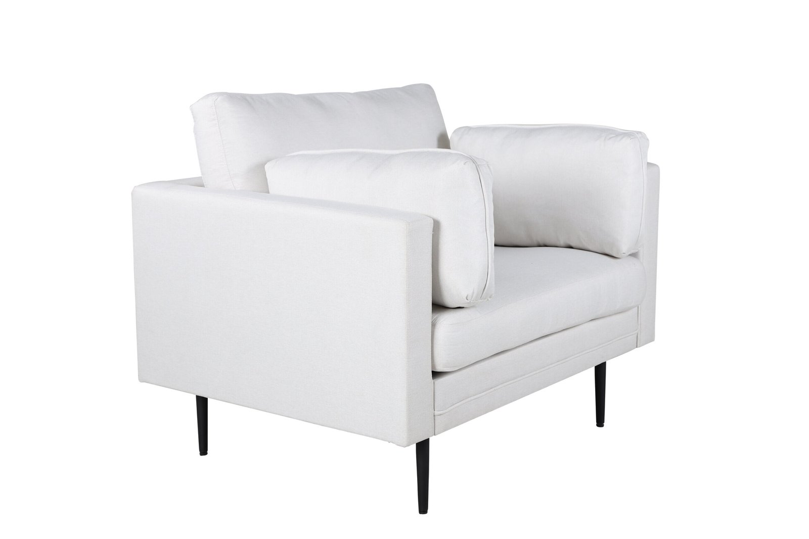 Kas yra svajonių baldas, jei ne šis stilingas ir modernus fotelis su elegantiškais baltais apmušalais? Mūsų patogus Boom Inger kolekcijos fotelis sušildys ir trauks į namus, bei kvies praleisti čia kuo daugiau laiko. Dizainas yra nesenstantis - griežtos šiaurietiškos formos ir siauros metalinės juodos spalvos kojos, praktiškas aukštis. Dėl laikui nepavaldaus dizaino jį lengva derinti prie bet kokio dekoro ir jis taps prabangiu akį traukiančiu akcentu jūsų namuose!