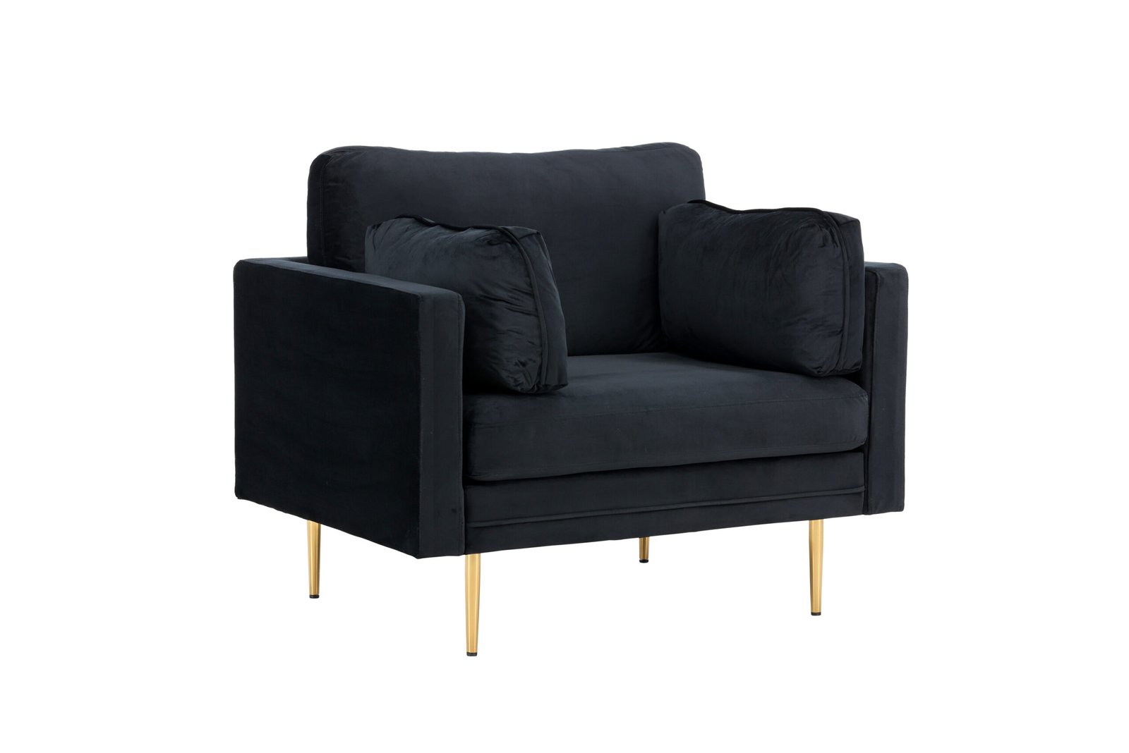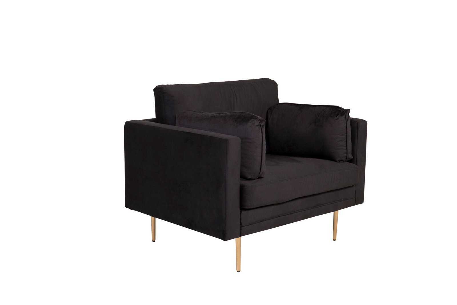Boom - tai modernus fotelis svajonė, pasižymintis dideliu komfortu ir elegantišku dizainu! Drąsiu, juodu aksomo audiniu aptrauktas fotelis, sukuria elegancijos įspūdį ir suteikia blizgesio svetainei. Griežtas, bet kartu minkštas dizainas ir plonos, aukštos kojos, sukuria erdvumo ir jaukumo pojūtį. Tiesiog neįtikėtinai gerai apgalvotas dizainas su uždengta nugarėle, kuri leidžia fotelį pastatyti kambario viduryje. Pastatykite atskirai kaip stiliaus ikoną arba kartu su mūsų 3 vietų sofa, iš kolekcijos Boom.