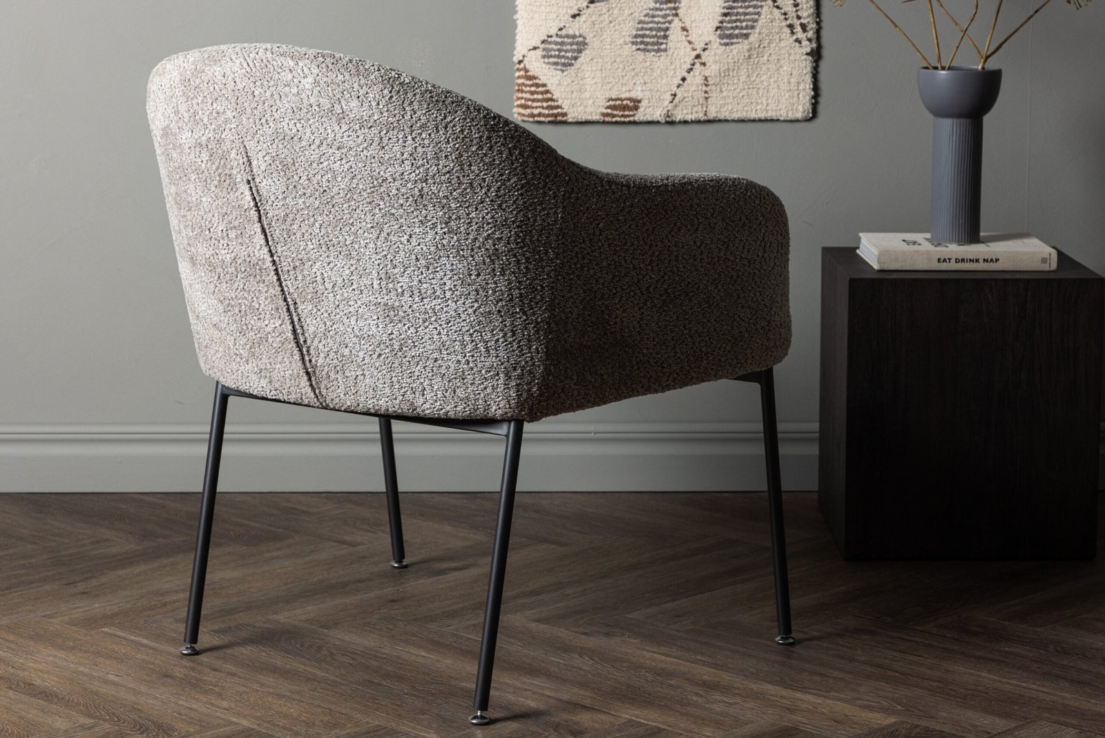 Grįžti namo turi būti jauku ir patogu! Naudodami šį nuostabų modernų fotelį iš Catania kolekcijos, pasiūtą iš pilko buklė audinio, greitai patobulinsite svetainės interjero dizainą. Fotelis suprojektuotas pagal dabartines tendencijas, jo dizainas atitinka reikalavimus, todėl jis yra tiek stilingas, tiek ir ergonomiškas. Sėdimoji dalis aptraukta pilku buklė audiniu, o kėdės kojos siauros tiesios, iš juodo metalo. Šį pilką fotelį, pasižymintį visomis puikiausiomis savybėmis, galima statyti tiek pavieniui skaitymo kampelyje, tiek kartu su sofų grupe, kad sukurtumėte daugiau vietos svečiams. Tegul po namus pasklinda atpalaiduojanti ir moderni nuotaika ir džiaukitės tendencijas saugančiu ir žvilgsnį traukiančiu krėslu!