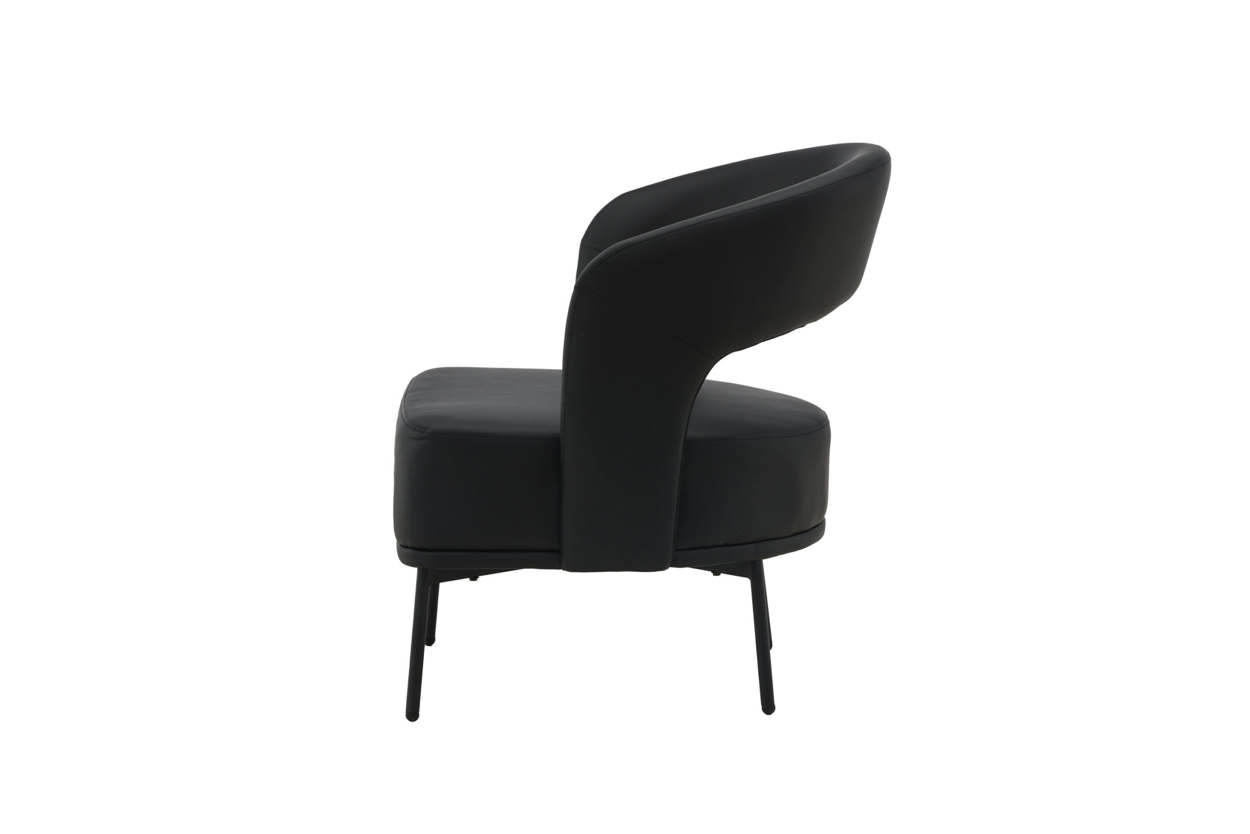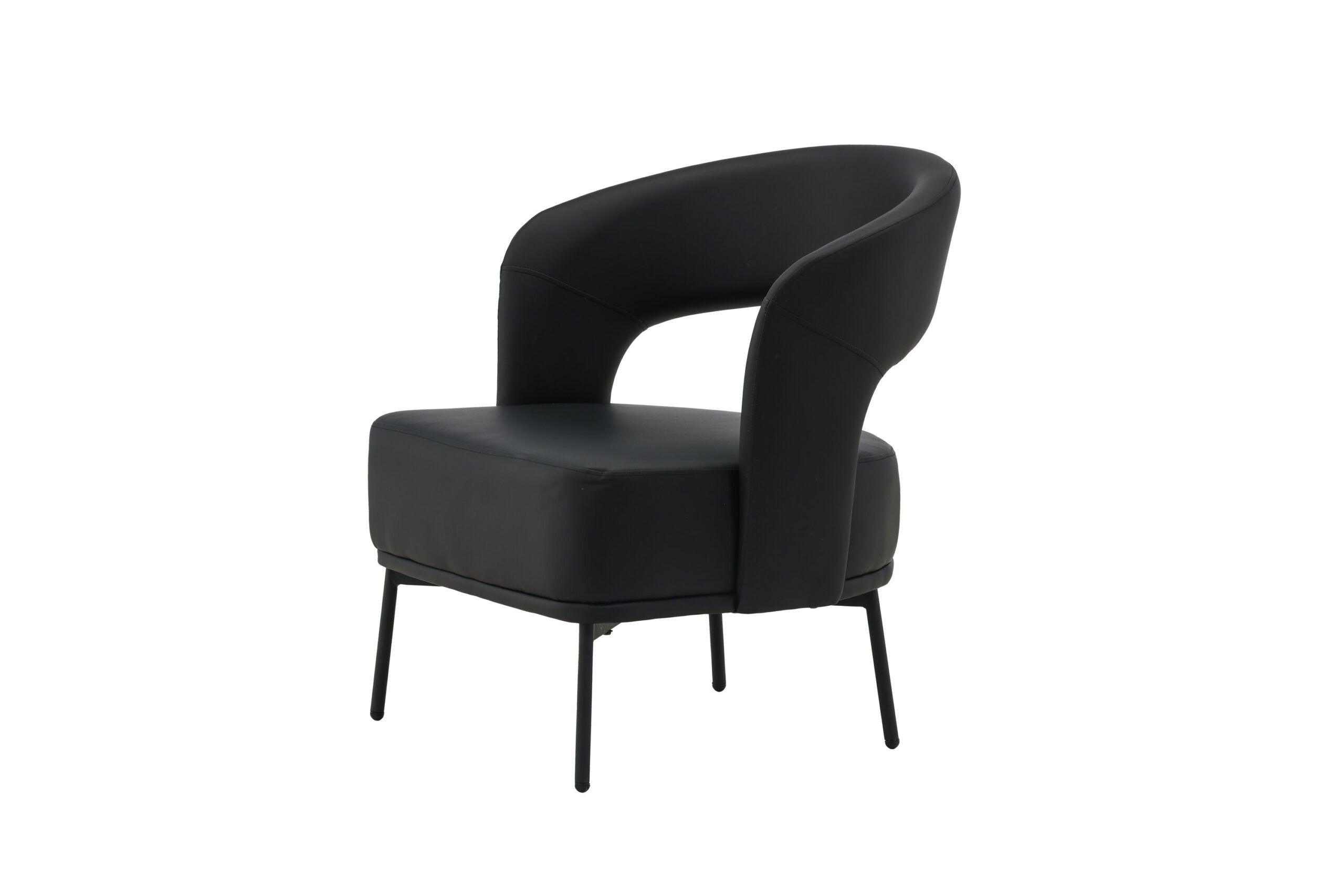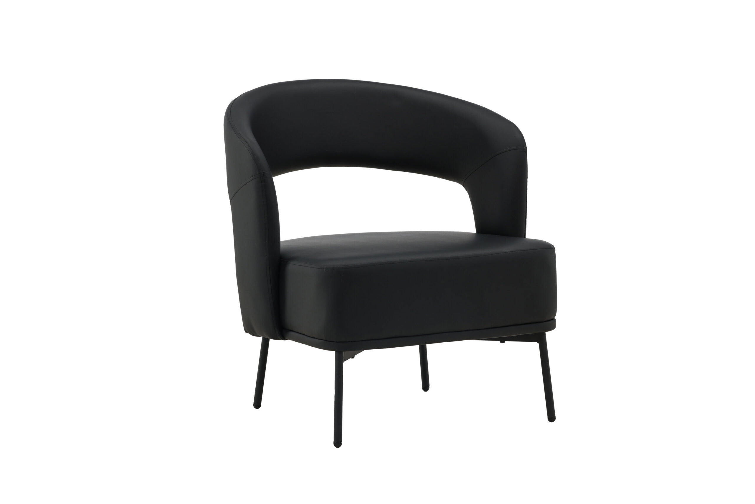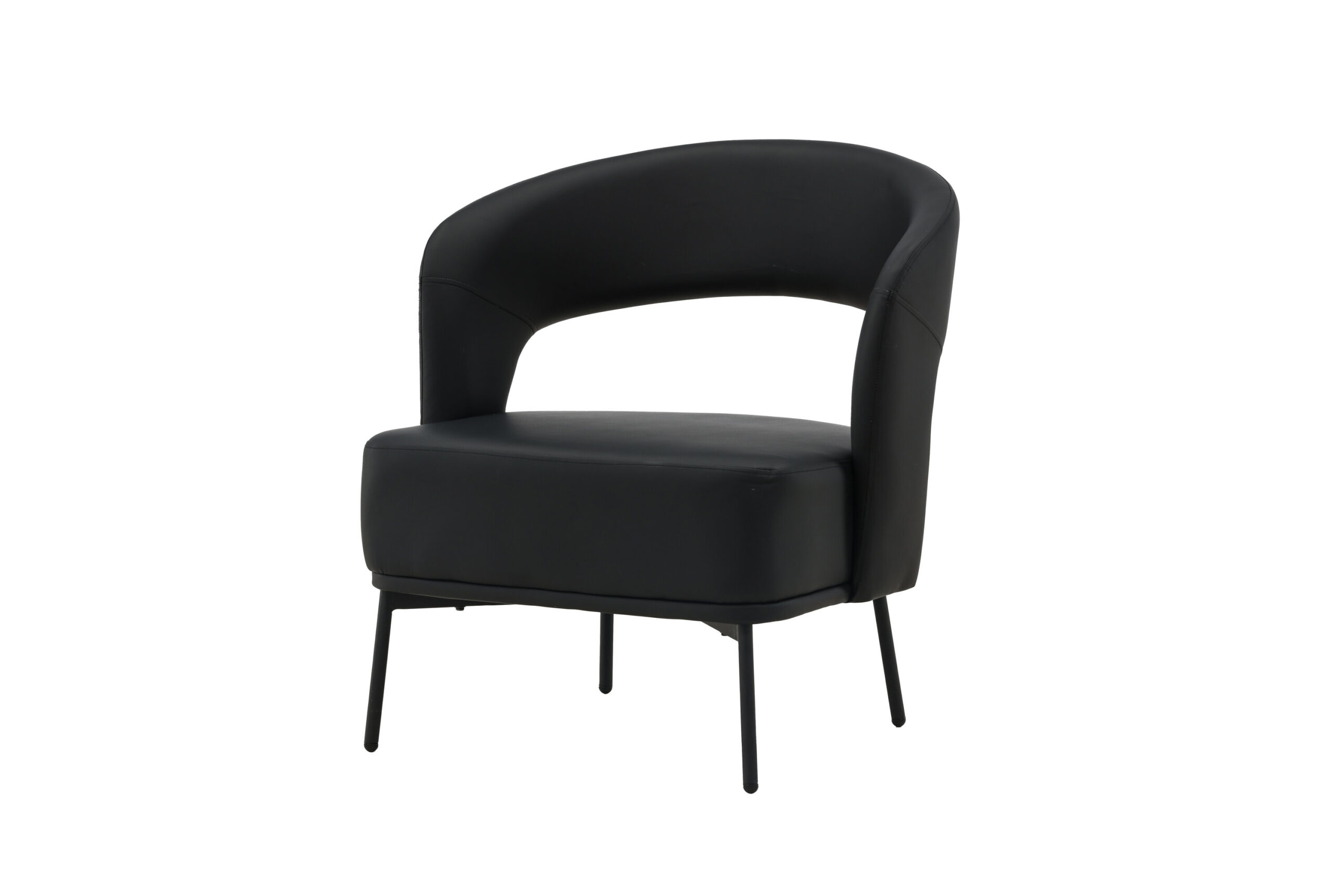 Juodas fotelis Mundo greitai taps jūsų namų stiliaus ikona ir užduos ritmą kitam dekorui! Šis fotelis turi elegantišką TP juodos spalvos apmušalą ir siauras juodo metalo kojeles, kurios gražiai pakelia ir palengvina dulkių siurbimą. Dizainas gerai apgalvotas, o atvira galinė dalis papildo unikalų dizainą. Tokiu būdu jis tiek pat stilingas, kiek ir praktiškas, ir puikiai tinka tiek kaip papildoma vieta šalia jūsų sofos, tiek atskirai, kaip interjero puošmena. Įrenkite savo namus individualiai ir iš patvarių medžiagų, įsigysite atsparius laikui baldus, o taip pat padarysite įspūdį!