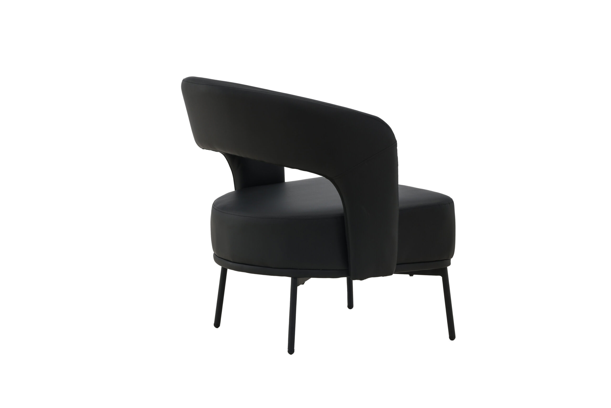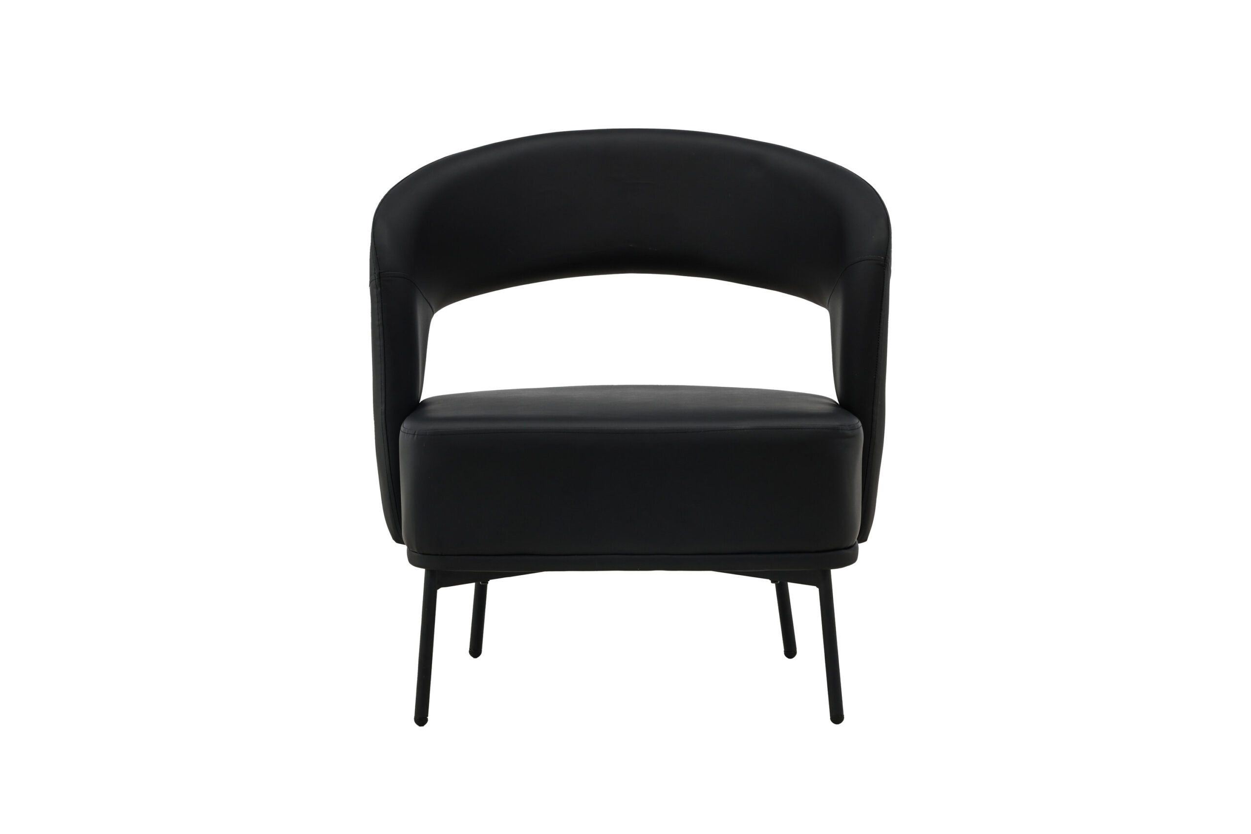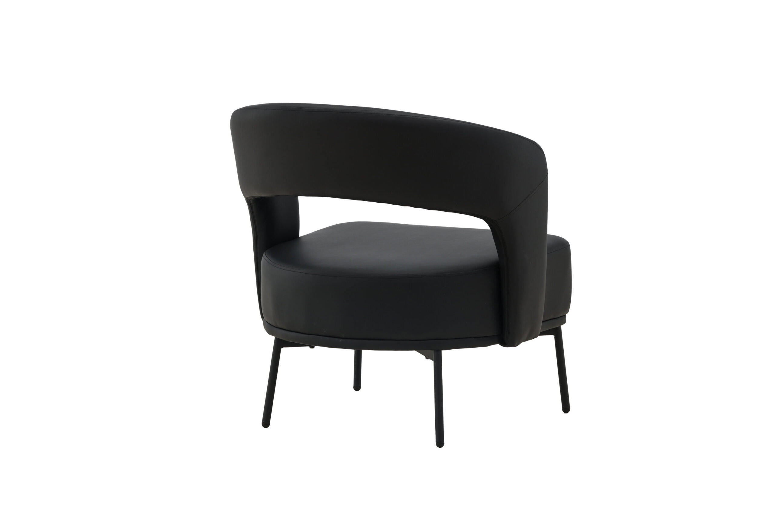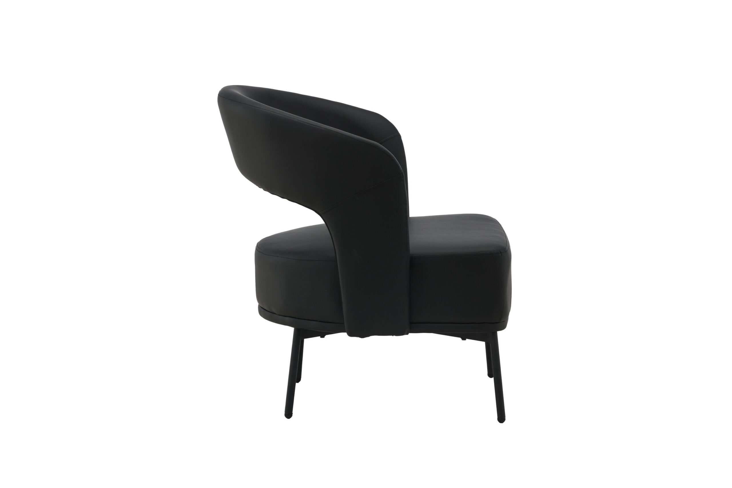 Juodas fotelis Mundo greitai taps jūsų namų stiliaus ikona ir užduos ritmą kitam dekorui! Šis fotelis turi elegantišką TP juodos spalvos apmušalą ir siauras juodo metalo kojeles, kurios gražiai pakelia ir palengvina dulkių siurbimą. Dizainas gerai apgalvotas, o atvira galinė dalis papildo unikalų dizainą. Tokiu būdu jis tiek pat stilingas, kiek ir praktiškas, ir puikiai tinka tiek kaip papildoma vieta šalia jūsų sofos, tiek atskirai, kaip interjero puošmena. Įrenkite savo namus individualiai ir iš patvarių medžiagų, įsigysite atsparius laikui baldus, o taip pat padarysite įspūdį!