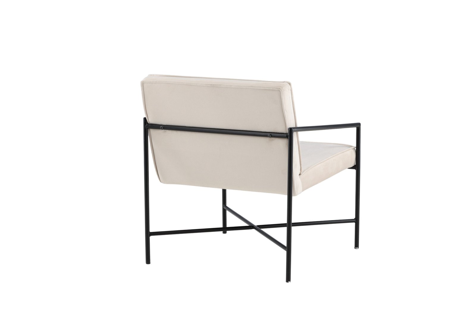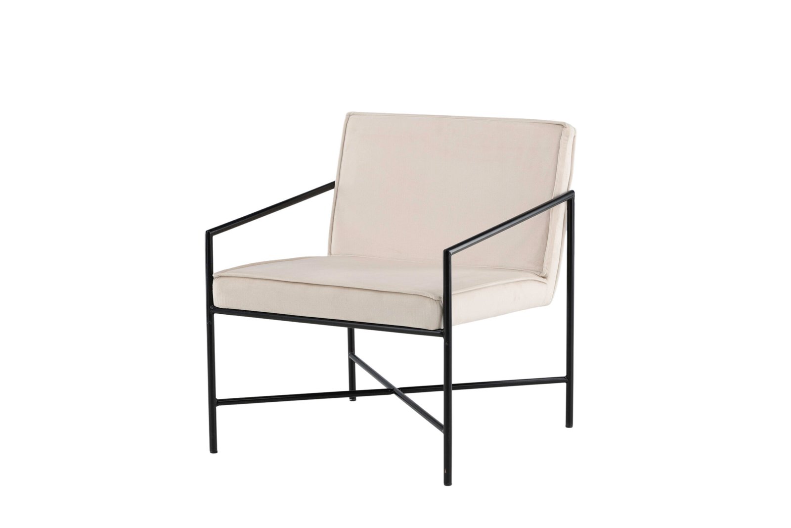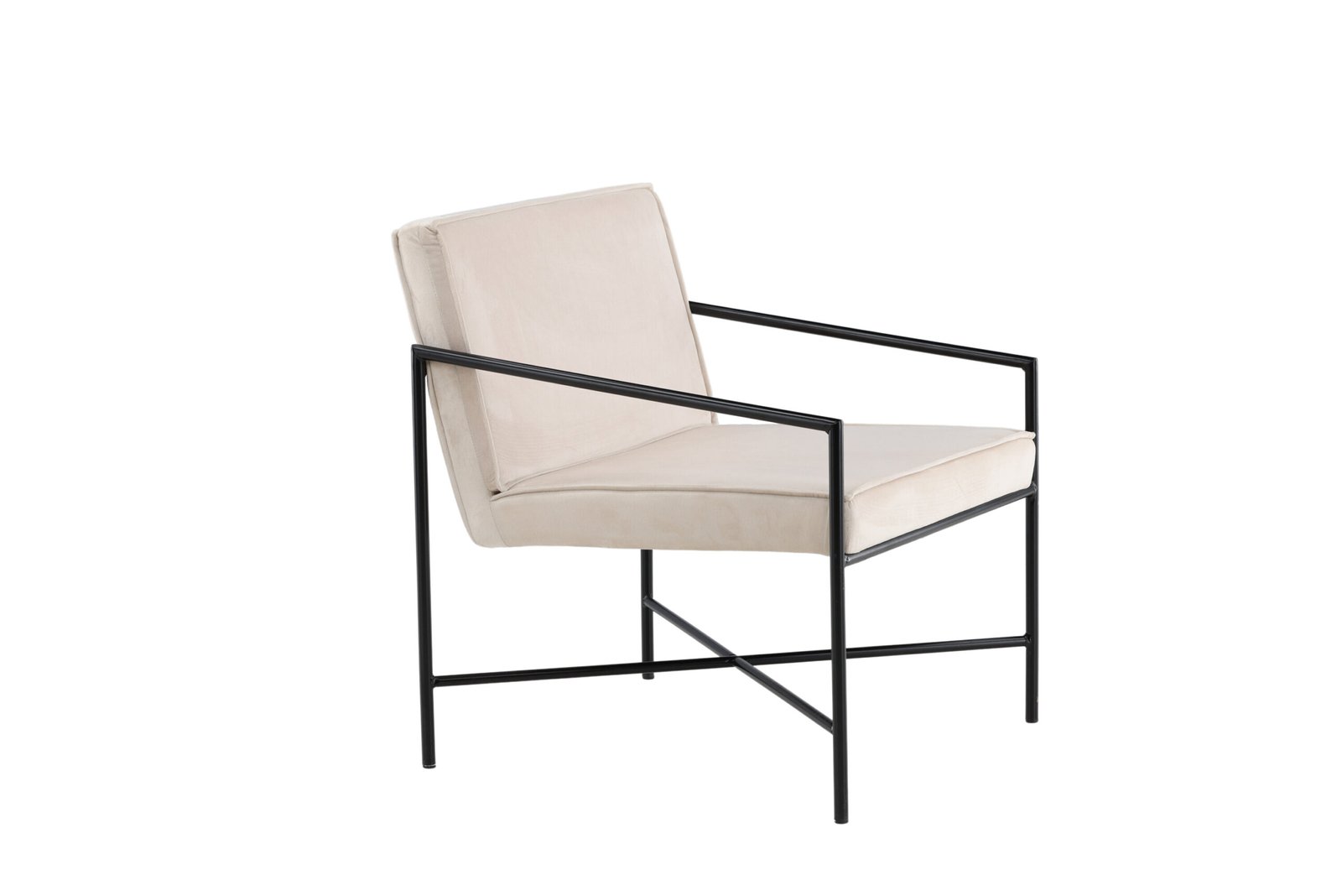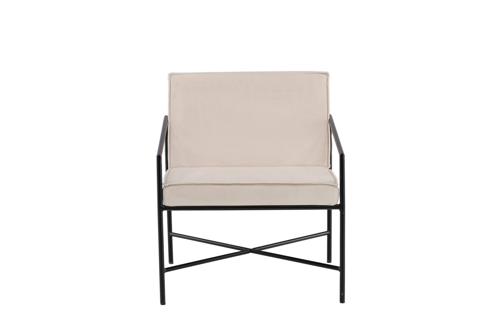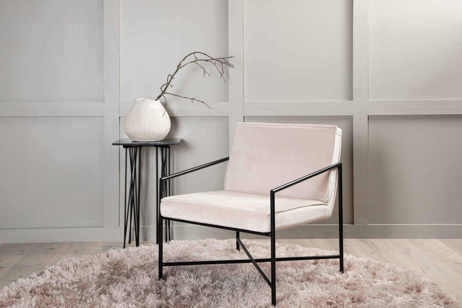 Sukurkite modernų svetainės įvaizdį su stiliaus ikona iš Rakel kolekcijos! Dizainas sukurtas atsižvelgiant į naujausias tendencijas, pasižymi nesenstančiu skandinavišku minimalizmu, derinamu su itin dideliu komfortu. Smėlio spalvos aksominio apmušalo pagalvėlė yra optimalaus storio ir nuolydžio, kad suteiktų geriausią komfortą, kai norite atsipalaiduoti. Grakštus metalinis korpusas iš juodos spalvos milteliniu būdu dažyto metalo, papildo bendrą modernų įvaizdį. Statykite vieną arba kartu su sofa svetainėje.