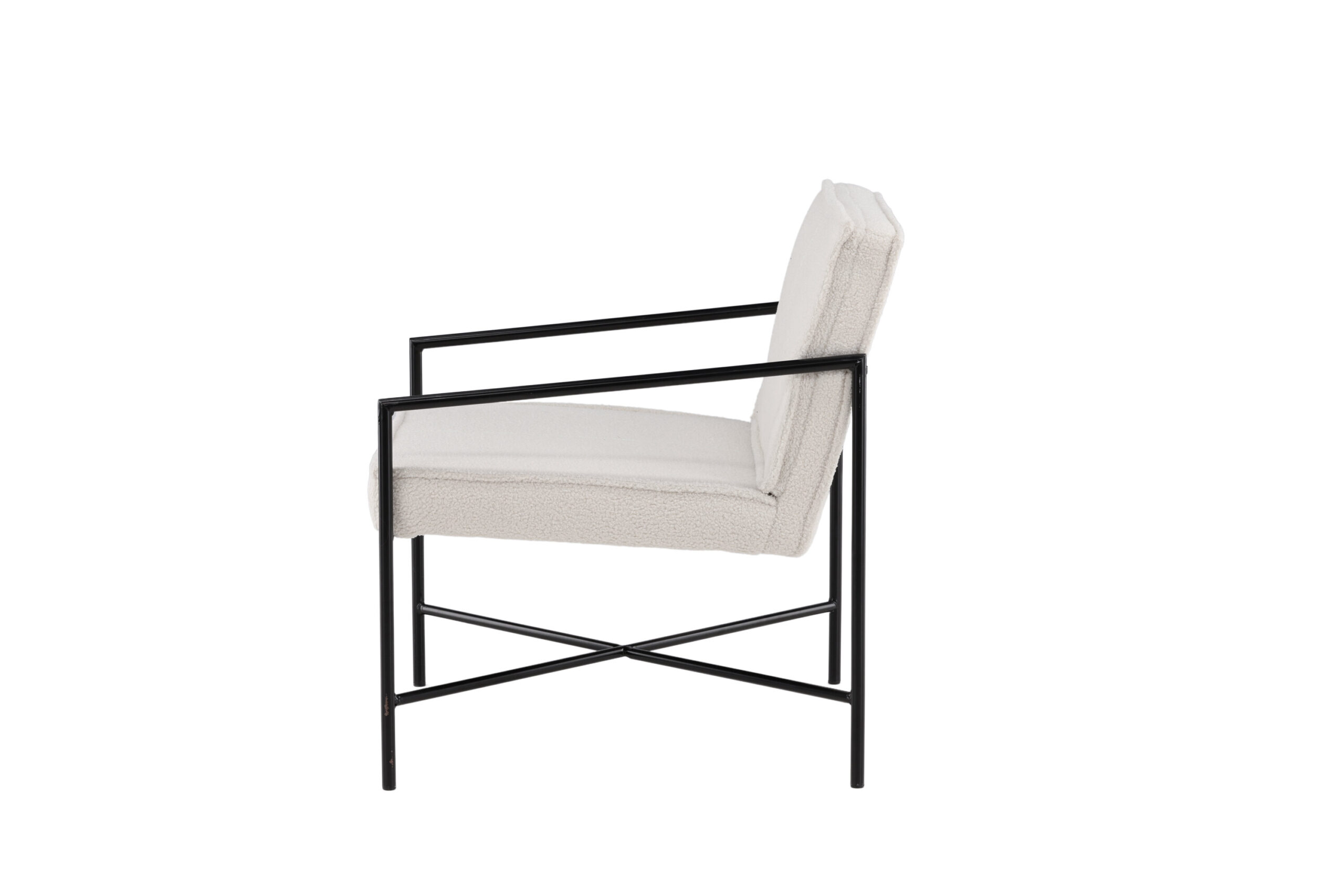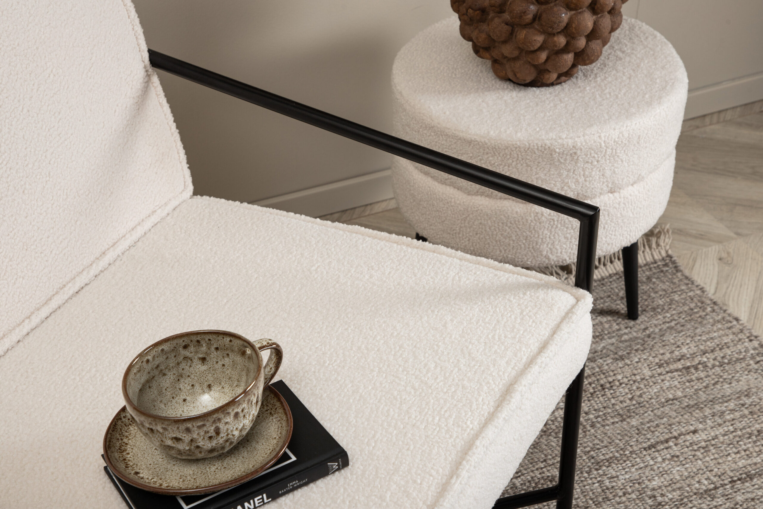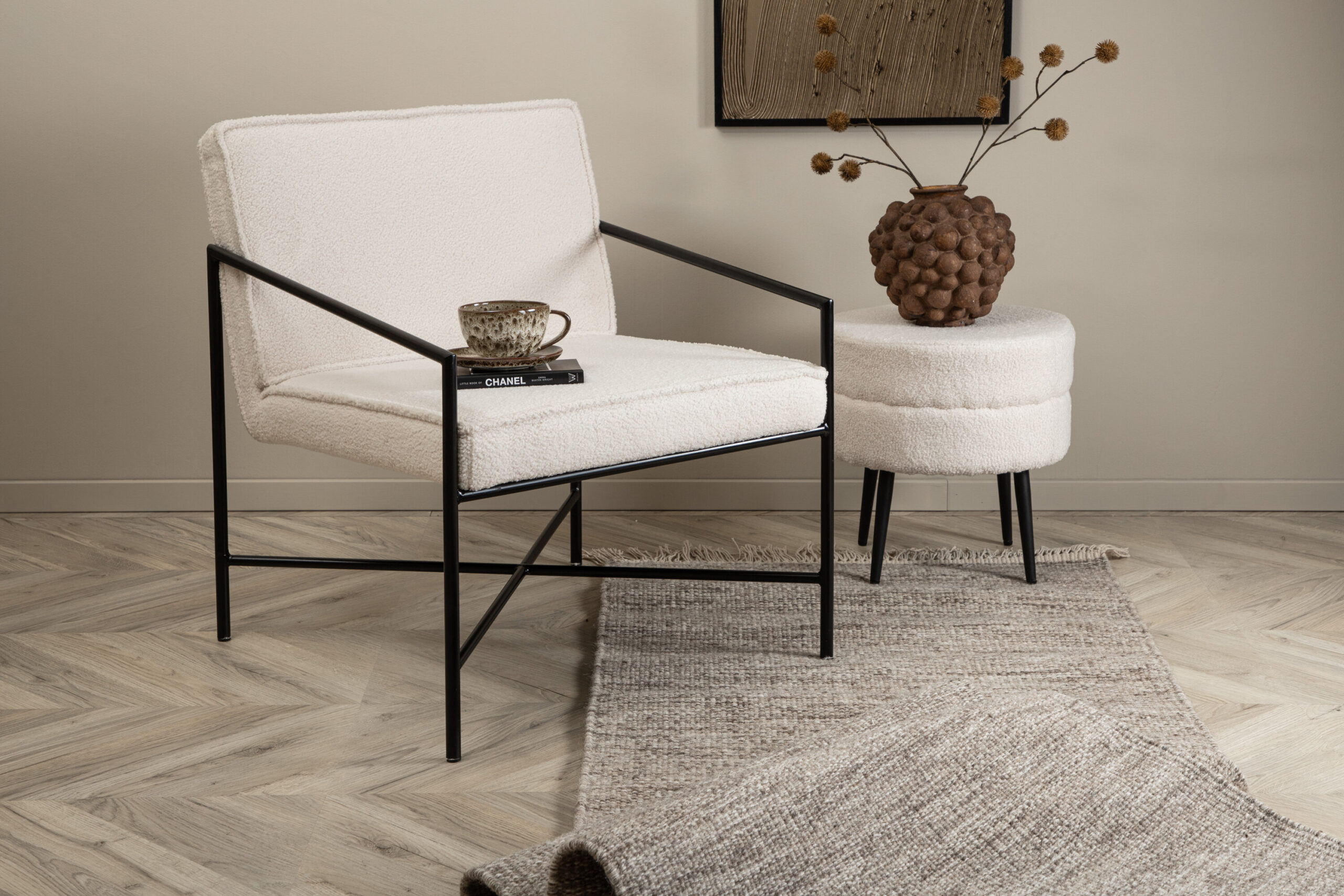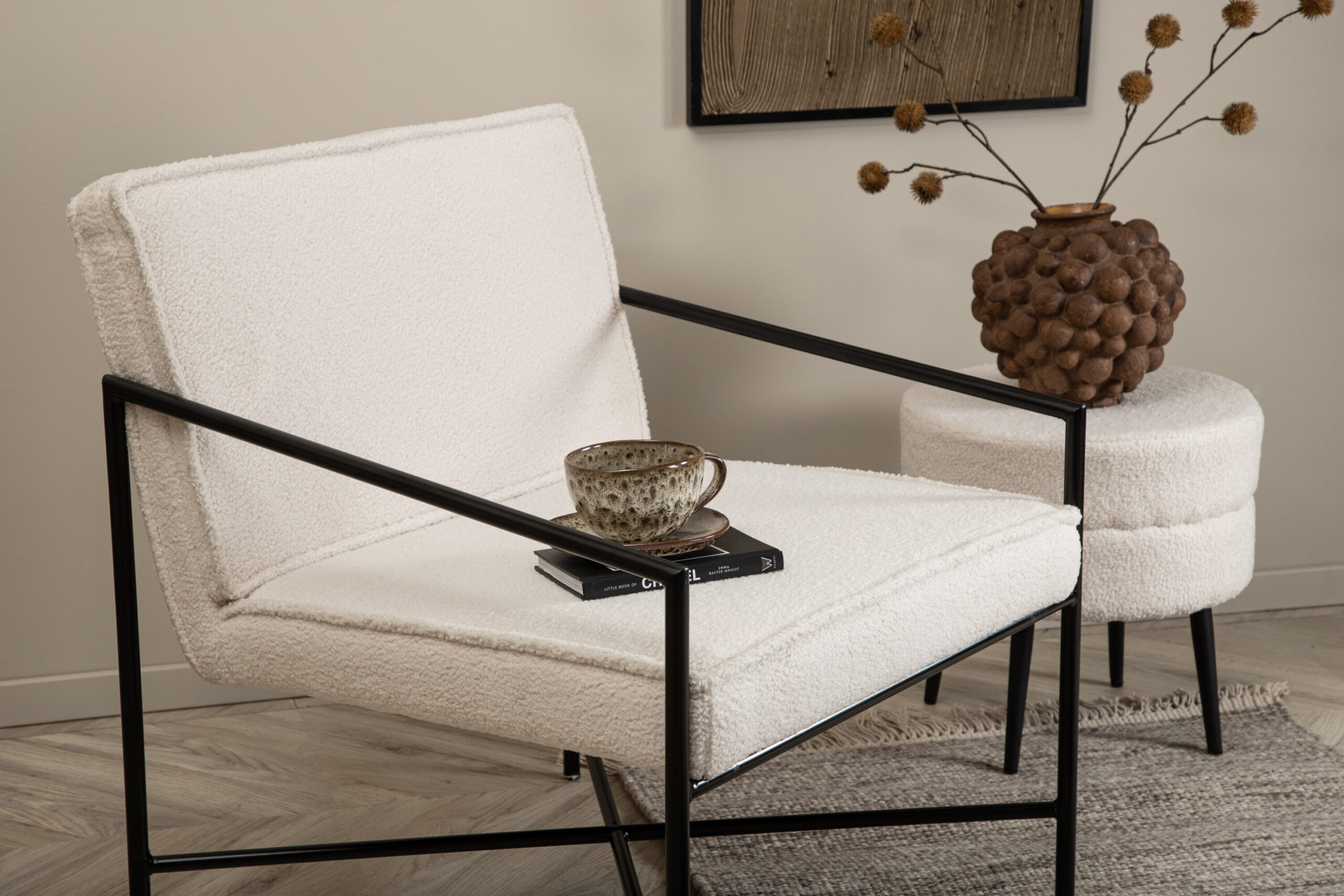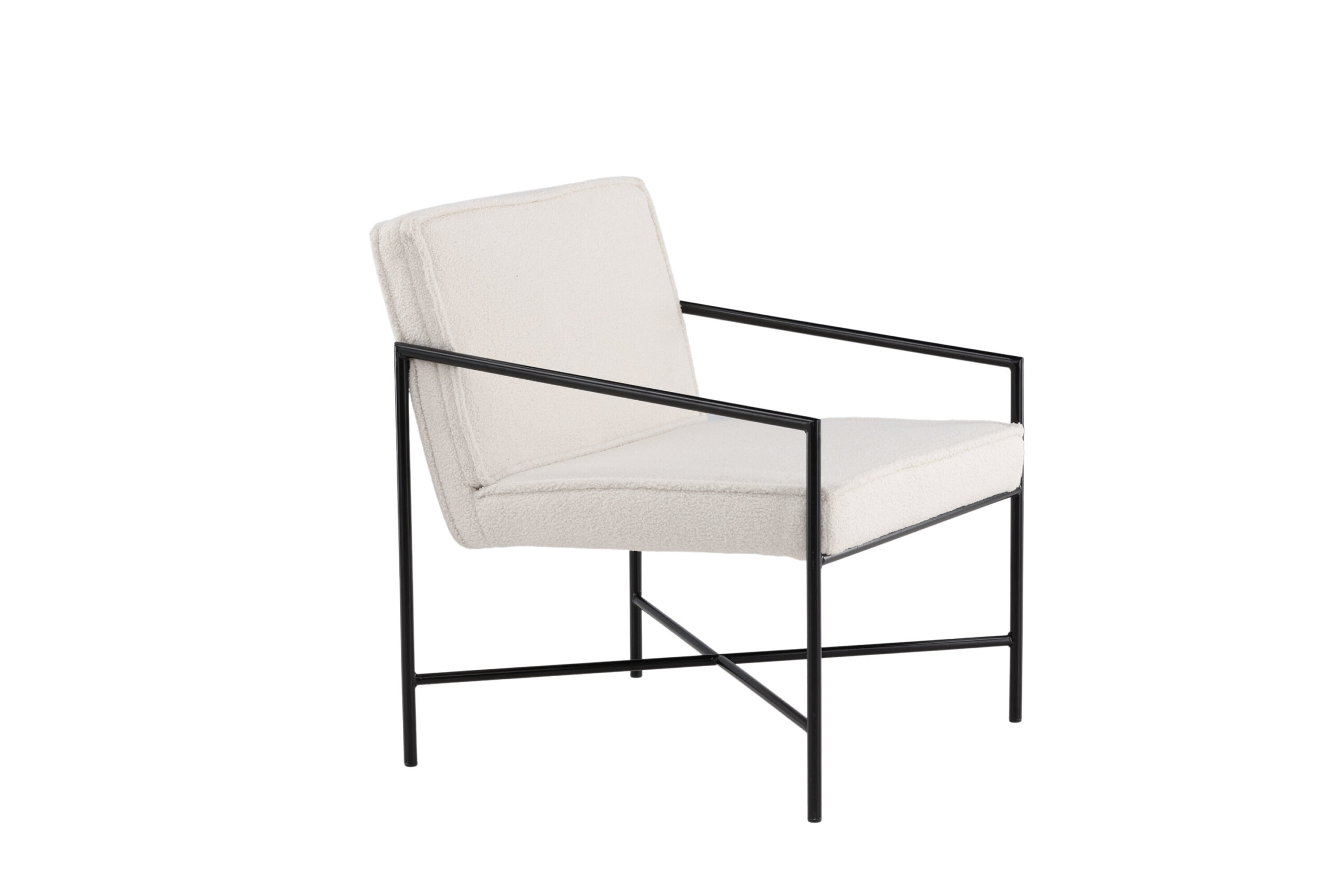 Papildykite svetainės stilių moderniu Rakel kolekcijos foteliu! Dizainas sukurtas atsižvelgiant į tendencijas, nesenstantis skandinaviškas minimalizmas derinamas su ypatingu patogumu. Kailinio balto Teddy audinio pagalvėlė yra optimalaus storio ir nuolydžio, kad būtų patogu, kai norite atsipalaiduoti. Grakštus korpusas iš juodo milteliniu būdu dažyto metalo papildo bendrą modernumo įspūdį. Statykite vieną, kaip stiliaus ikoną arba kartu su sofų grupe svetainėje.
