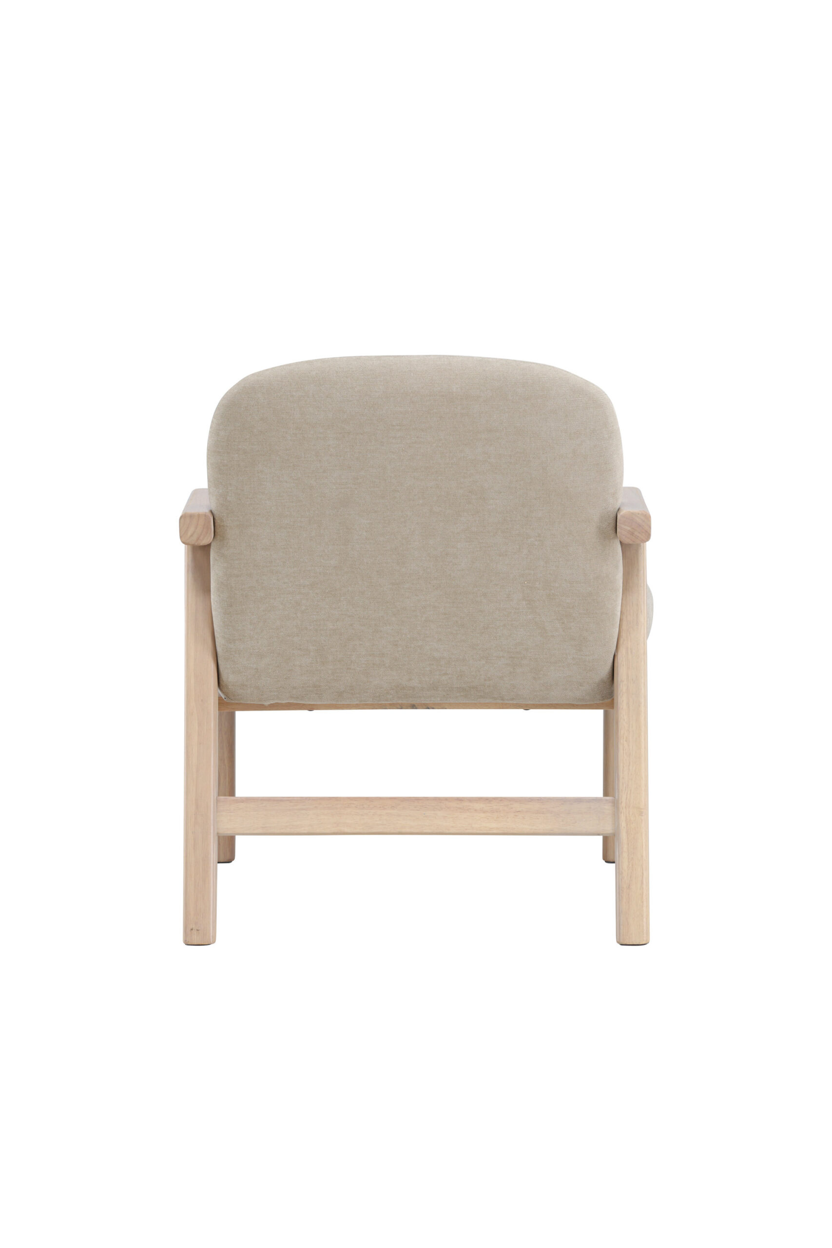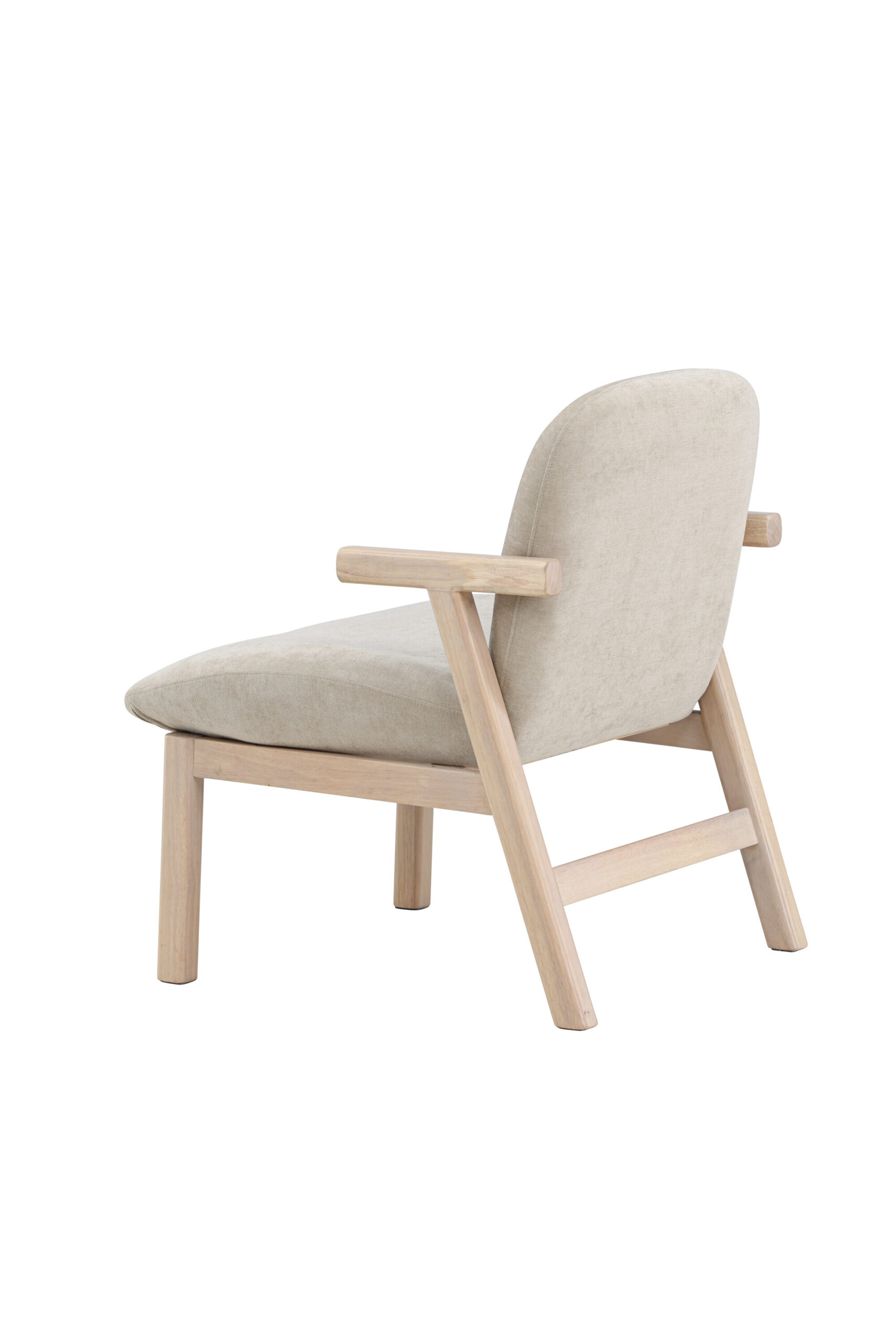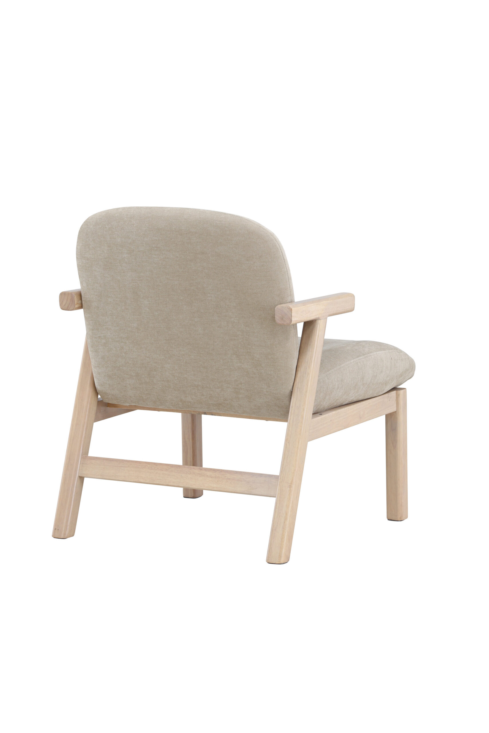 Rile poilsio kėdė – elegantiškas ir patogus baldas, kuriame kokybiškos medžiagos dera su šiuolaikiška estetika. Tvirtas rėmas ir iš kaučiukmedžio pagaminti balti porankiai užtikrina patikimą konstrukciją, o minkšta, smėlio spalvos poliesteriu aptraukta sėdimoji dalis kviečia maloniam poilsiui.