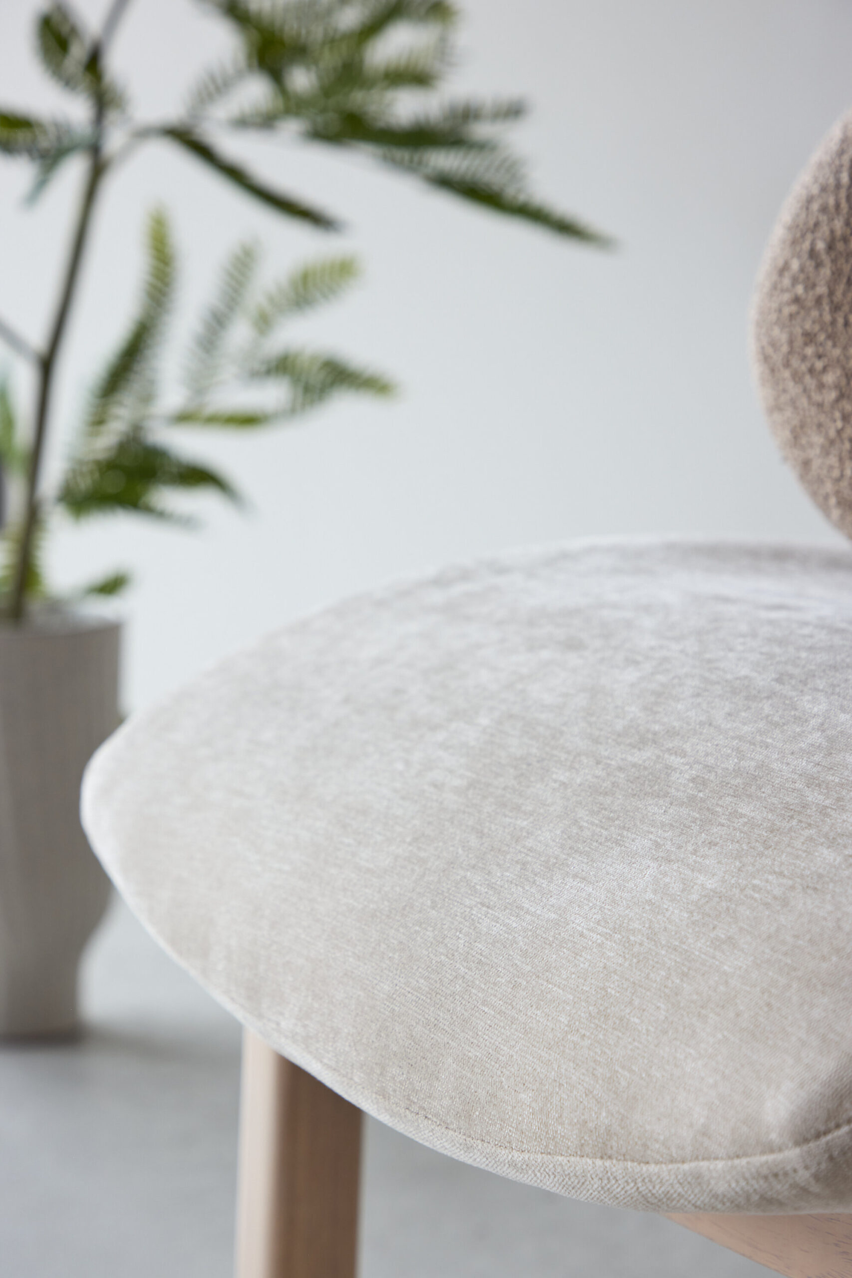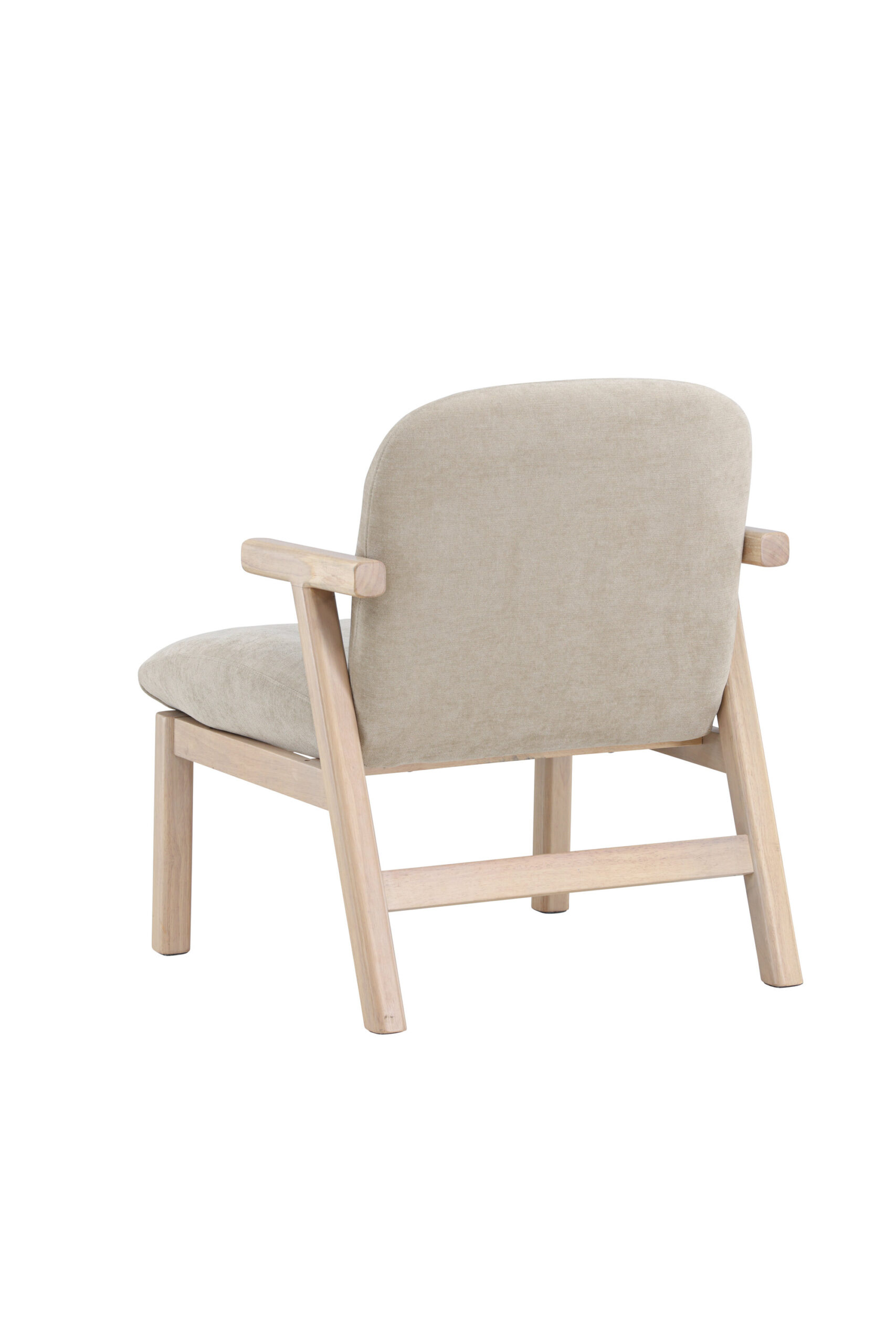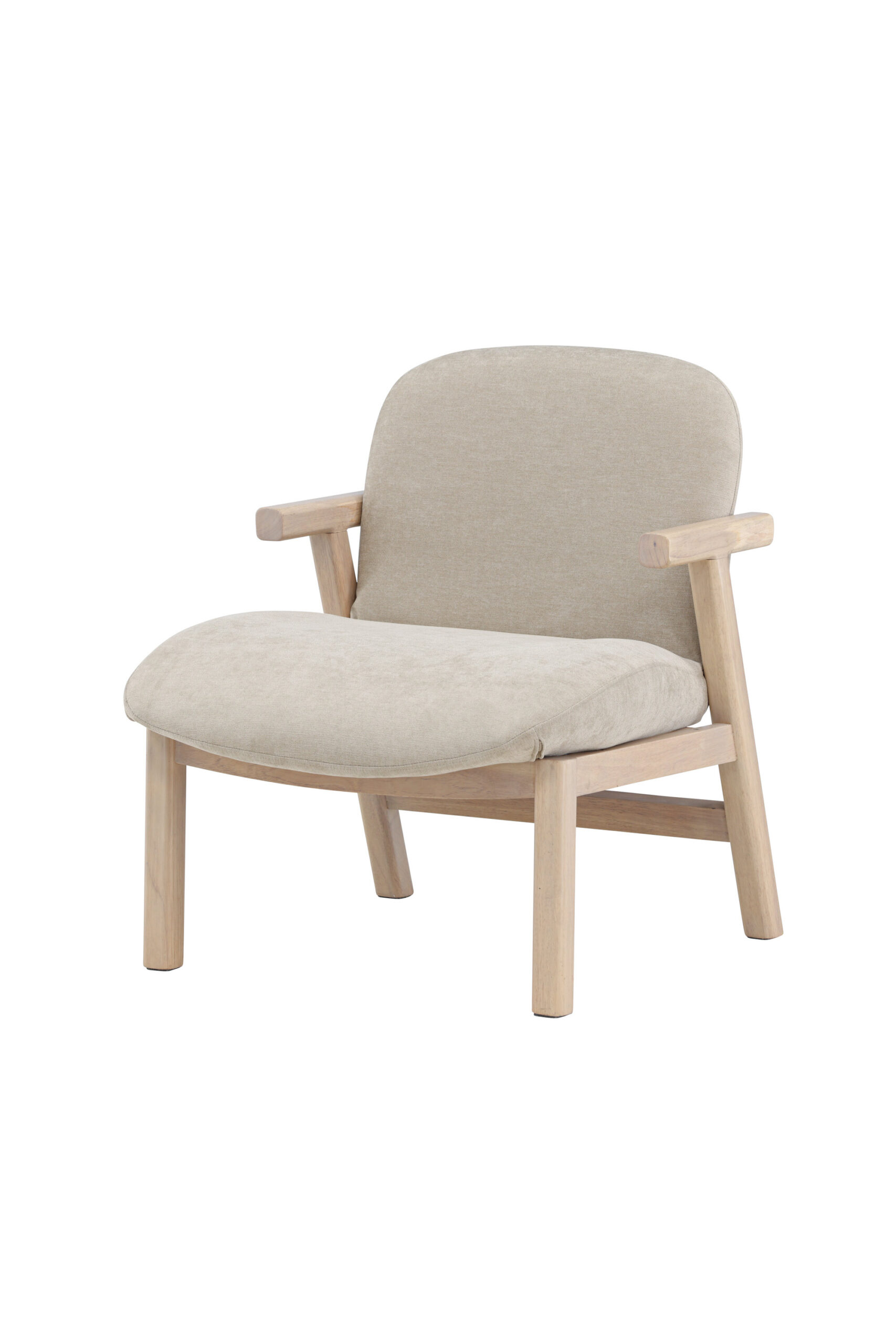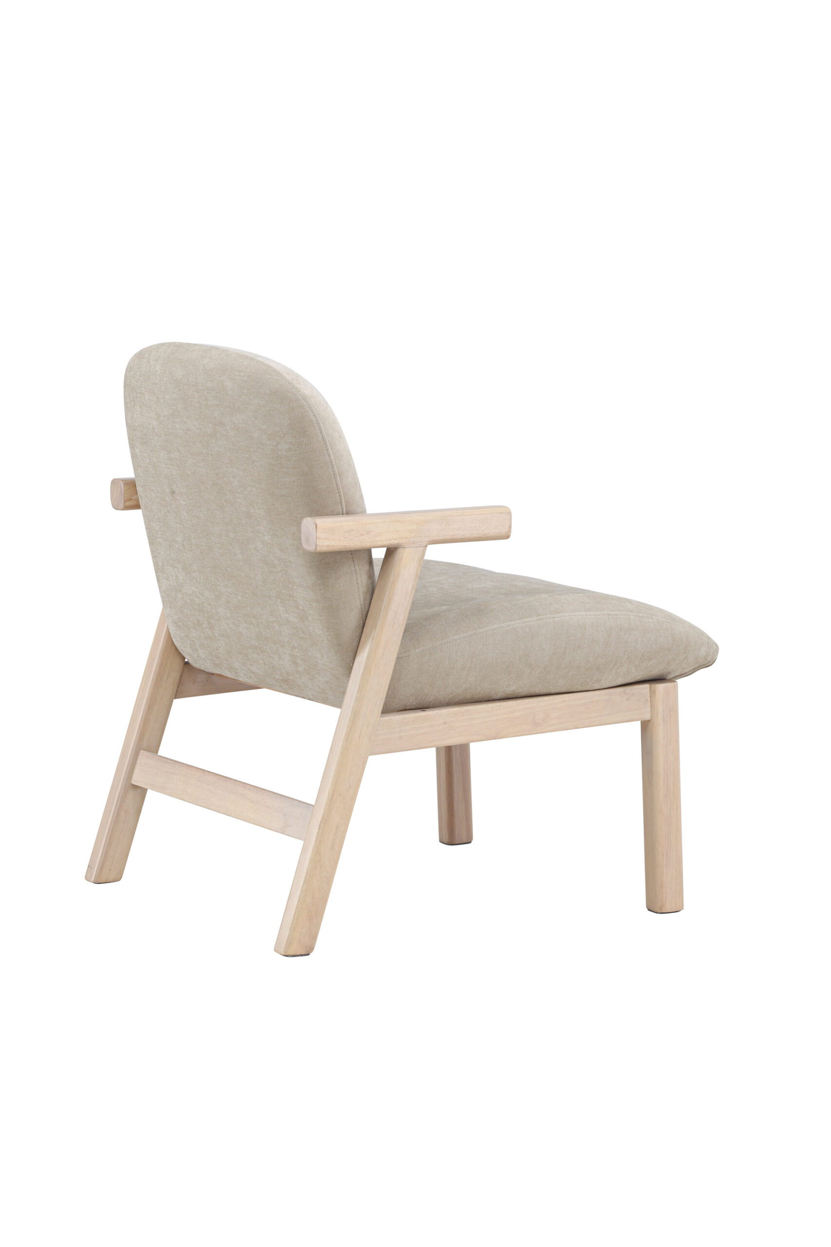 Rile poilsio kėdė – elegantiškas ir patogus baldas, kuriame kokybiškos medžiagos dera su šiuolaikiška estetika. Tvirtas rėmas ir iš kaučiukmedžio pagaminti balti porankiai užtikrina patikimą konstrukciją, o minkšta, smėlio spalvos poliesteriu aptraukta sėdimoji dalis kviečia maloniam poilsiui.