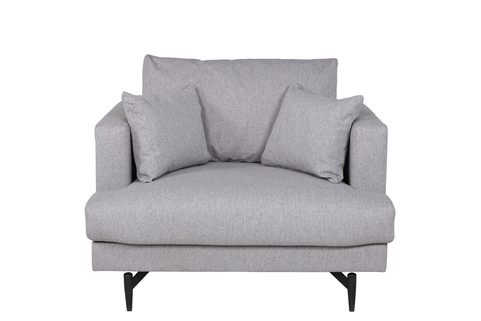 Luxurious, elegant and pompous - a modern armchair that impresses! Sofia is a trendy armchair with high comfort and stylish design. The clothing in gray polyester fabric gives a pleasant impression to the living room. The straight Nordic design is combined with soft shapes, stylish narrow legs and generous seating depth that together create an airy and inviting feeling. Neįtikėtinai gerai apgalvotas dizainas su aptraukta nugarėle kurios dėka, fotelį galima statyti kambario viduryje. Statykite atskirai kaip stiliaus ikoną arba grupėje kartu su derančiomis sofomis!