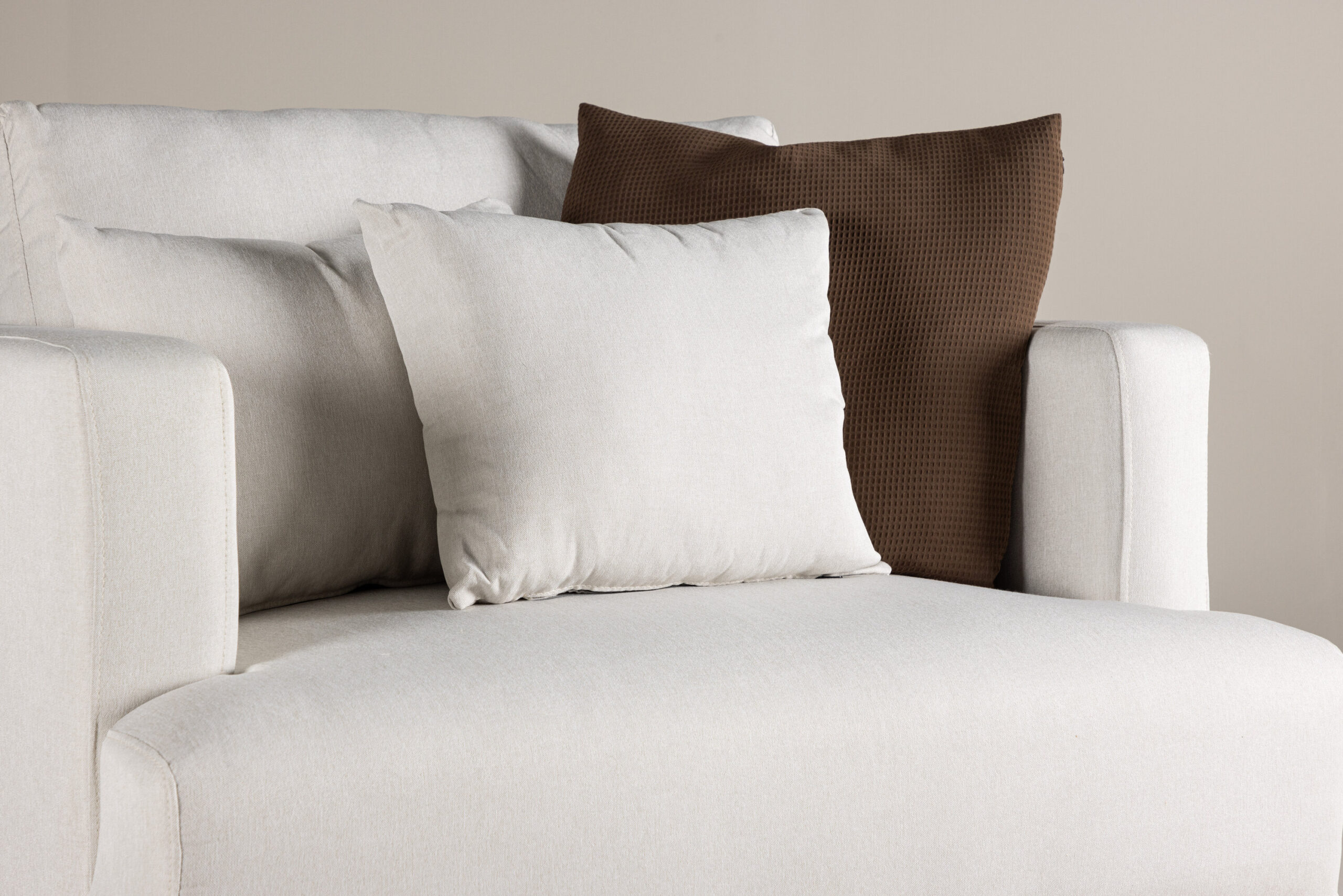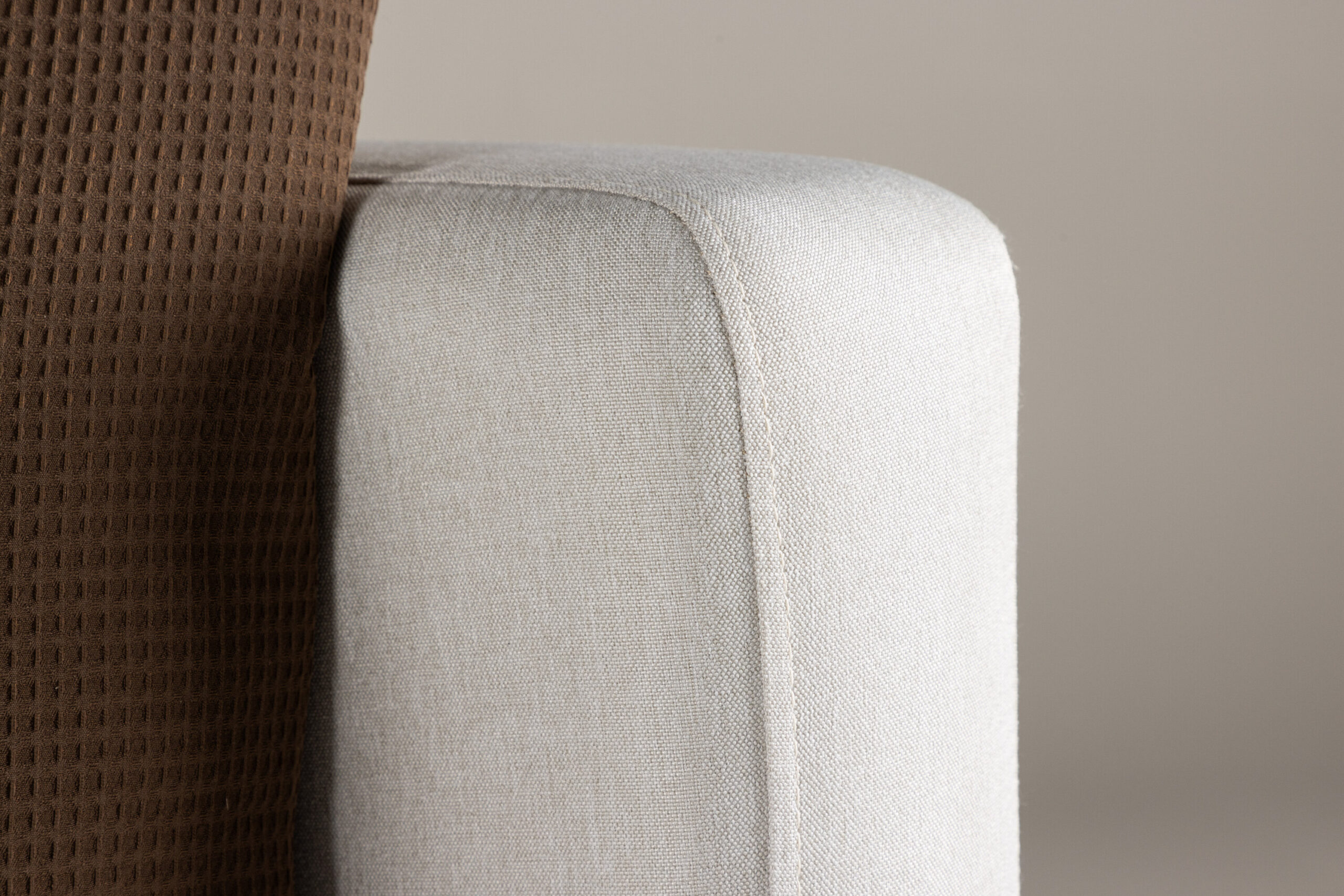 Tegul modernus dizainas dera su nesenstančiomis formomis, šiame madingame smėlio spalvos lininiame Sofios kolekcijos fotelyje! Šviesus smėlio spalvos poliesterio ir lino audinys suteikia foteliui vasarišką ir modernią išvaizdą. Tiesios, bet kartu minkštos formos, siauros aukštos kojos ir didelis sėdimosios dalies gylis kuria erdvią ir jaukią atmosferą. Fotelį papildo tokio pat audinio kaip ir fotelis, pagalvėlės, kurios suteikia jaukumo, o elegantiškos juodo metalo kojos yra stilingos. Neįtikėtinai gerai apgalvotas dizainas su aptraukta nugarėle, todėl fotelį galima pastatyti kambario viduryje. Statykite atskirai kaip stiliaus ikoną arba grupėje kartu su derančiomis sofomis!