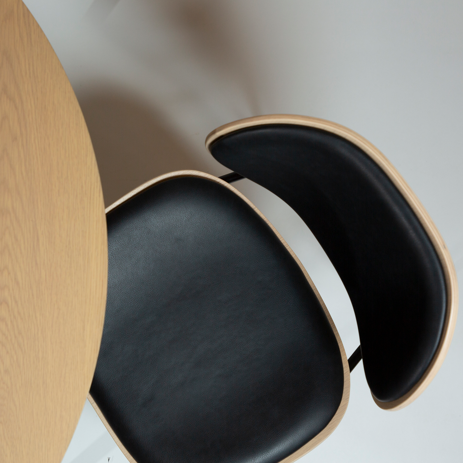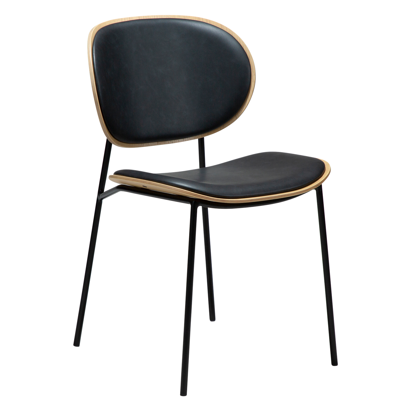 Intensyvios juodos spalvos dirbtinė oda ir balintas ąžuolas, juodos metalinės kojos