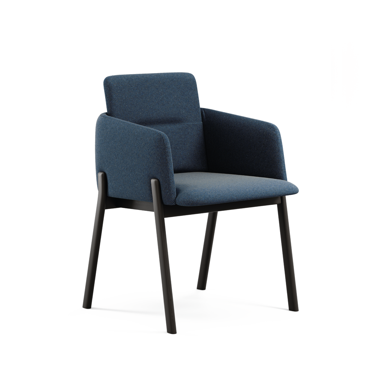 Note – kaip sufleruoja pats pavadinimas – sukurta išsiskirti iš tradiciškesnių mūsų kolekcijos modelių. Audiniu aptrauktas atlošas švelnia, vientisa linija pereina į porankius. Tai ne monolitas, o apgalvota dalių kompozicija: atlošas, porankiai ir kojos, sudarantys darnią visumą. Kėdė kurta biurams – nugaroje yra kišenė dokumentams ar konferencinei medžiagai. Tačiau universali forma puikiai tinka ir namuose – į kišenę įdėta knyga suteikia erdvei jaukumo ir individualumo.