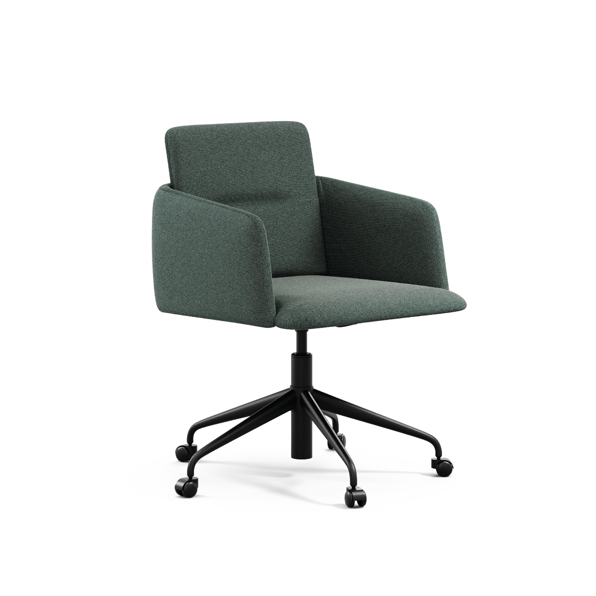 Note – kaip sufleruoja pats pavadinimas – sukurta išsiskirti iš tradiciškesnių mūsų kolekcijos modelių. Audiniu aptrauktas atlošas švelnia, vientisa linija pereina į porankius. Tai ne monolitas, o apgalvota dalių kompozicija: atlošas, porankiai ir kojos, sudarantys darnią visumą. Kėdė kurta biurams – nugaroje yra kišenė dokumentams ar konferencinei medžiagai. Tačiau universali forma puikiai tinka ir namuose – į kišenę įdėta knyga suteikia erdvei jaukumo ir individualumo.