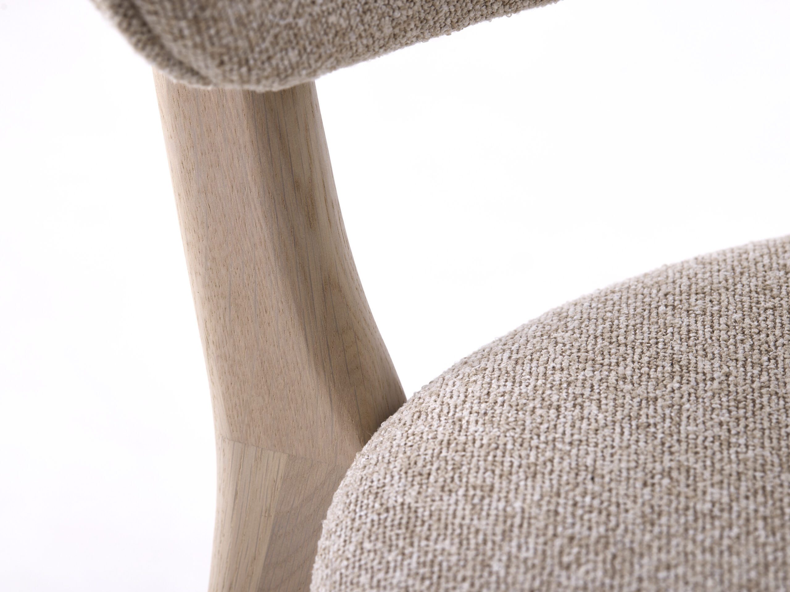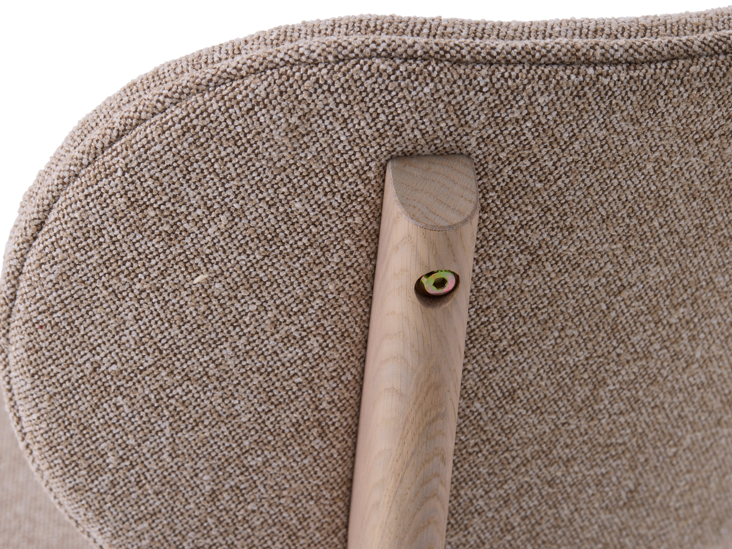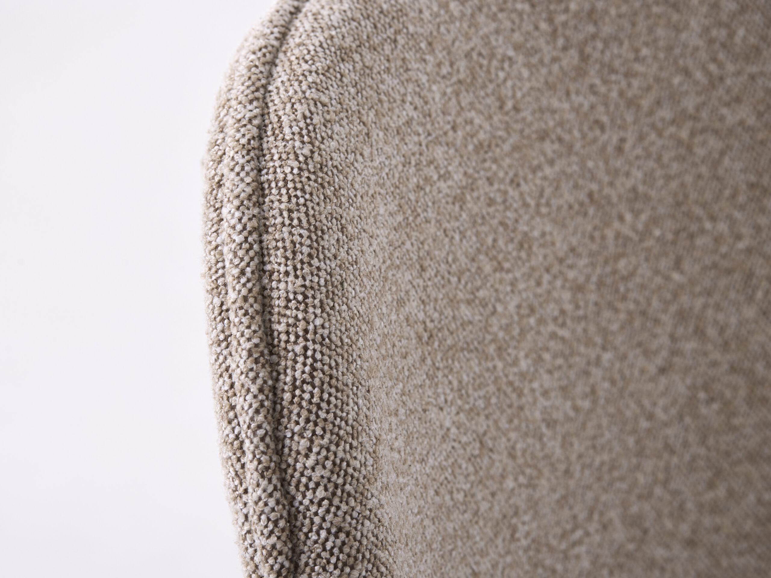 Lake 120, balto pigmento ąžuolo kojos, KD Lake – švelnus, jaukus audinys, išsiskiriantis unikaliu raštu, sukurtu naudojant dekoratyvinius mažų kilpelių siūlus. Jis pasižymi sodriu sluoksniavimu ir daugiatonio efekto deriniu – tamsių bei šviesių atspalvių žaismu, suteikiančiu baldui vizualinio gylio ir išskirtinumo.