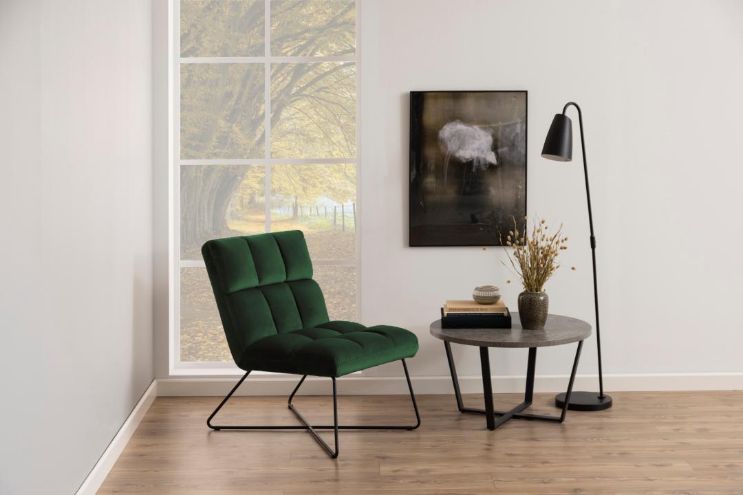 Alba poilsio kėdė, Vic kolekcijos audinys miško žalumos 68AC, pagrindas iš matinės juodos grublėtos milteliniu būdu dažytos plieninės konstrukcijos, su kvadratinėmis siūlėmis, su užtrauktuku, 62x86x90 cm