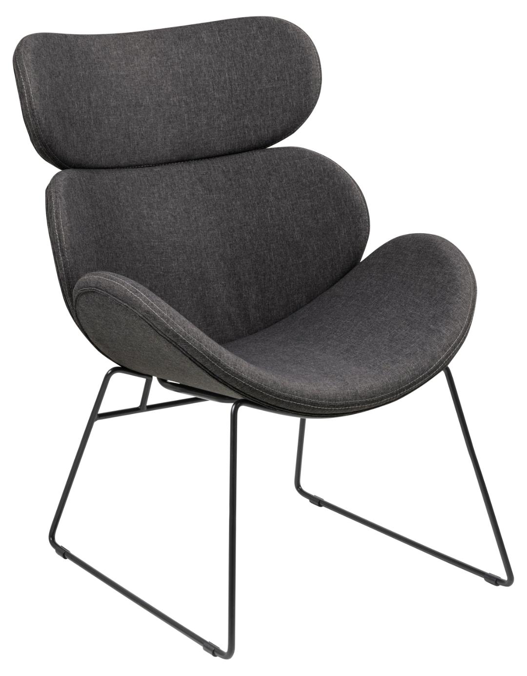 Cazar poilsio kėdė, Sawana kolekcijos audinys pilkas 5, lenktas pagrindas iš juodos milteliniu būdu dažytos plieninės konstrukcijos, 69x78.5x90.5 cm
