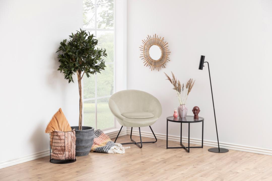 Center poilsio kėdė, Vic kolekcijos smėlio spalvos audinys A80, pagrindas iš matinės juodos grublėtos milteliniu būdu dažytos plieninės konstrukcijos su užtrauktuku, 82x71x81 cm