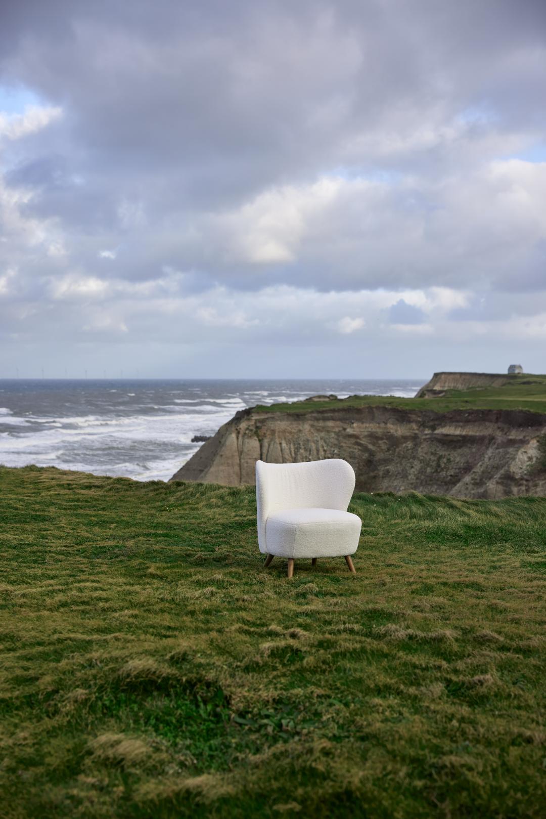 Crosby poilsio kėdė, Orson audinys kreminės spalvos 20, pagrindas iš dūminto NC lakuoto kaučiukmedžio su užtrauktuku, 76x73x82 cm