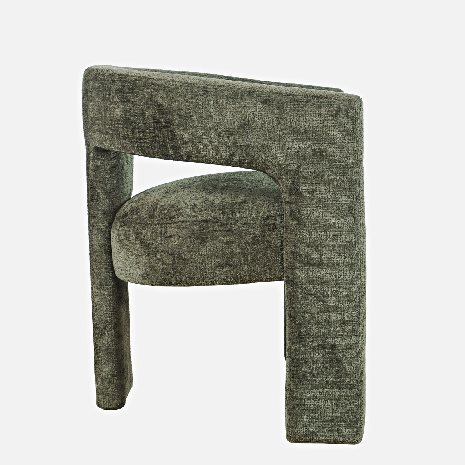 Elegantiška žalios spalvos kėdė, pagaminta iš aukščiausios kokybės minkšto ir aksominio paviršiaus audinio – šenilinės medžiagos. Tai minkštas, purus audinys, kuris savo tekstūra primena veliūrą arba aksomą. Ji gaminama specialia technika, kai siūlai yra apdorojami taip, kad audinys įgytų švelnų, aksominį paviršių. Šenilinė medžiaga yra itin maloni liesti ir patvari, suteiks išskirtinumo bet kuriam valgomajam.