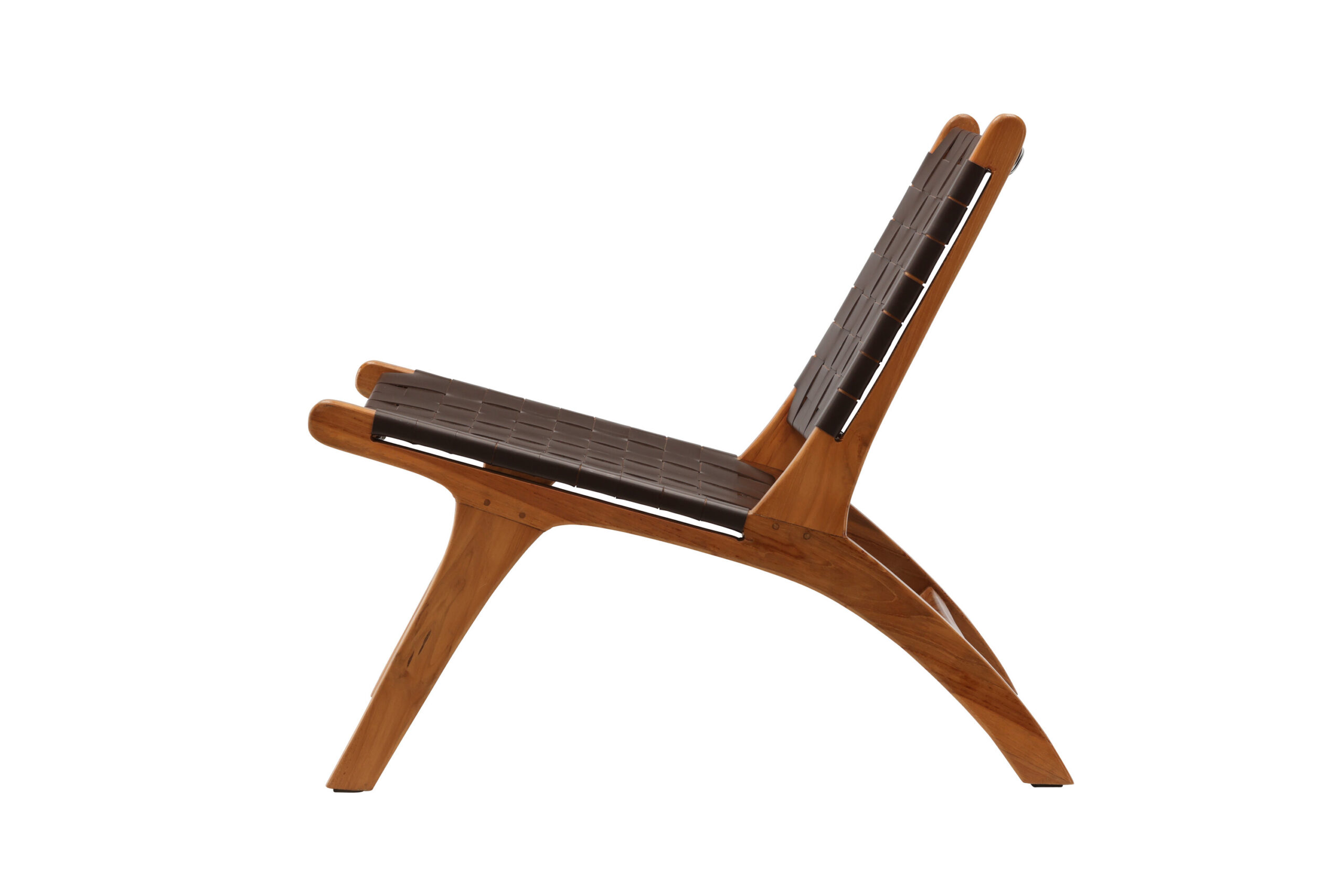 Su šiuo prabangiu foteliu svetainėje sukursite madingą ir akį traukiantį akcentą! Šis fotelis sukurtas vadovaujantis šiuolaikinėmis tendencijomis, jo atlošas ir sėdimoji dalis aptraukti rudos spalvos PU, o rėmo konstrukcija pagaminta iš gražaus tikmedžio. Šiek tiek palinkusi konstrukcija suteikia akiai patrauklų ir atpalaiduojantį įspūdį. Įsigykite modernų ir žavų baldą savo namams!