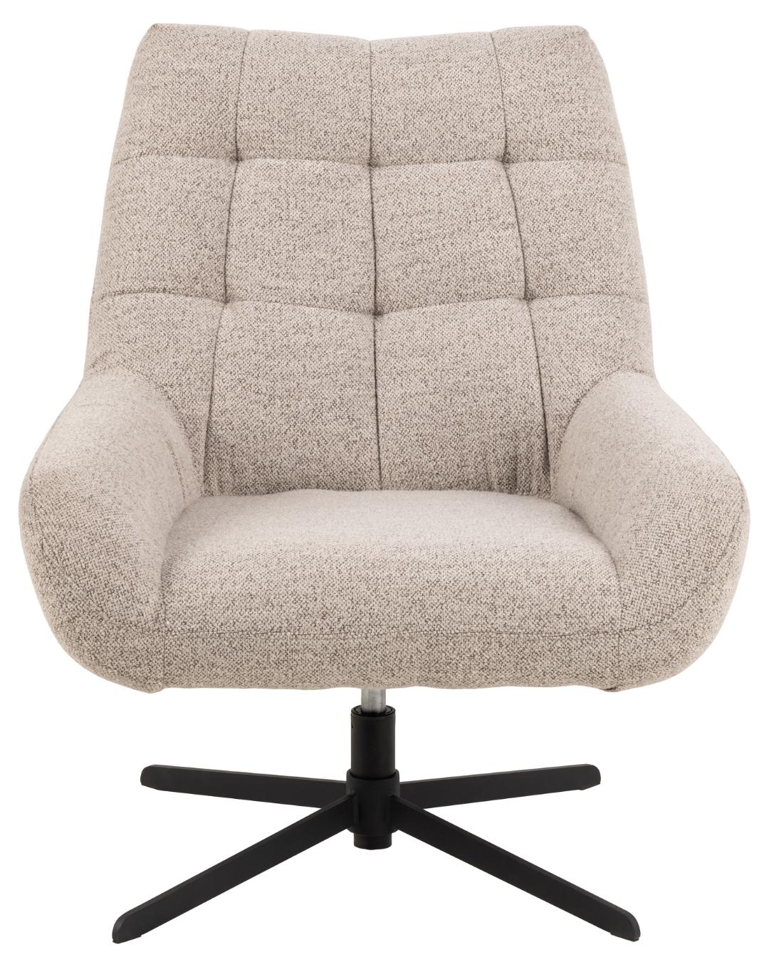 Paris poilsio krėslas, Monza kolekcijos smėlio spalvos audinys 60, keturių atšakų pagrindas – juodas matinis šiurkščios faktūros milteliniu būdu dengtas plienas, kvadratiniai dygsniai, pasukimo funkcija, su užtrauktuku, 73 × 76 × 89 cm.