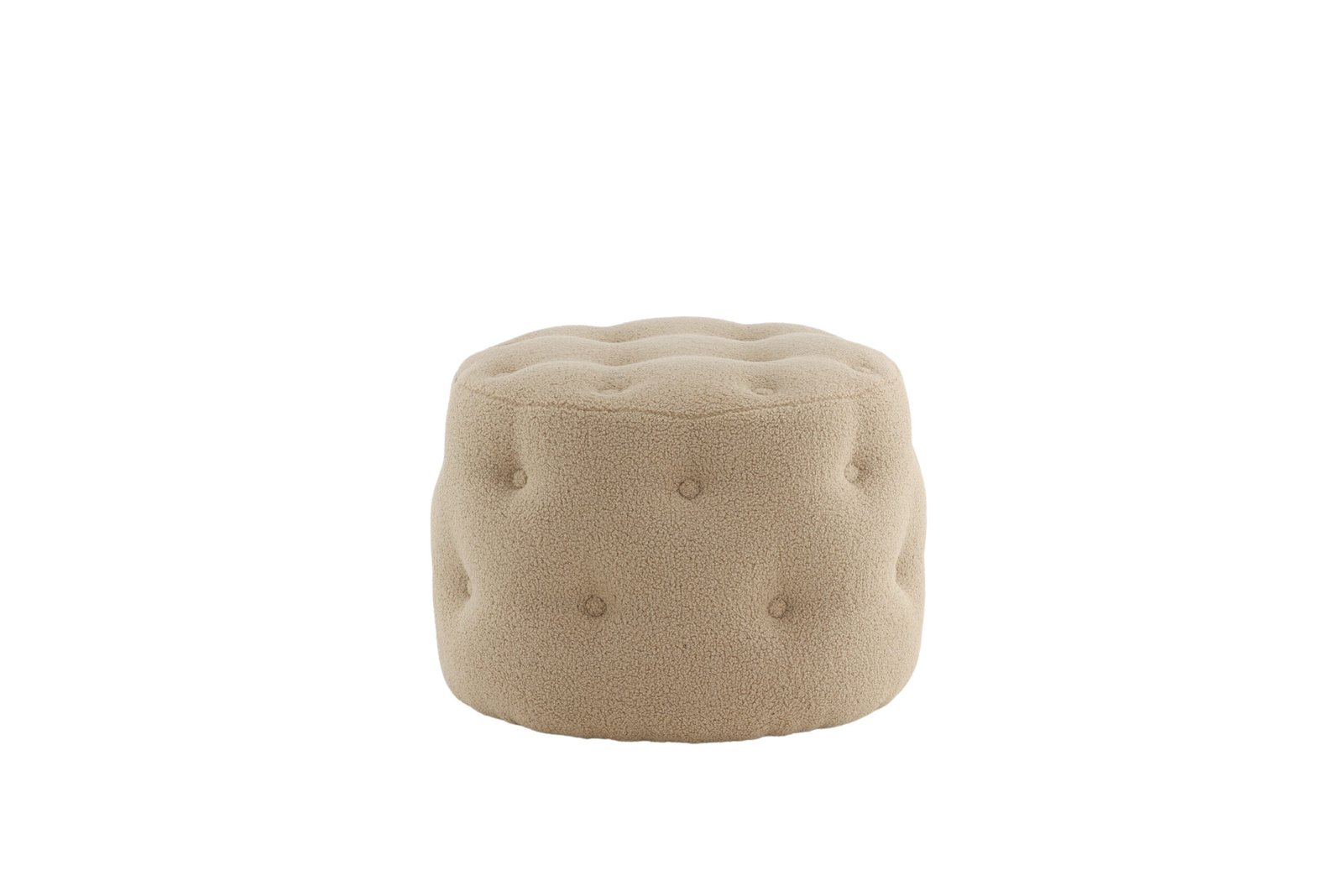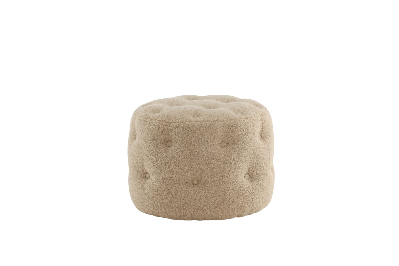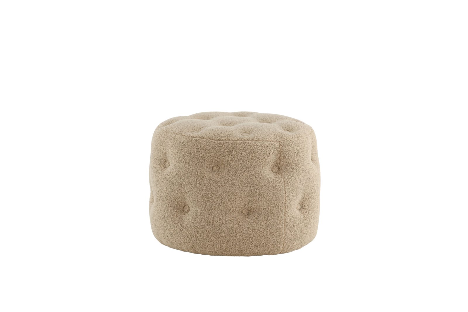 Papuoškite savo namus protingai ir stilingai! Benjamin iš minkšto Teddy audinio – cilindro formos, daugiafunkcinis smėlio spalvos sėdimas pufas su dekoratyvinėmis giliai įleistomis sagomis, kurios sukuria elegantišką bendrą vaizdą. Dėl minkštų formų ir paminkštintos sėdimosios dalies jis yra itin patogus ir puikiai tinka kaip papildoma vieta, kai svečių daug. Naudokite jį kaip kėdutę kojoms, laikiną paviršių arba kaip atskirą stiliaus akcentą – pasirinkimas priklauso nuo jūsų! Pagamintas iš putplasčio, medvilnės pluošto, Teddy audinio ir lenktos medienos. Pufas: aukštis 44 cm, skersmuo 55 cm.