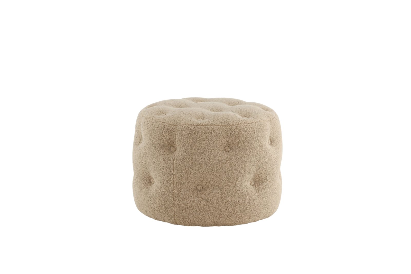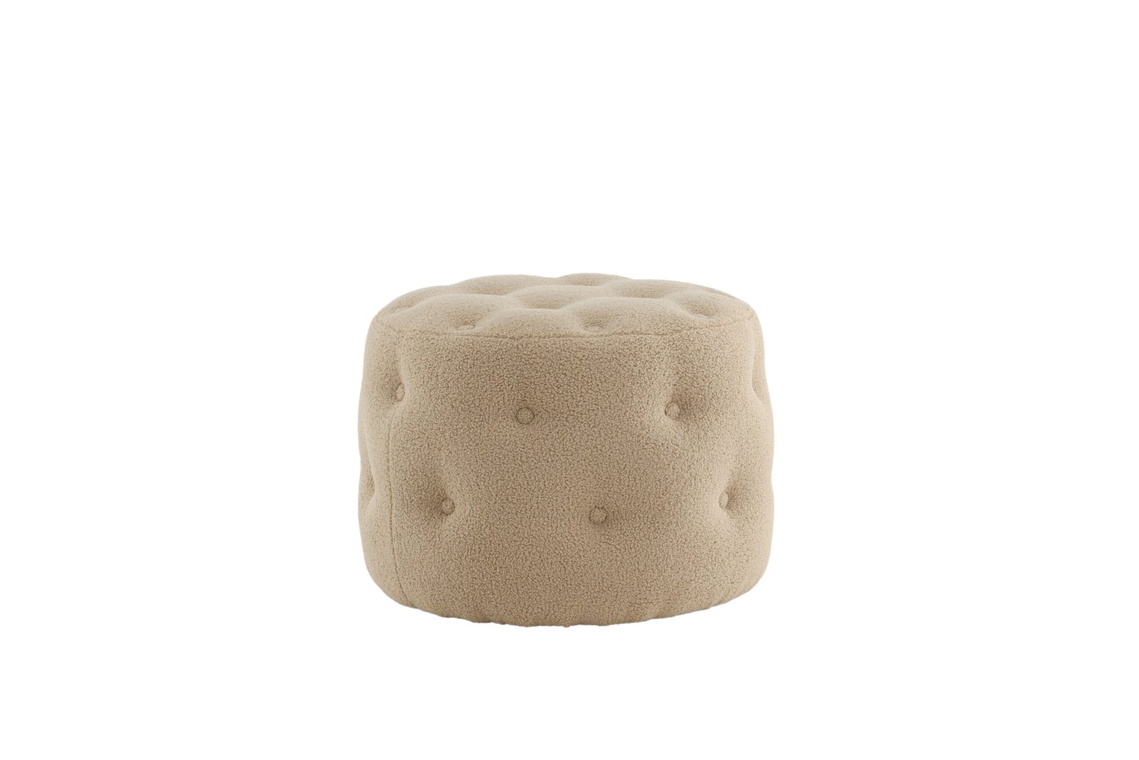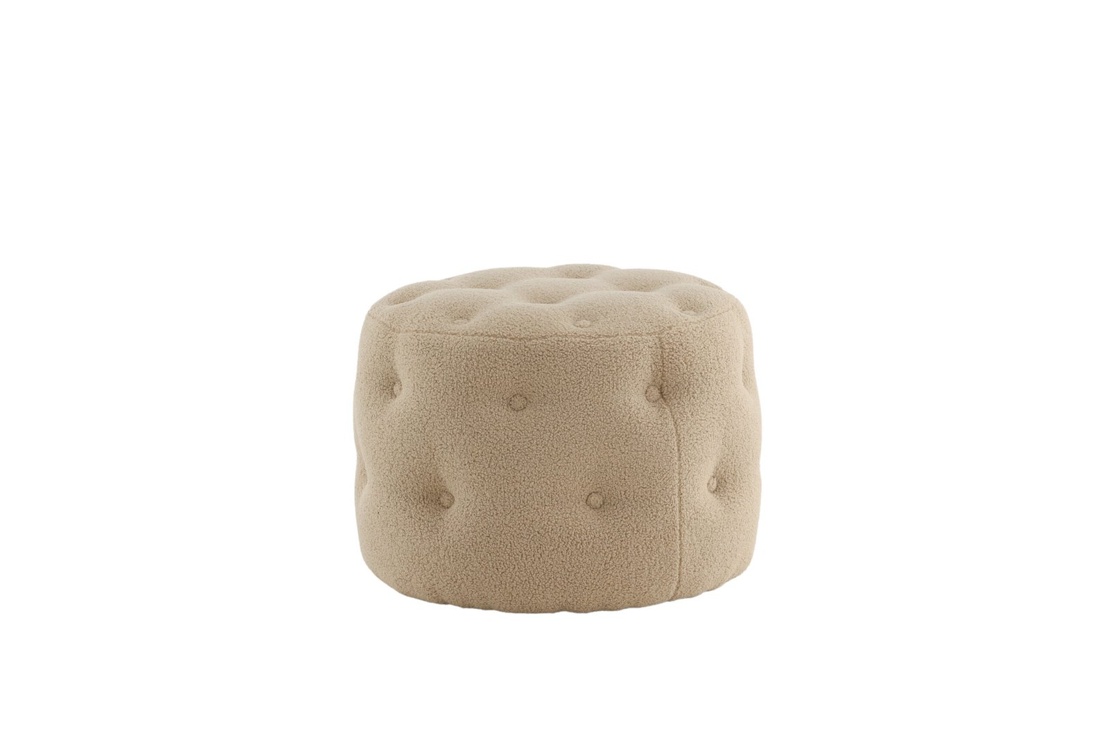 Papuoškite savo namus protingai ir stilingai! Benjamin iš minkšto Teddy audinio – cilindro formos, daugiafunkcinis smėlio spalvos sėdimas pufas su dekoratyvinėmis giliai įleistomis sagomis, kurios sukuria elegantišką bendrą vaizdą. Dėl minkštų formų ir paminkštintos sėdimosios dalies jis yra itin patogus ir puikiai tinka kaip papildoma vieta, kai svečių daug. Naudokite jį kaip kėdutę kojoms, laikiną paviršių arba kaip atskirą stiliaus akcentą – pasirinkimas priklauso nuo jūsų! Pagamintas iš putplasčio, medvilnės pluošto, Teddy audinio ir lenktos medienos. Pufas: aukštis 44 cm, skersmuo 55 cm.