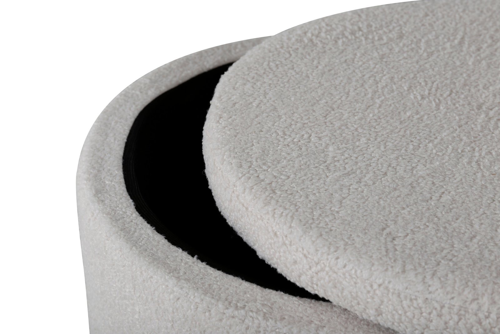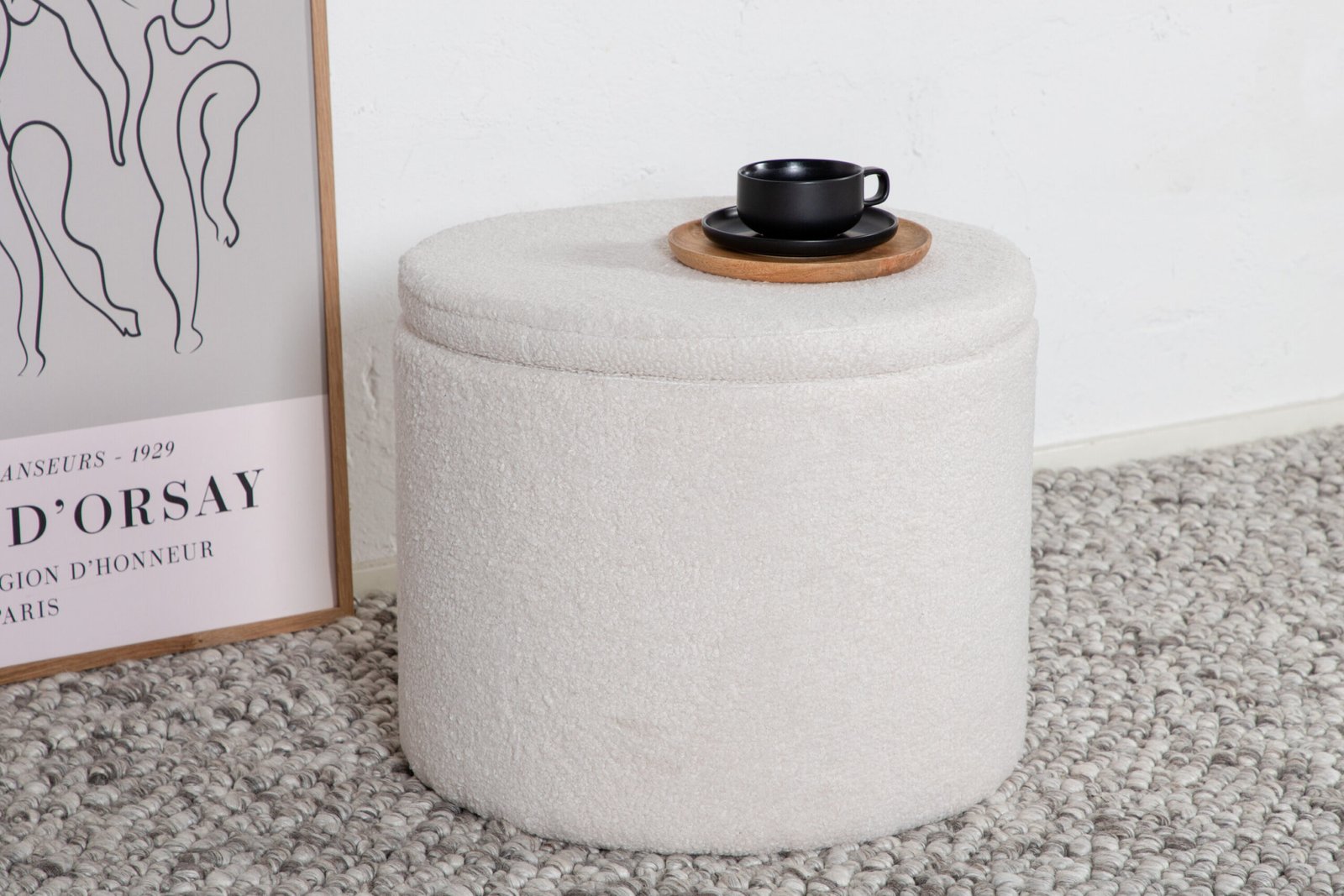 Įrengkite savo namus išmaniai, apgalvotai ir stilingai su lengvai pritaikomu Dunken serijos pufu! Tiesus cilindro formos dizainas ir madinga balta spalva su pūkuotu Teddy audiniu sukuria jaukią ir šiuolaikišką atmosferą. Naudokite kaip patogią kėdutę kojoms, papildomą sėdimąją dalį, kai svečių daug, arba kaip stilingą akcentą šalia kitų baldų – tik vaizduotė nustato ribas! Nuimamas dangtis leidžia paslėpti daiktus. Pagaminta iš putplasčio, medvilnės pluošto, Teddy audinio, lenktos medienos ir plieno. Pufų matmenys: aukštis – 42,5 cm, skersmuo – 35 cm.