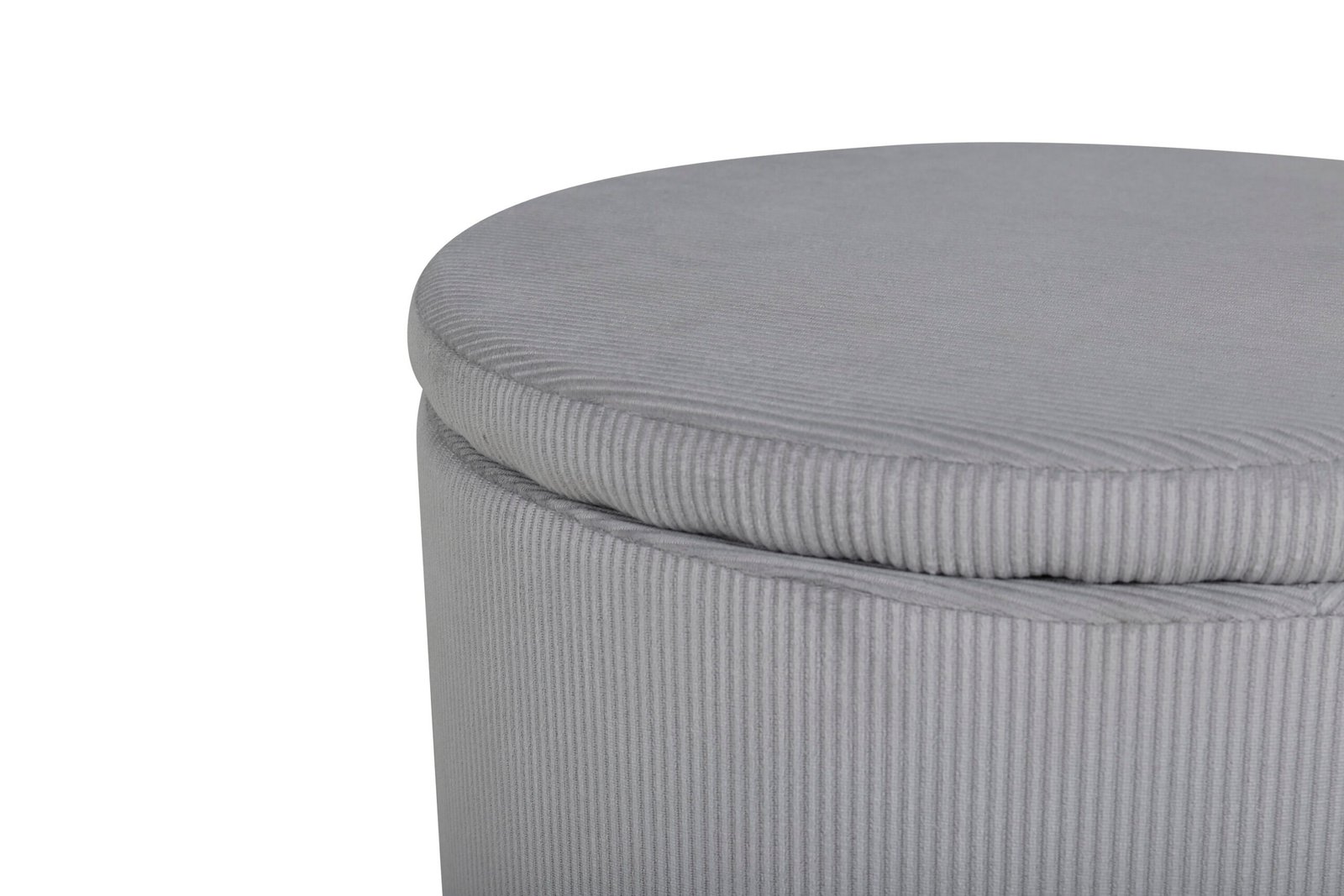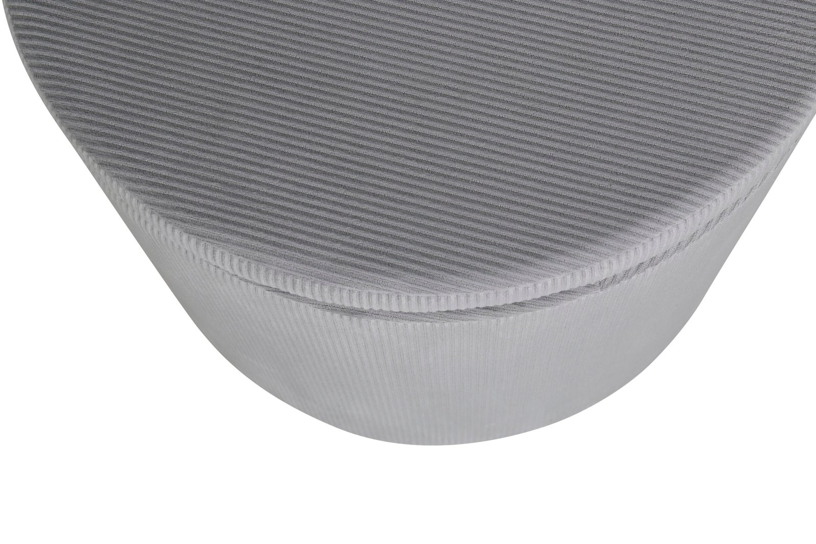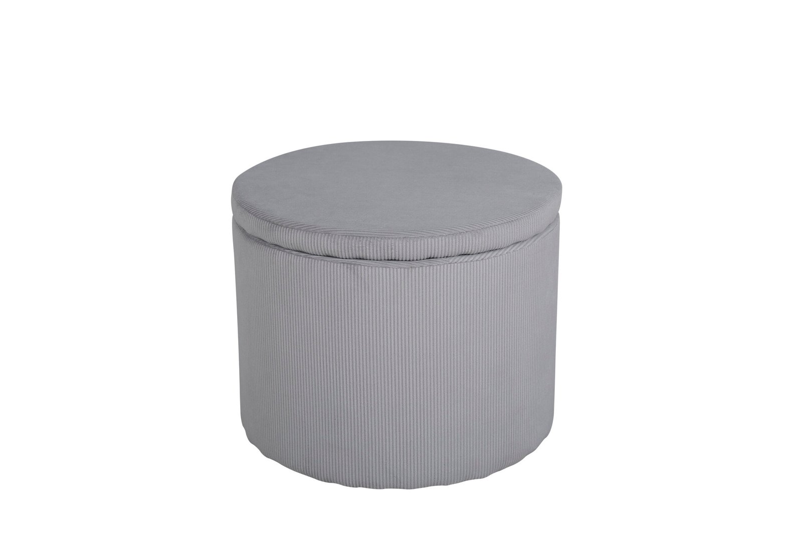 Derinkite modernų dizainą su 50-ųjų nostalgija su šia pilka velveto kėdute! Dunken pufas yra lengvai pritaikomas, praktiškas ir traukiantis akį. Cilindro formos pufas turi nuimamą dangtį, leidžiantį paslėpti daiktus, taip pat puikiai tinka kaip atrama kojoms, paviršius daiktams dėti ar papildoma sėdimoji dalis. Pagaminta iš putplasčio, medvilnės pluošto, audinio ir lenktos medienos. Pufų matmenys: aukštis: 43 cm, skersmuo: 51 cm.