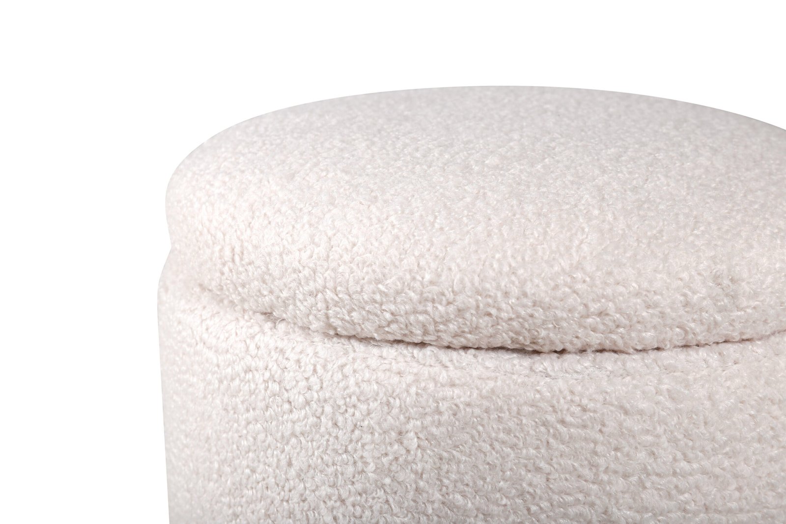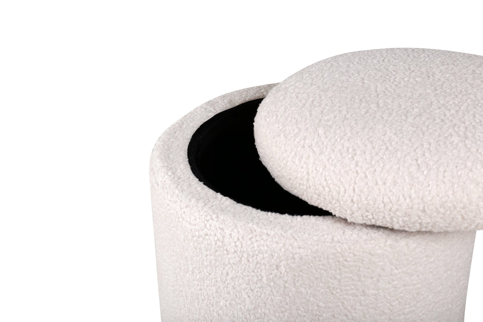 Limpen – praktiška ir stilinga interjero detalė, kuri traukia akį savo nuostabiu dizainu ir kompaktiškais matmenimis. Šis modernus pufas papildo interjerą, yra lengvai dedamas ir jį galima naudoti įvairiai. Nuimamo dangčio dėka jis puikiai tinka saugoti daiktus, kaip papildoma sėdimoji dalis arba kaip gražus akcentas šalia sofos. Pagamintas iš madingo baltos spalvos Teddy audinio, su rėmu, pagamintu iš putplasčio, medvilnės pluošto, audinio ir lenktos medienos. Pufo matmenys: aukštis: 40 cm, skersmuo: 32 cm. Jaukus ir modernus!