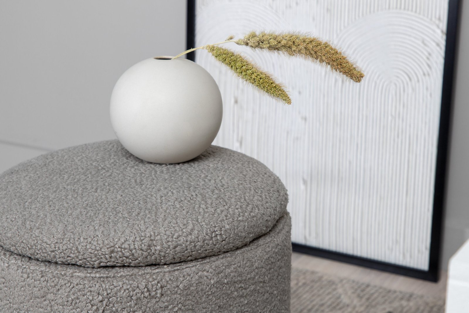 Limpen pufas – praktiška interjero detalė, traukianti akį savo nuostabiu dizainu ir kompaktiškais matmenimis. Šis modernus pufas pagerina interjero išvaizdą, yra lengvai pritaikomas ir turi daug naudingų funkcijų. Dėl nuimamo dangčio jis puikiai tinka daiktų saugojimui, kaip papildoma sėdimoji dalis arba kaip gražus akcentas šalia sofos. Pagamintas iš madingo gelsvo Teddy audinio su rėmu iš putplasčio, medvilnės pluošto, audinio ir lenktos medienos. Pufo matmenys: aukštis: 40 cm, skersmuo: 32 cm. Papuoškite savo namus išmaniai ir stilingai!