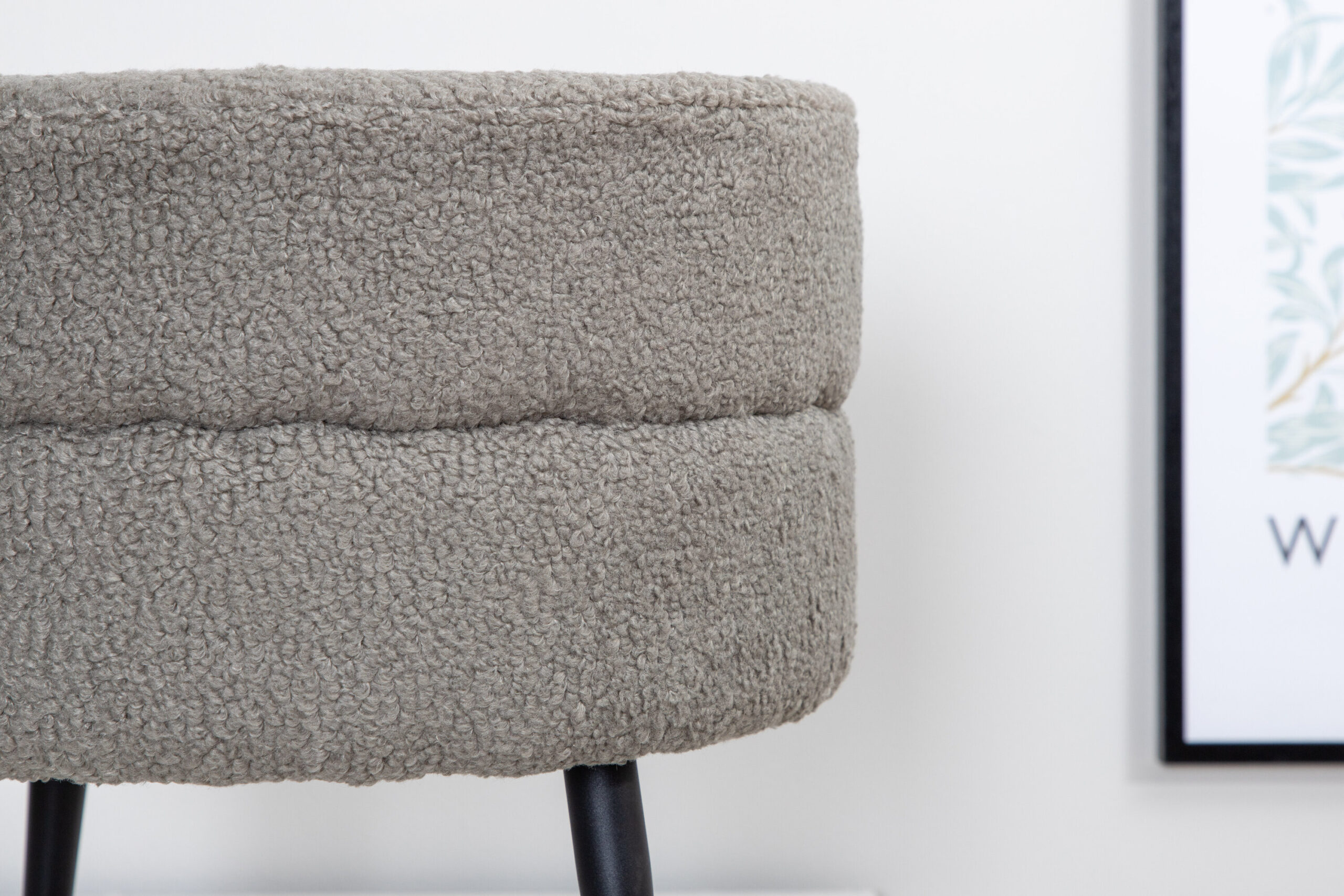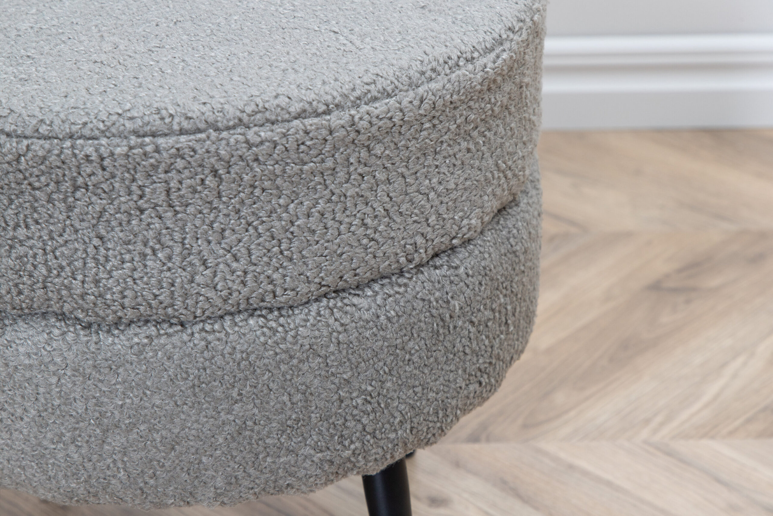 Paprastas ir diskretiškas pufas, nepaisant kompaktiško dydžio, žavi madingu dizainu ir moderniu Teddy audiniu. Pilkos spalvos pufas, pagamintas iš putplasčio, medvilnės pluošto, audinio ir lenktos medienos, yra elegantiškos išvaizdos. Kojos, švelniai išlenktos, iš juodo plieno. pufo matmenys: aukštis: 40 cm, skersmuo: 40 cm. Praktiškas ir stilingas, šis pufas lengvai pritaikomas ir gali būti naudojamas įvairiai – kaip atrama kojoms, papildoma sėdimoji dalis arba kaip šauni interjero detalė!