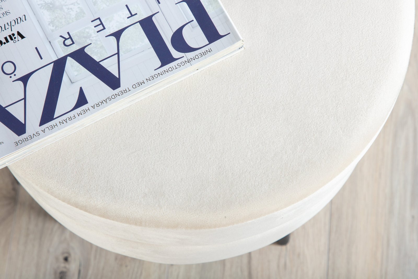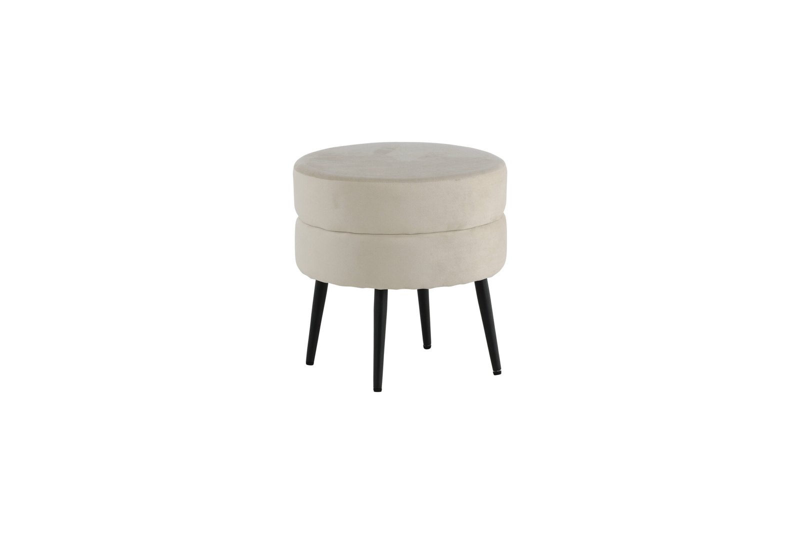 Pufas Pot sukuria jaukią atmosferą namuose! Dėl švelnios baltos spalvos ir aksominio audinio jis atrodo šiltas ir stilingas. Šiek tiek platėjančios juodo plieno kojelės suteikia lengvumo. Pufo matmenys: aukštis: 40 cm, skersmuo: 40 cm. Naudokite kaip papildomą sėdimąją dalį, kėdutę ar reljefinę zoną – jis taps stilinga interjero detale!