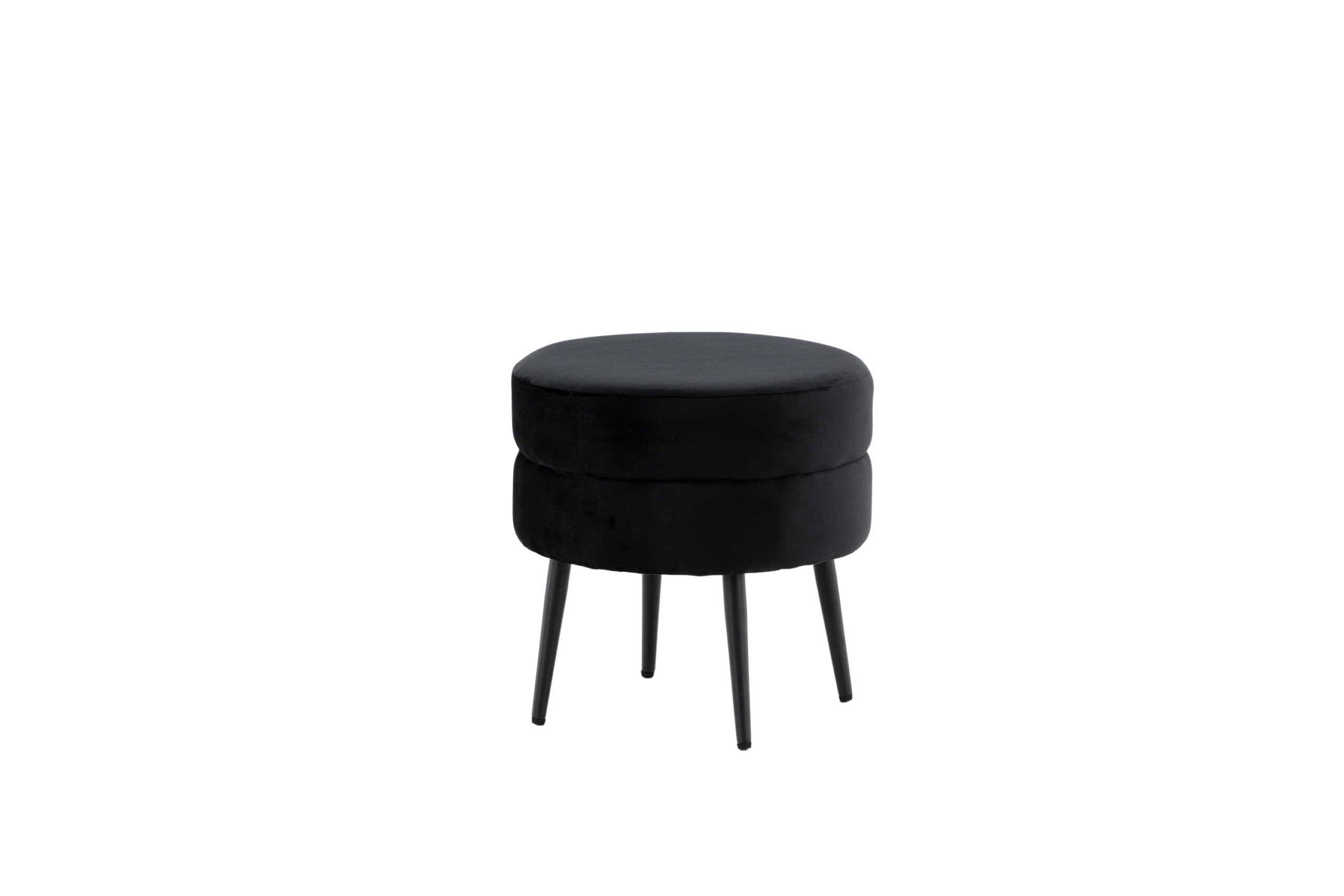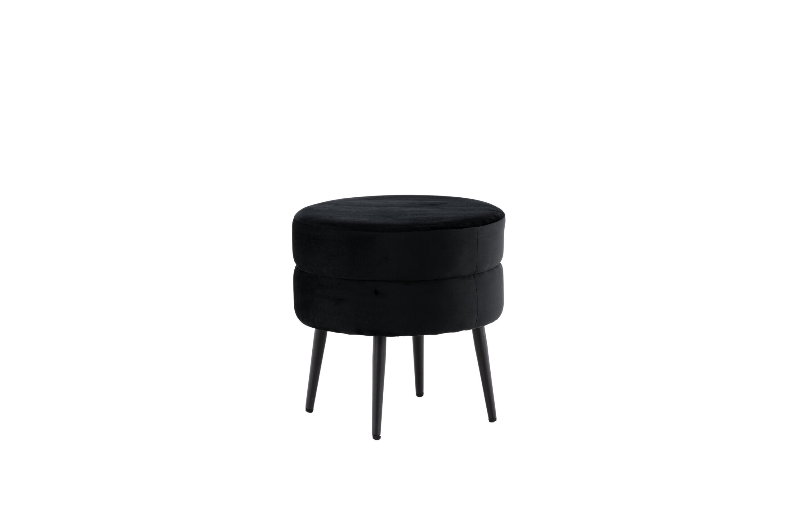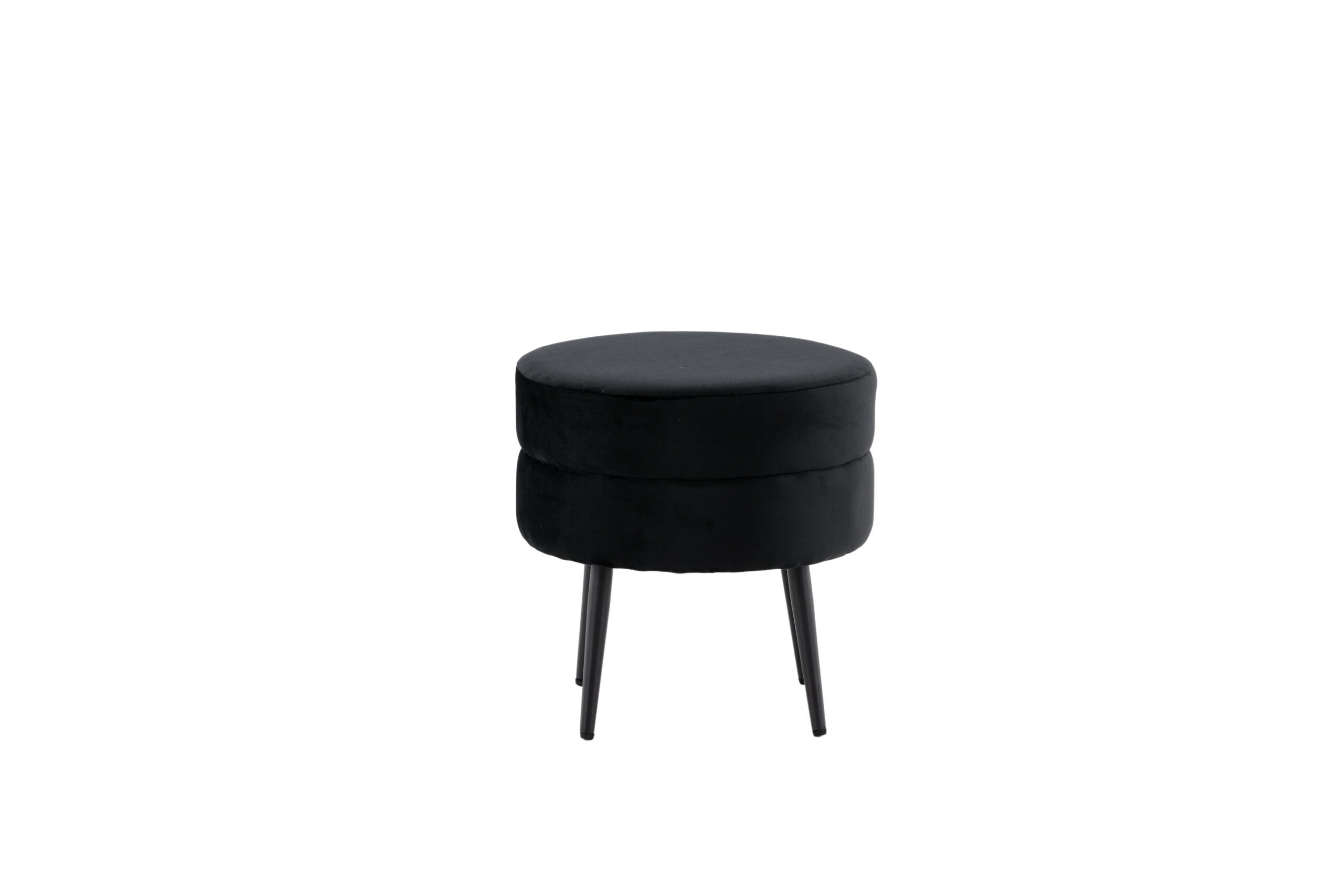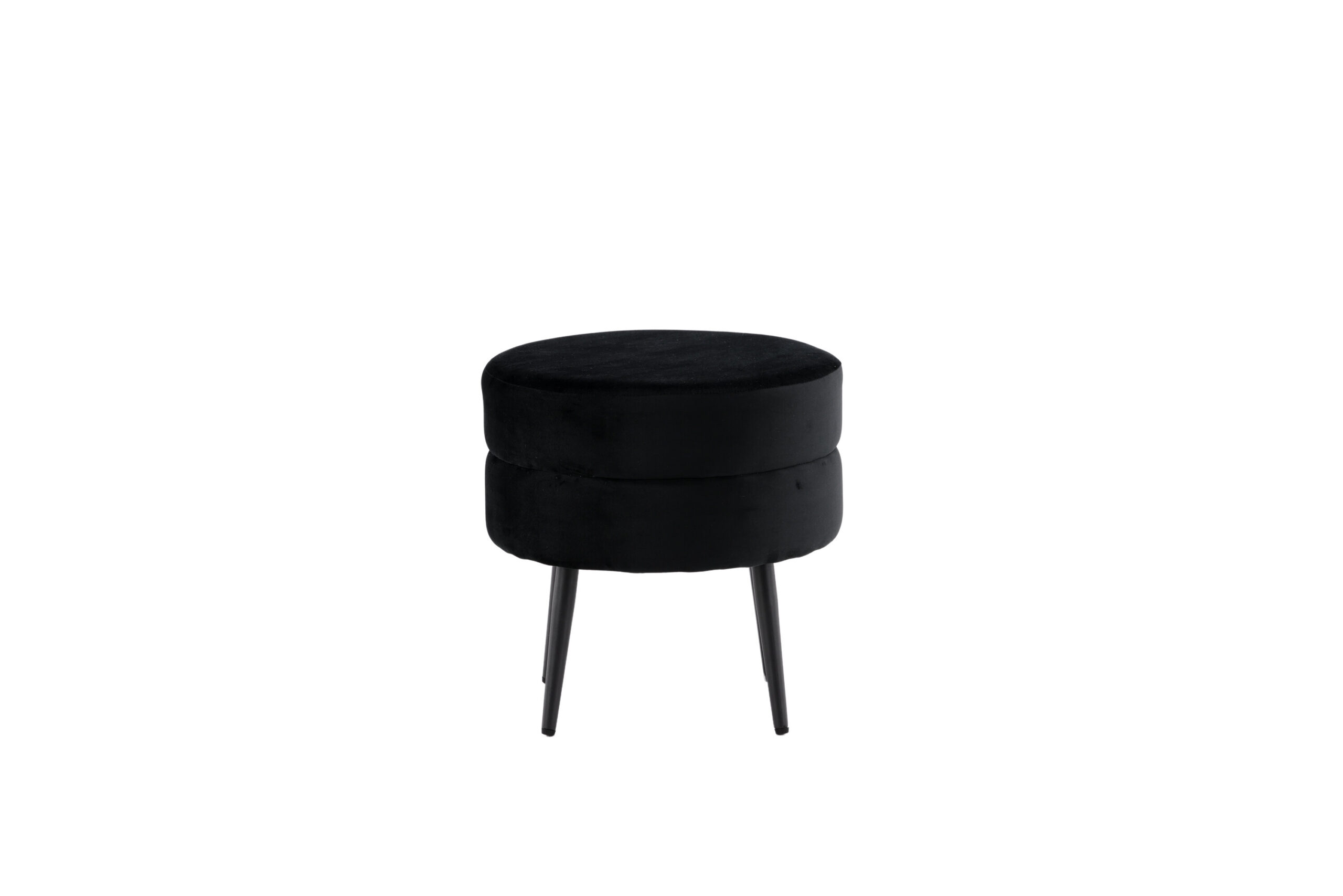 Juodos spalvos ir aksominio audinio pufas Pot - stilingas akį traukiantis akcentas! Nepaisant kompaktiško dydžio, puikiai tinka tiek kaip atskira interjero detalė, tiek kaip kėdutė kojoms šalia sofos. Pagamintas iš putplasčio, medvilnės pluošto, audinio ir lenktos medienos. Juodo plieno kojos suteikia lengvumo. Pufo matmenys: aukštis: 40 cm, skersmuo: 40 cm. Lengvai pritaikomas ir praktiškas!