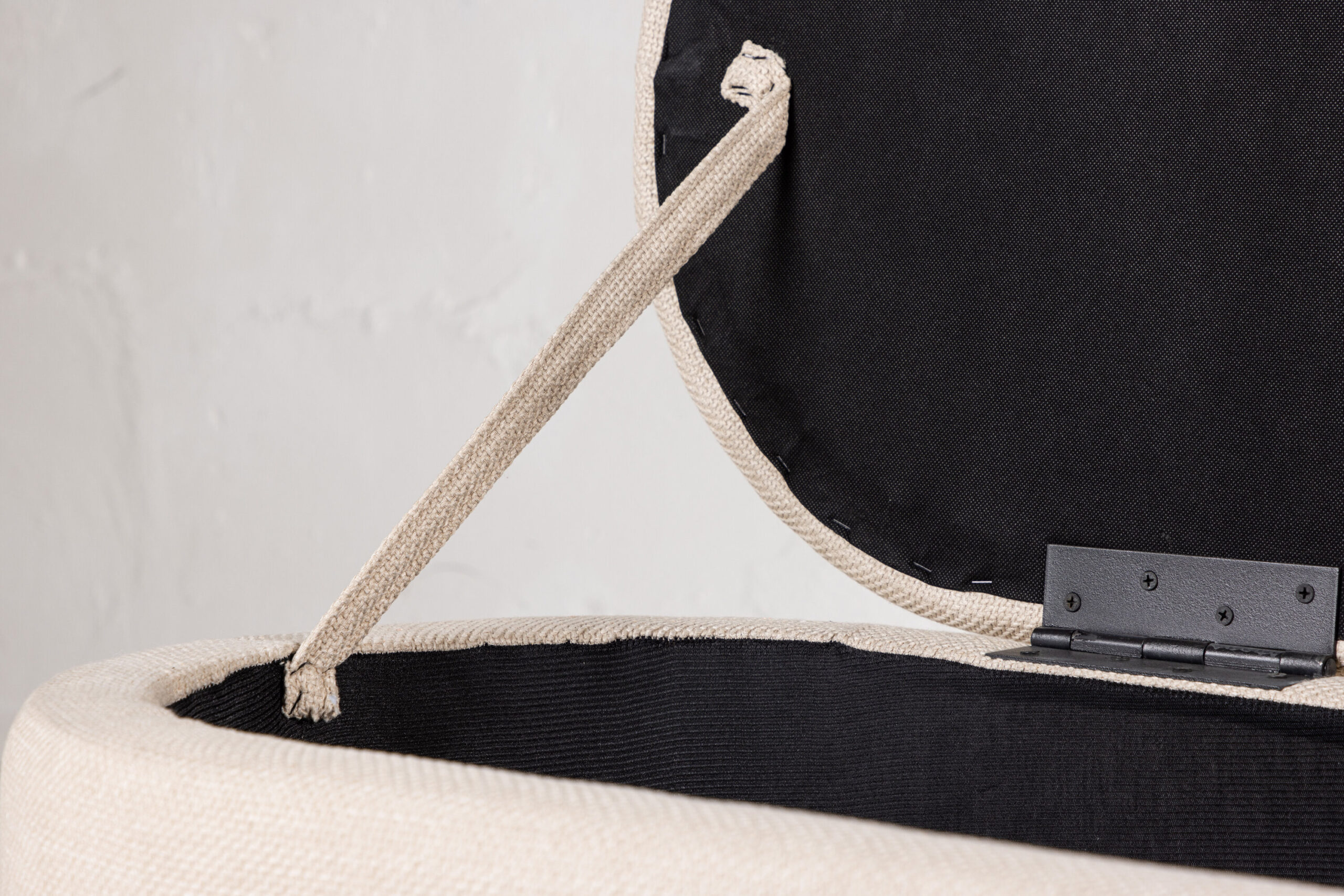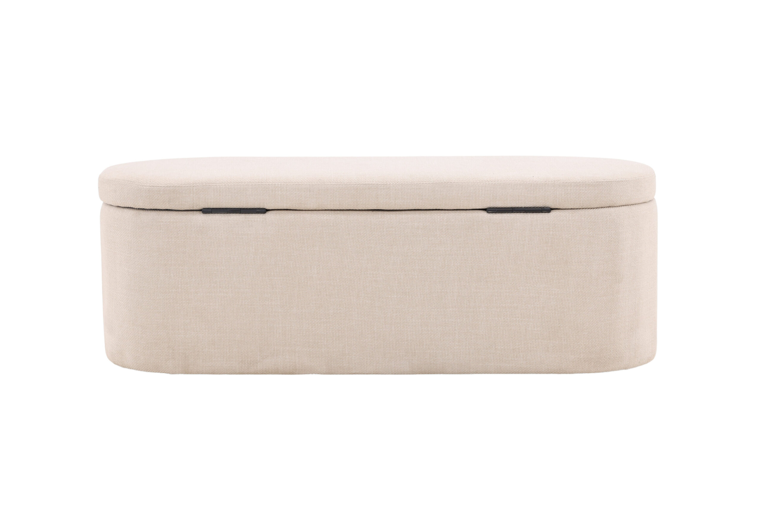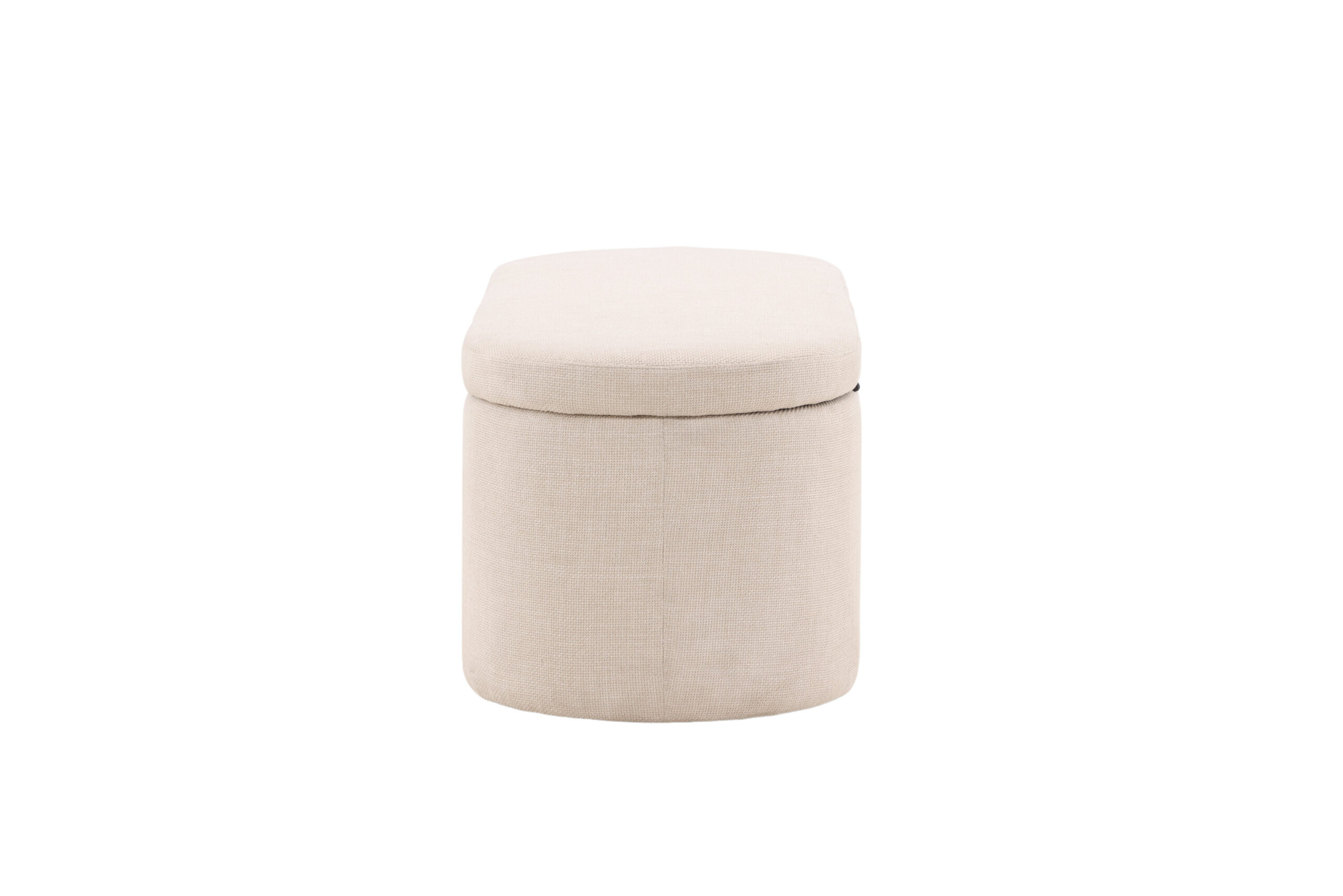 Sėdimas baldas ir daiktadėžė viename – ar gali būti patogiau? Šis smėlio atspalvio pufas iš Potenza kolekcijos išsiskiria tvirta, ovalia forma ir stabiliai remiasi į grindis. Kreminės baltos spalvos apmušalai pagaminti iš patvaraus poliesterio, kurį lengva prižiūrėti. Dėžutės dangtis atlenkiamas ir apverčiamas, todėl atsiranda papildomos vietos daiktams laikyti. Tai sumanus ir stilingas sprendimas, puikiai papildantis modernius namus. Svetainėje ar lauko poilsio zonoje? Šis pufas lengvai pritaikomas prie įvairių interjerų!