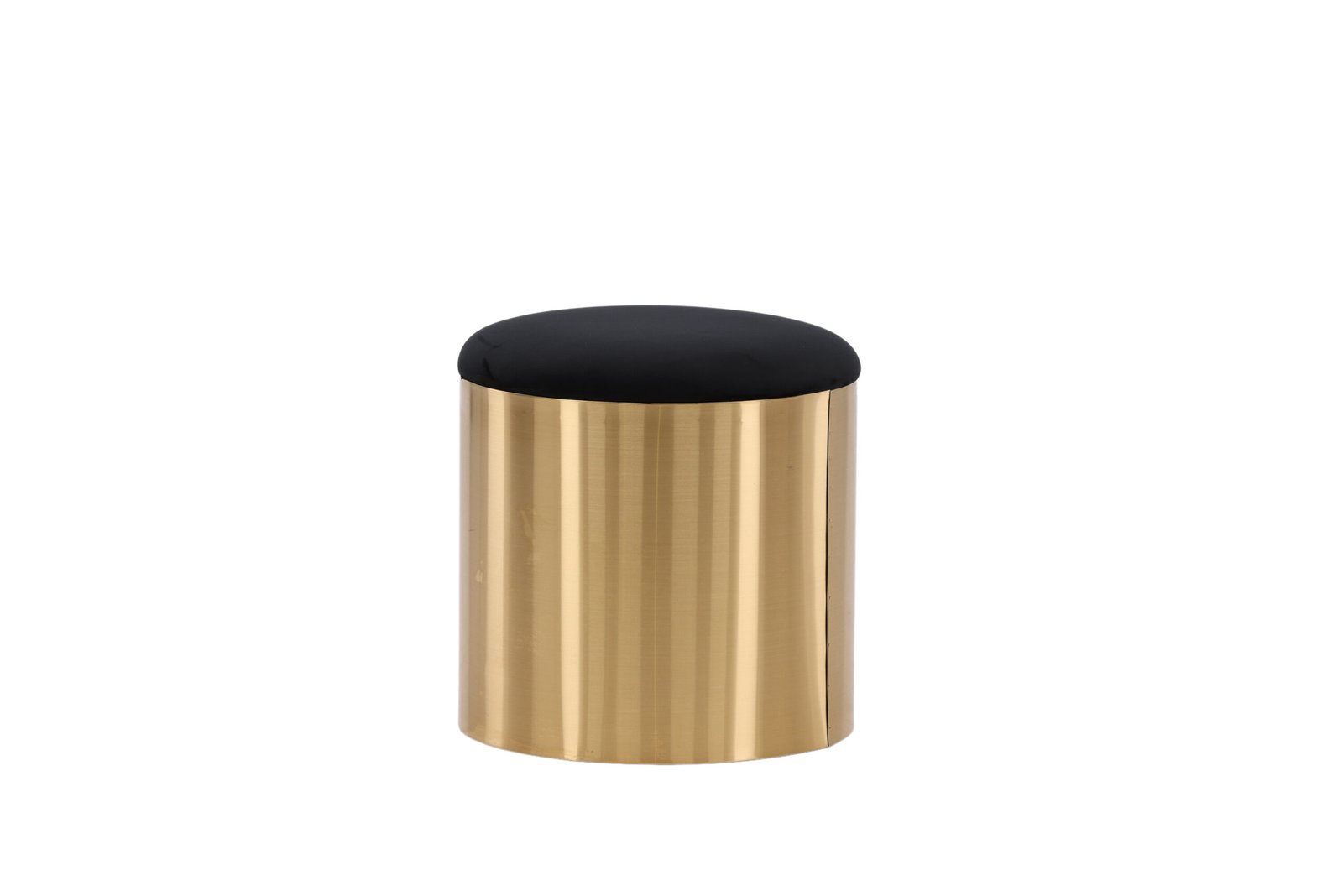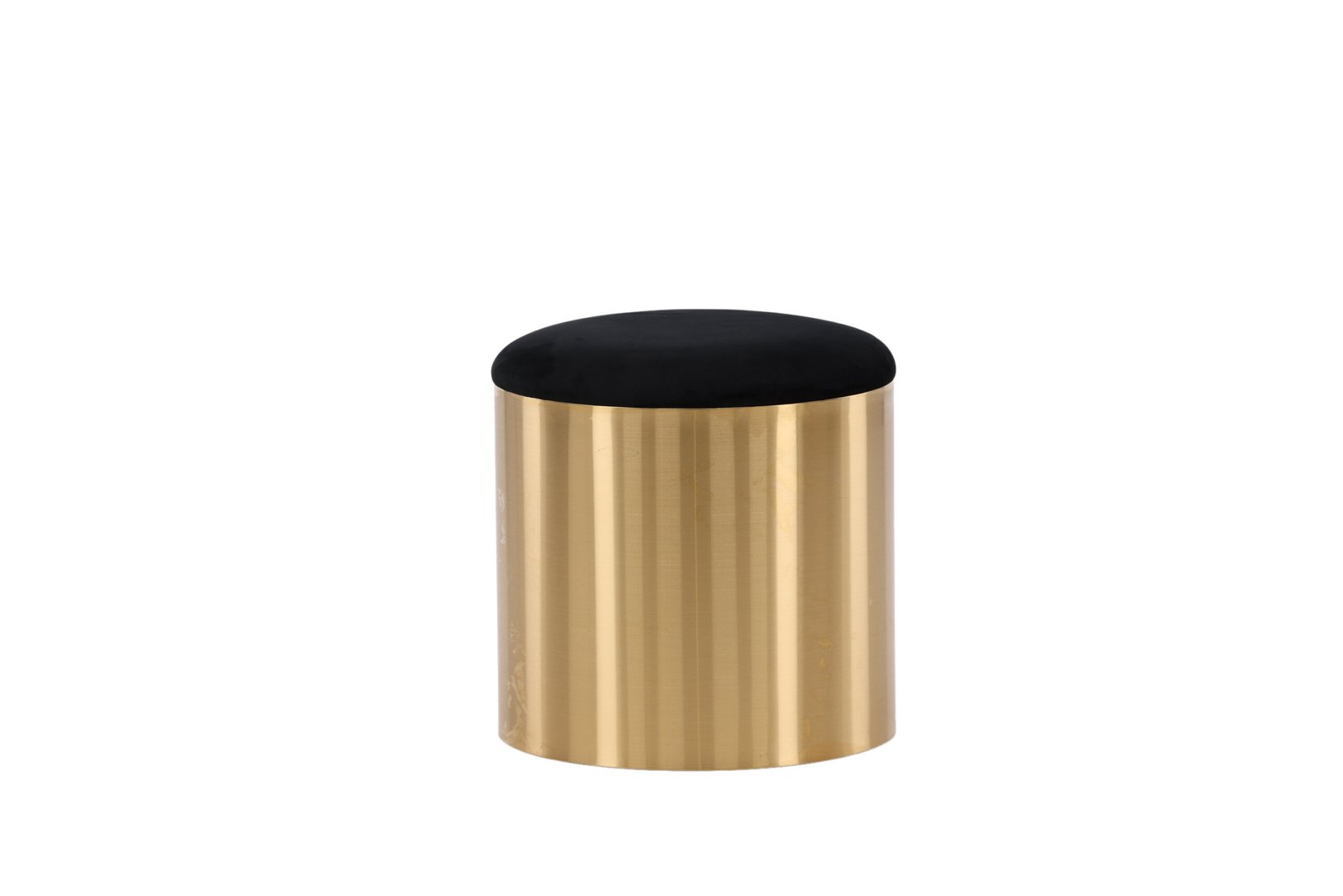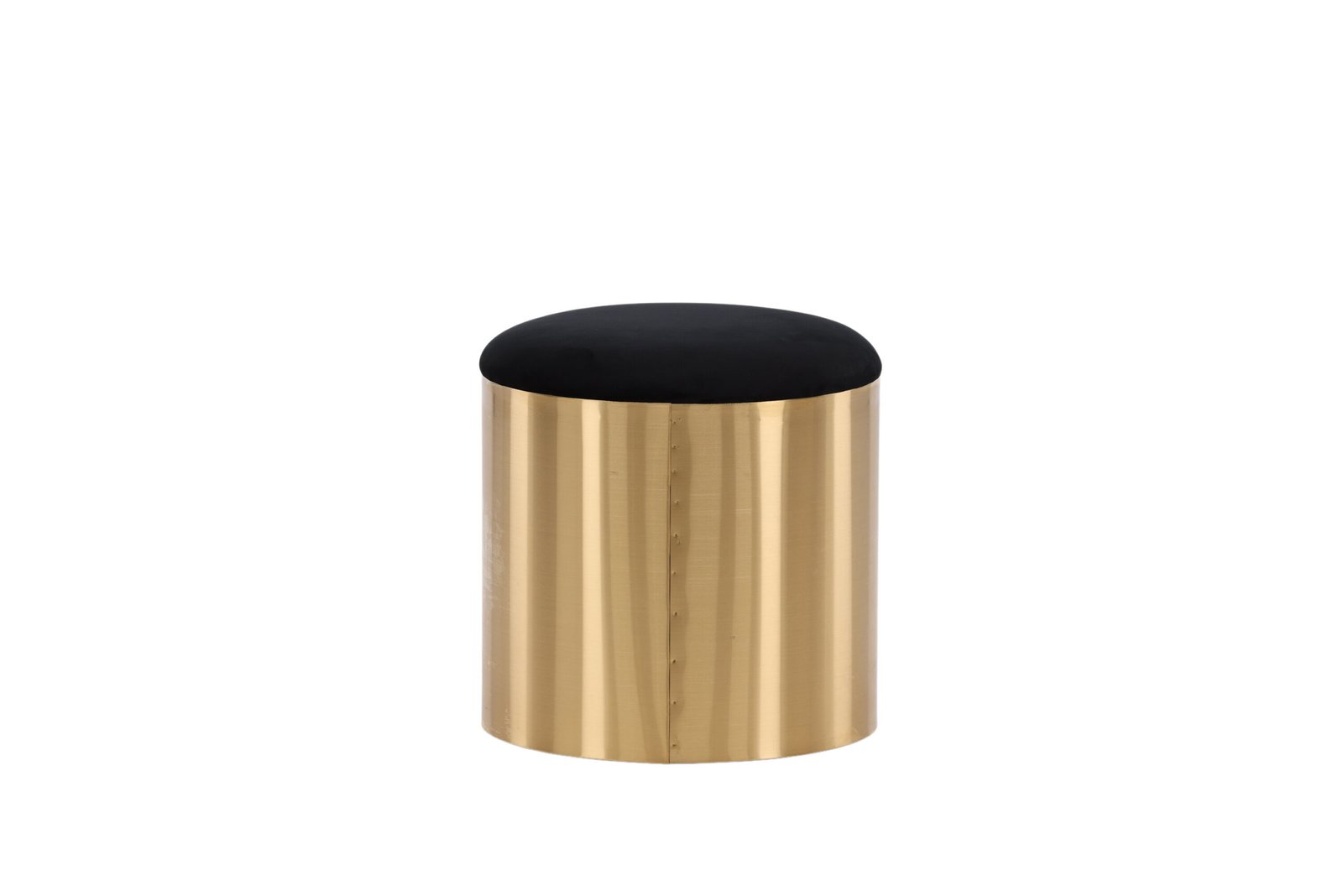 Dėl savo cilindro formos ir prabangaus dizaino šis pufas suteikia interjerui rafinuotumo. Jį dengia minkštas juodas aksomas, kuris suteikia kambariui subtilaus blizgesio, o auksinis metalinis pagrindas užtikrina stabilumą, ilgaamžiškumą ir suteikia išskirtinių akcentų. Kompaktiškas ir lengvas – lengvai perkeliamas į bet kurią namų erdvę.
