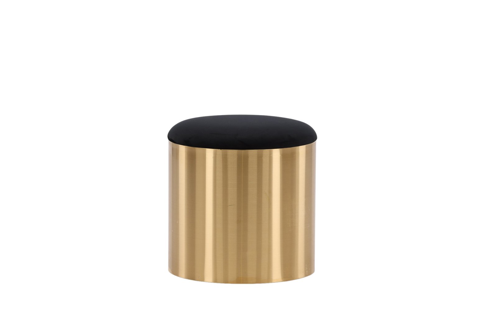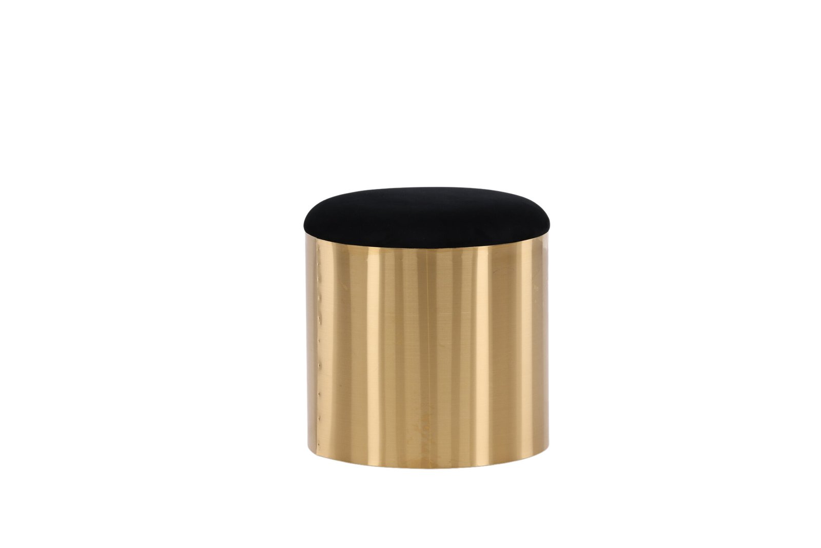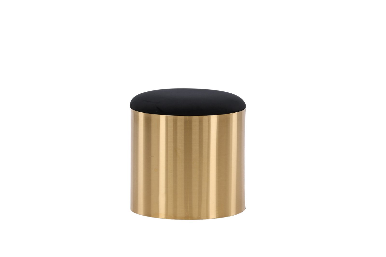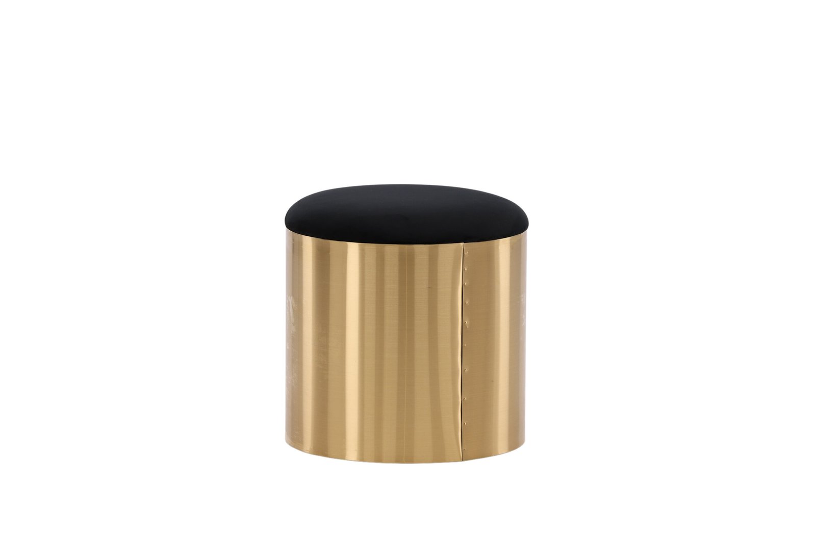 Dėl savo cilindro formos ir prabangaus dizaino šis pufas suteikia interjerui rafinuotumo. Jį dengia minkštas juodas aksomas, kuris suteikia kambariui subtilaus blizgesio, o auksinis metalinis pagrindas užtikrina stabilumą, ilgaamžiškumą ir suteikia išskirtinių akcentų. Kompaktiškas ir lengvas – lengvai perkeliamas į bet kurią namų erdvę.