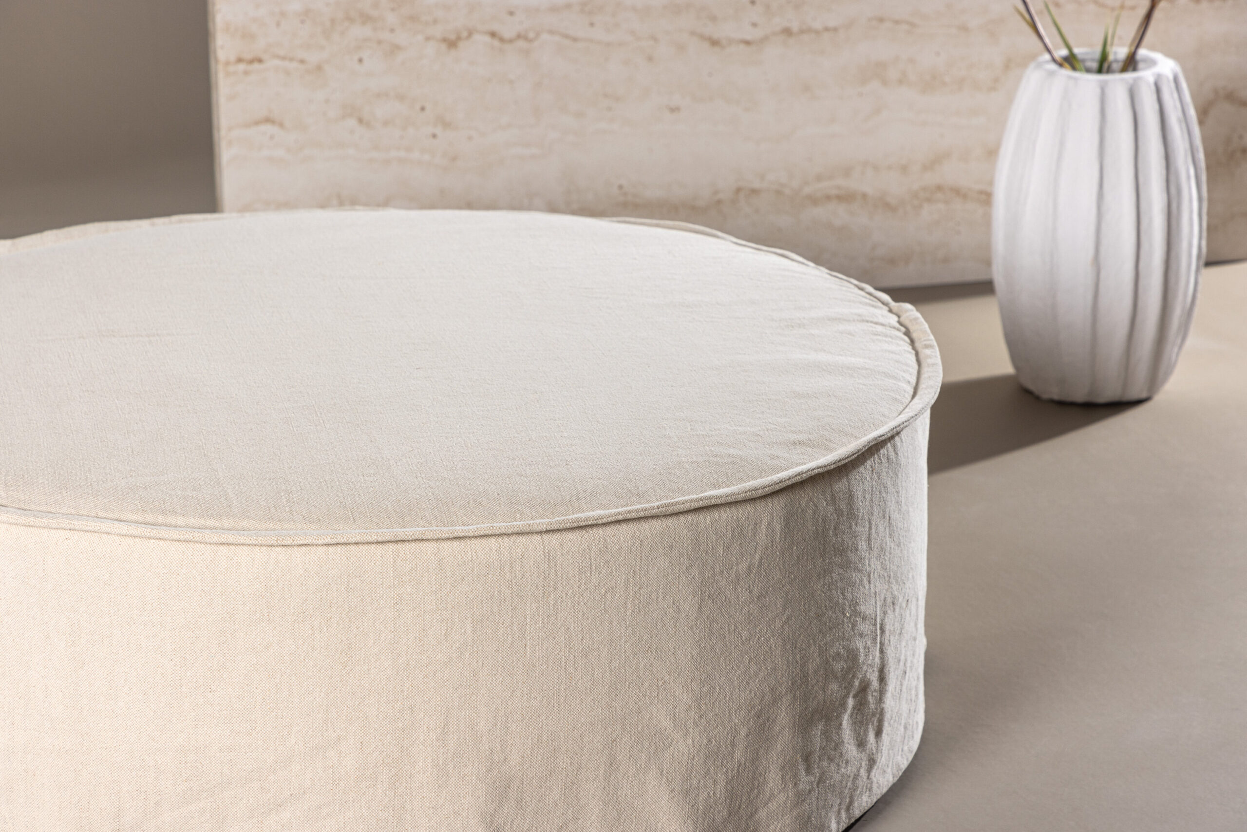 Vindo Ottoman aptrauktas subtiliu smėlio spalvos audiniu iš lino, suteikiančio rafinuotumo. Dėl apvalios formos ir įspūdingo 101 cm skersmens jis taps pagrindiniu jūsų svetainės ar miegamojo akcentu. Modernaus dizaino dėka Vindo Ottoman lengvai įsilies tiek į klasikinį, tiek į šiuolaikinį interjerą.