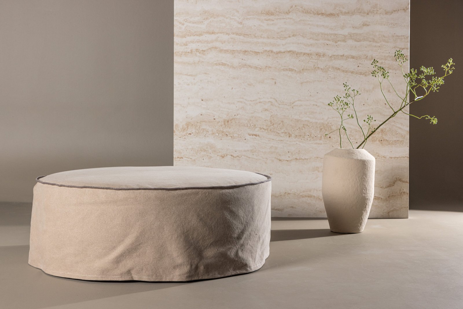 Mūsų Vindo Ottoman apmuštas elegantišku šilto rudo atspalvio lininiu audiniu, kuris suteikia rafinuotumo. Įspūdingo 101 cm skersmens ir apvalios formos - jis taps pagrindiniu akcentu jūsų svetainėje arba bet kurioje erdvėje, kur jums reikia papildomo komforto.