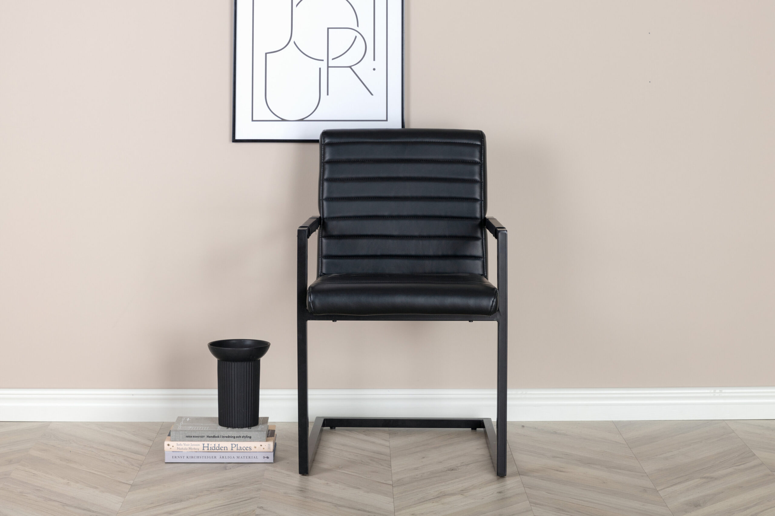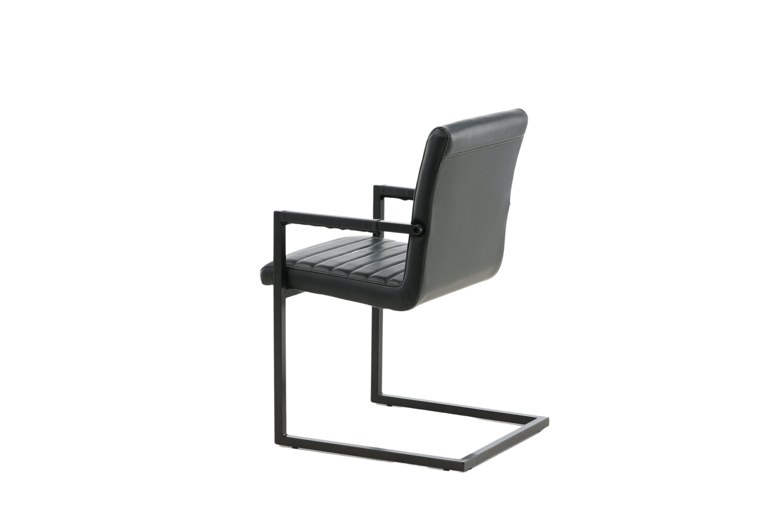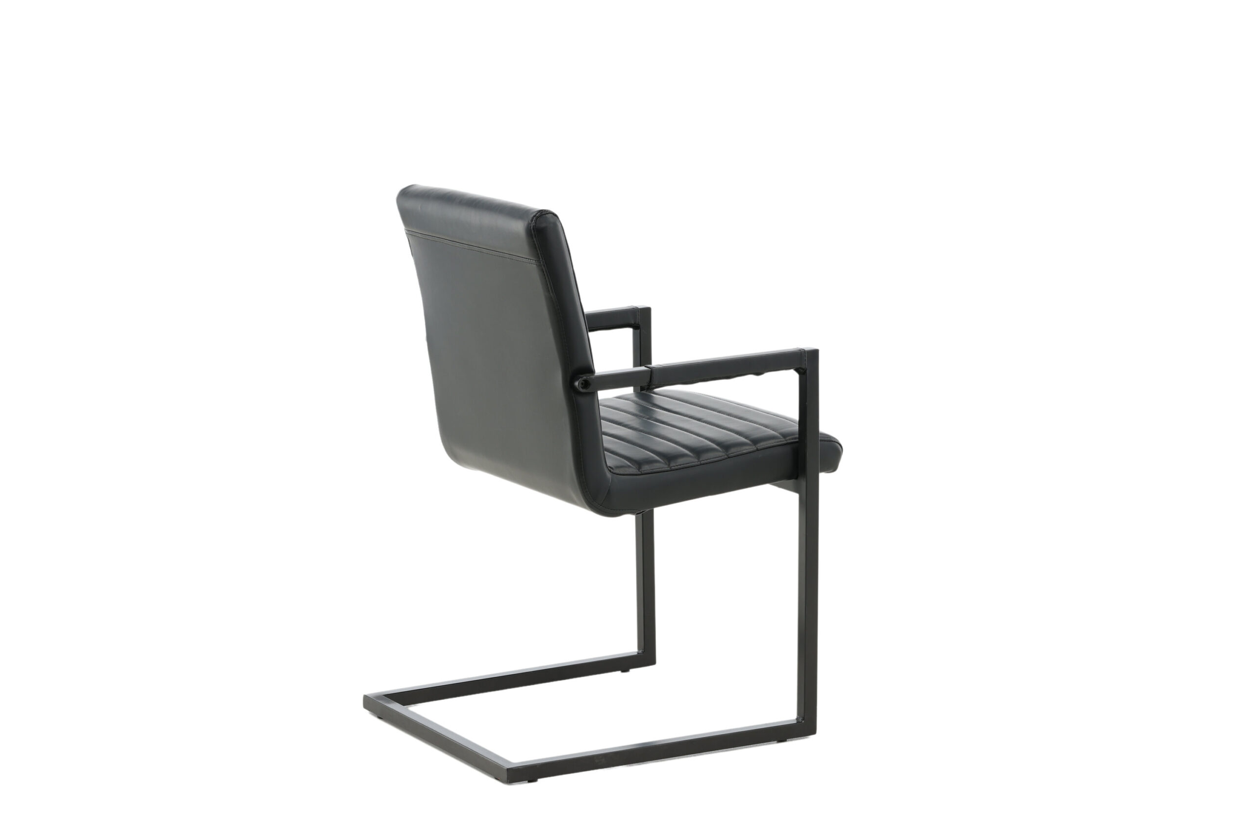 Valgomojo kėdė iš kolekcijos Art - tai industrinio dizaino, pilnai išbaigtas fotelis / krėslas su kaimišku pagrindu ir integruotu juodos spalvos, milteliniu būdu dengto metalo porankiu. Platus atlošas ir sėdimoji dalis, užtikrinantys didesnį patogumą, pagaminti iš juodos dirbtinės odos su gražaus rašto dekoratyviniais dygsniais atloše ir sėdimosios dalies vidinėje pusėje. Lengvai surenkama.