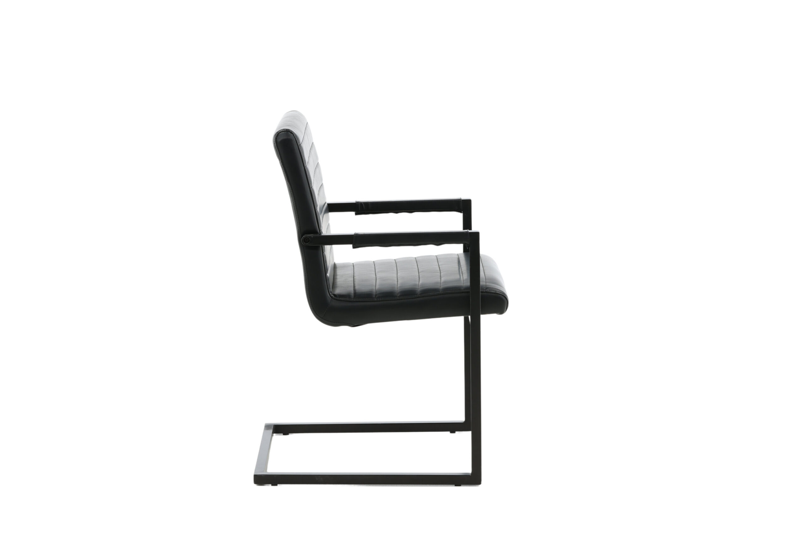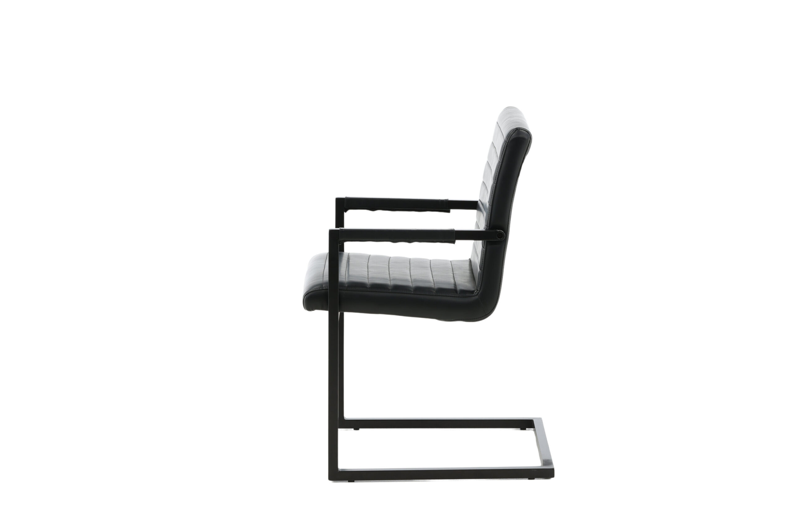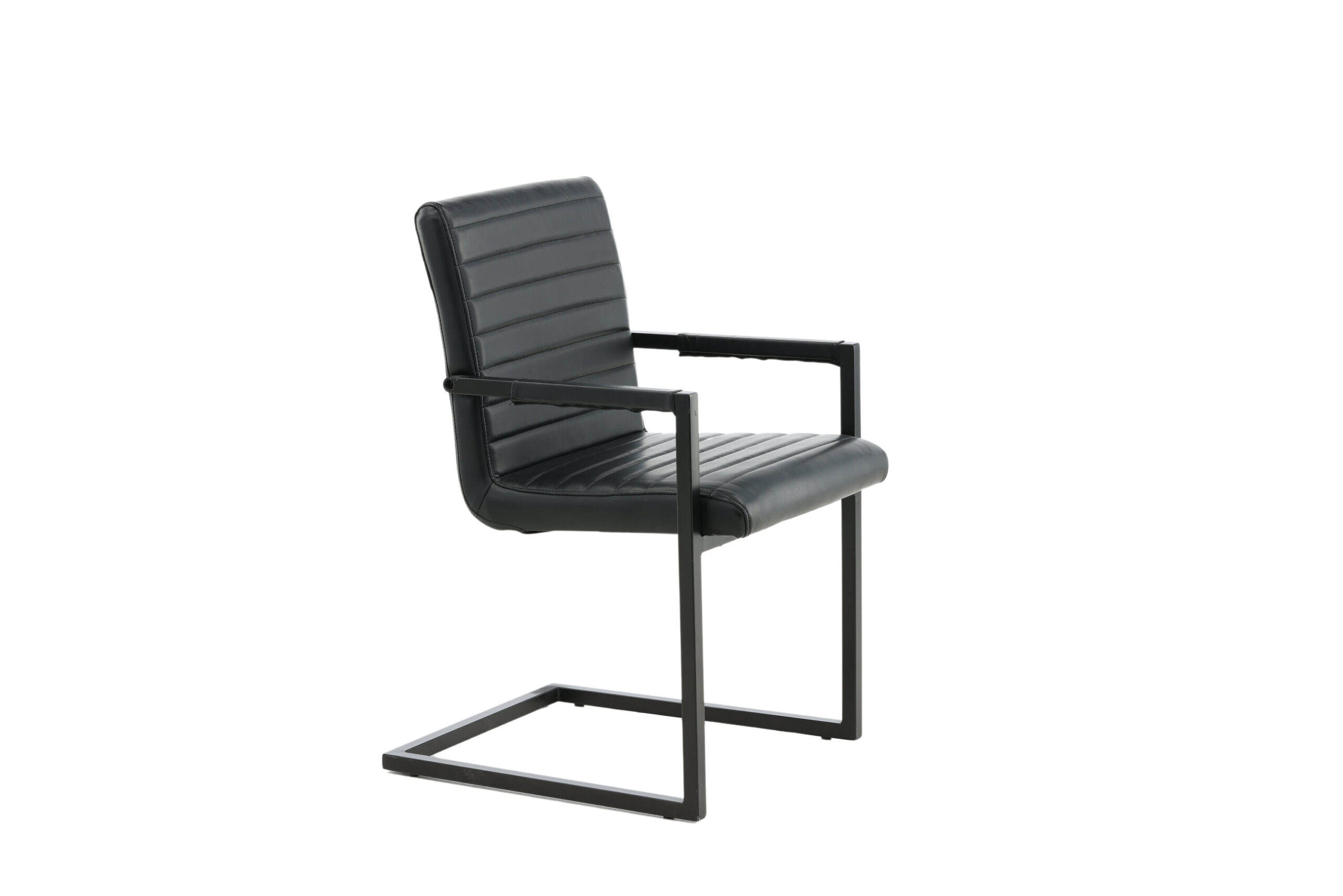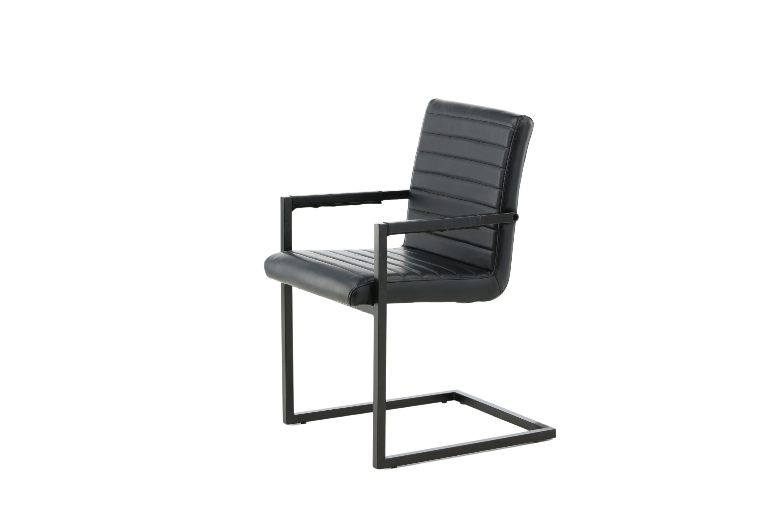 Valgomojo kėdė iš kolekcijos Art - tai industrinio dizaino, pilnai išbaigtas fotelis / krėslas su kaimišku pagrindu ir integruotu juodos spalvos, milteliniu būdu dengto metalo porankiu. Platus atlošas ir sėdimoji dalis, užtikrinantys didesnį patogumą, pagaminti iš juodos dirbtinės odos su gražaus rašto dekoratyviniais dygsniais atloše ir sėdimosios dalies vidinėje pusėje. Lengvai surenkama.