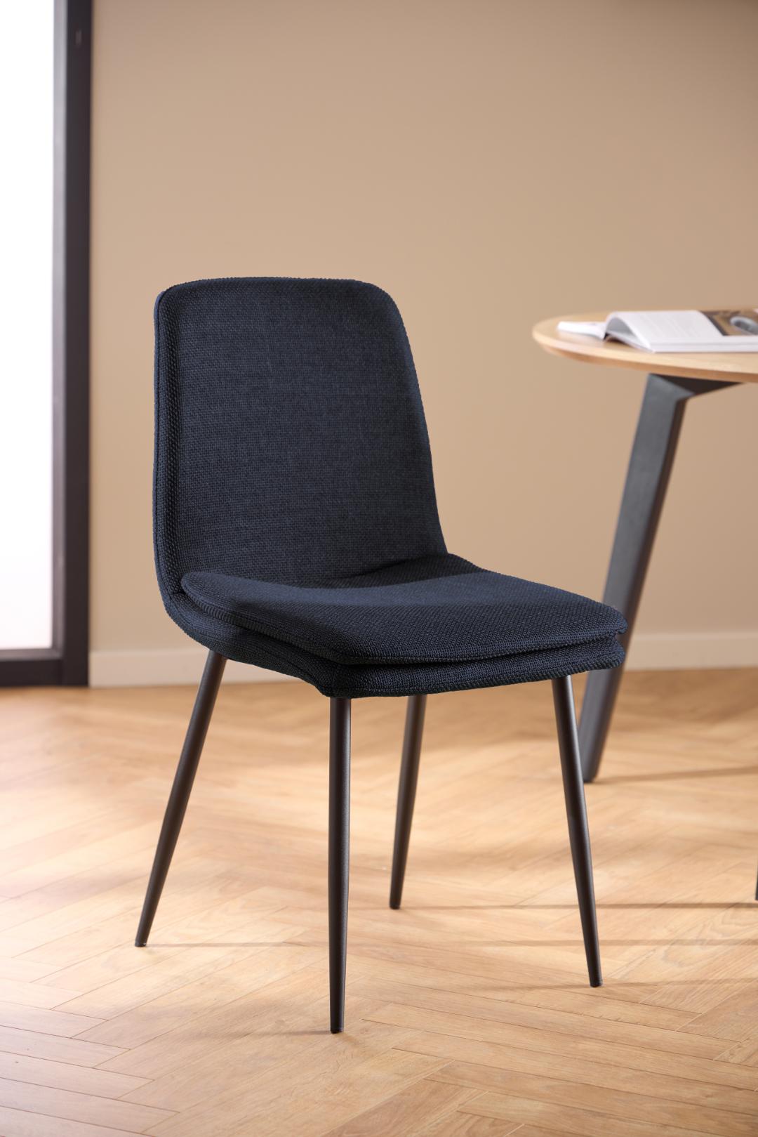 Becca valgomojo kėdė, Basel kolekcijos tamsiai mėlynos spalvos audinys 8952, plieninės kojos, dengtos juoda matine šiurkščios faktūros milteline danga.