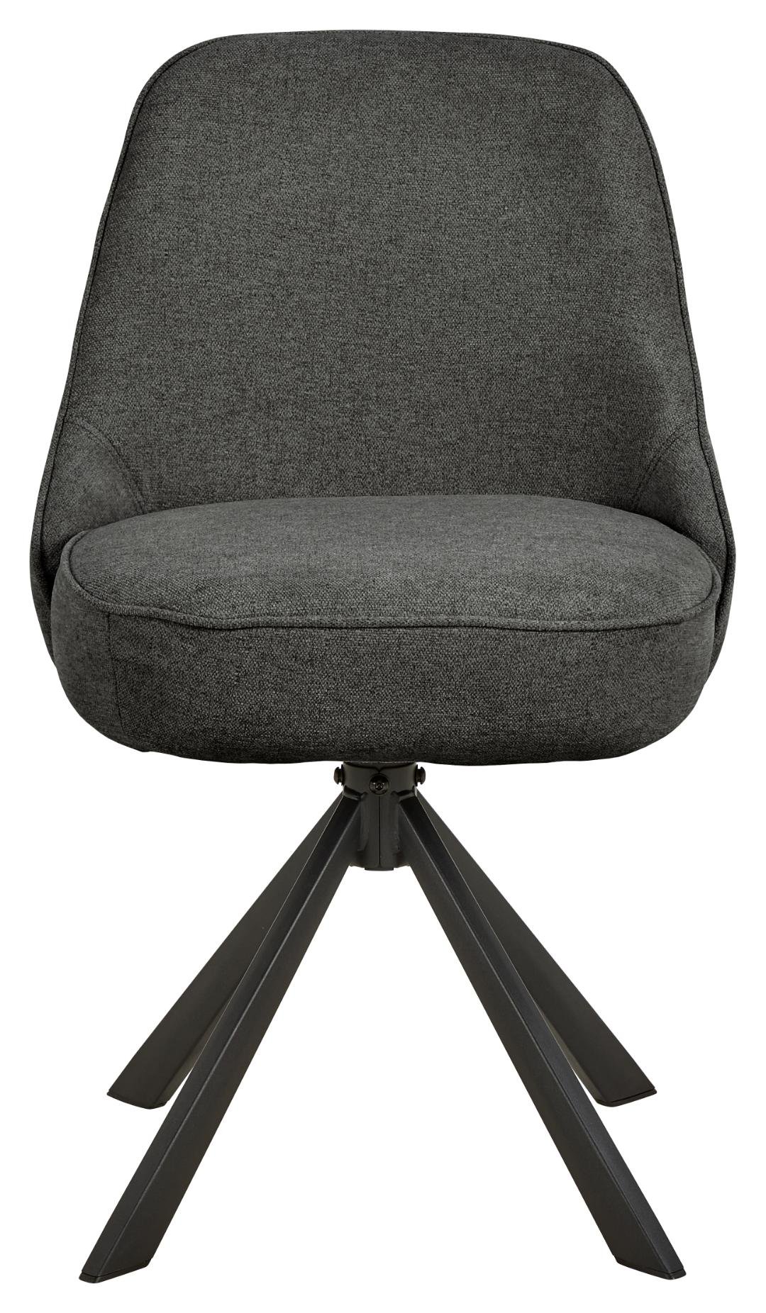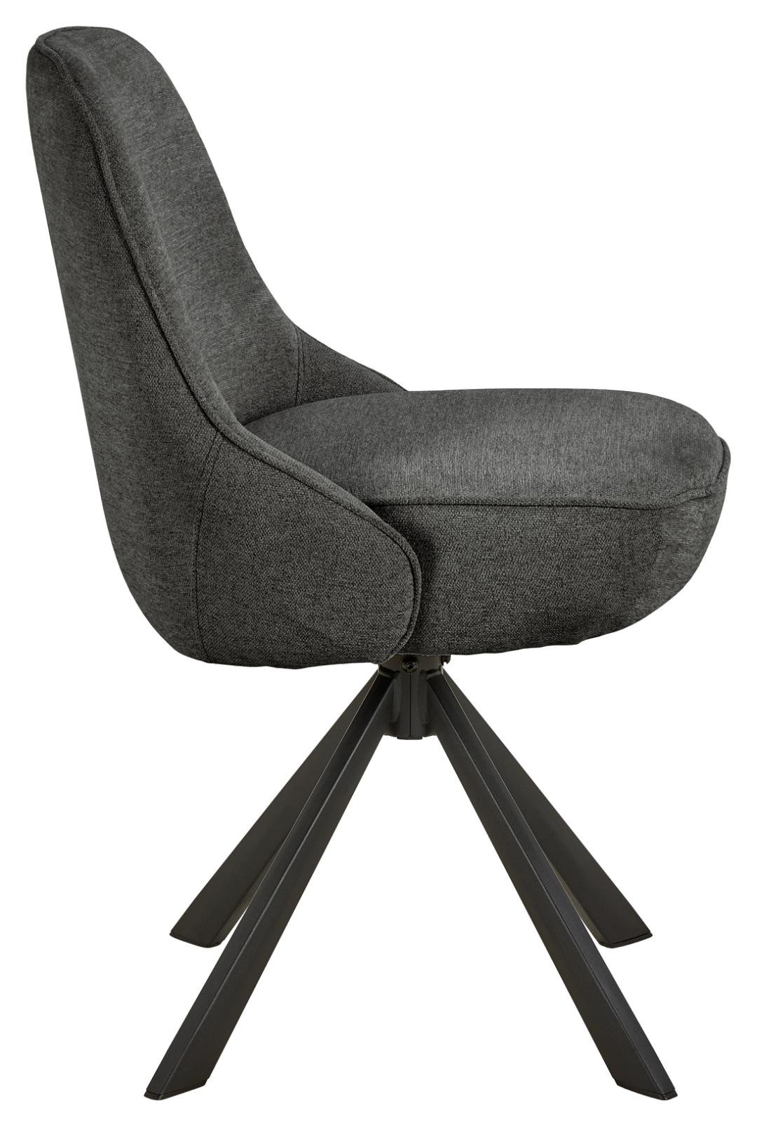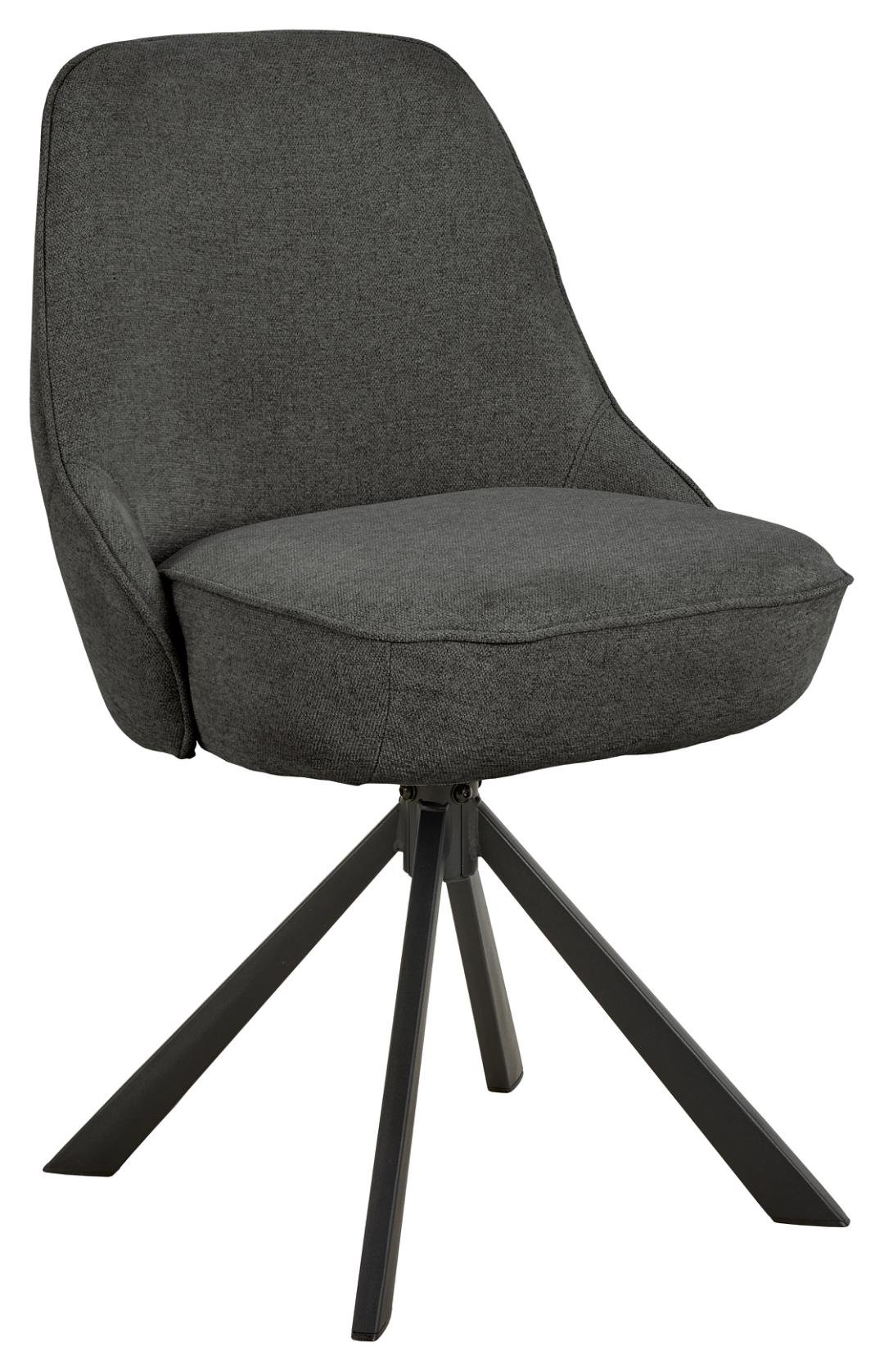 Carlton valgomojo kėdė, Apia kolekcijos tamsiai pilkos spalvos audinys 458, keturių atšakų pagrindas – plieninis, dengtas juoda matine šiurkščios faktūros milteline danga, su kišeninėmis spyruoklėmis ir pasukimo funkcija.