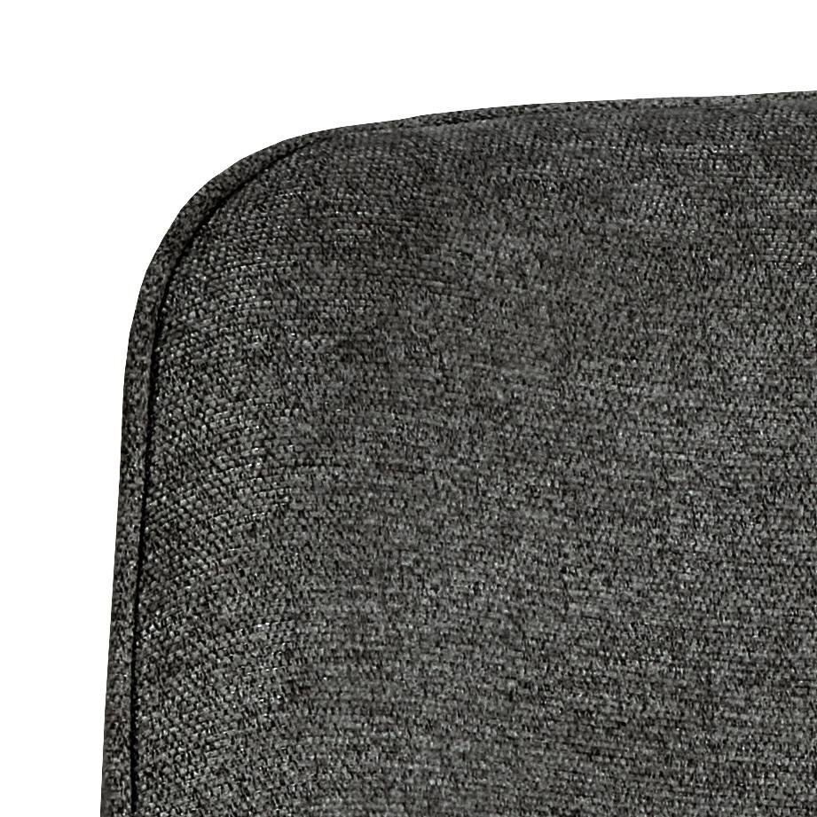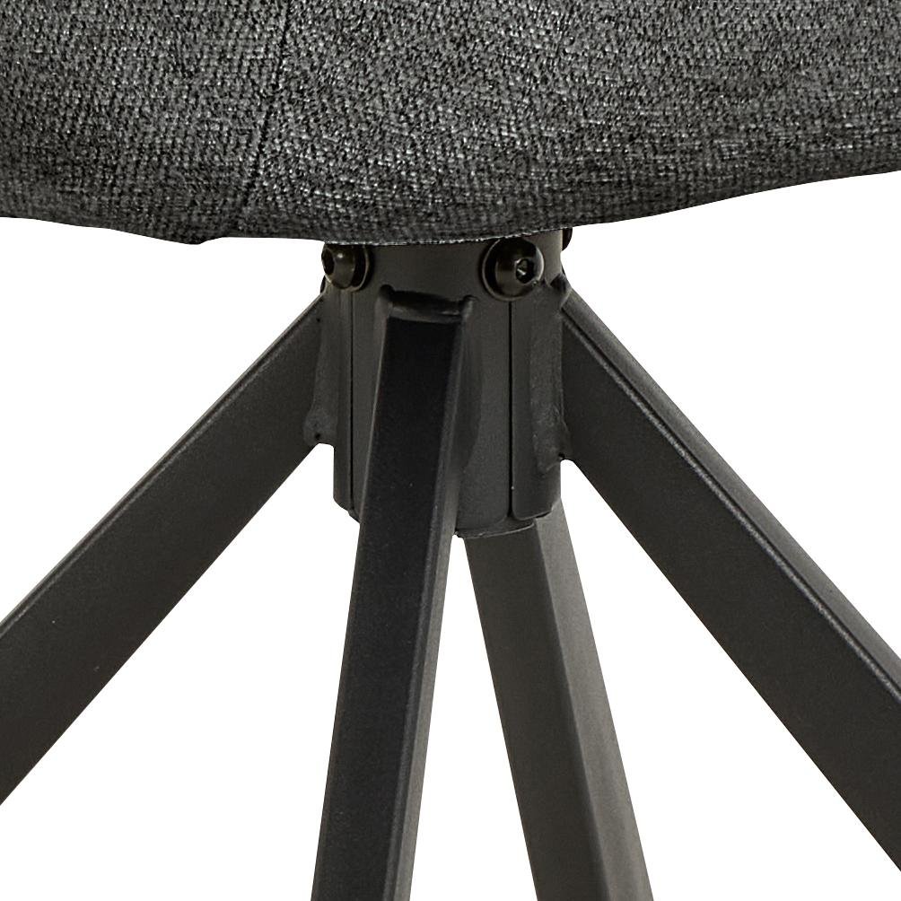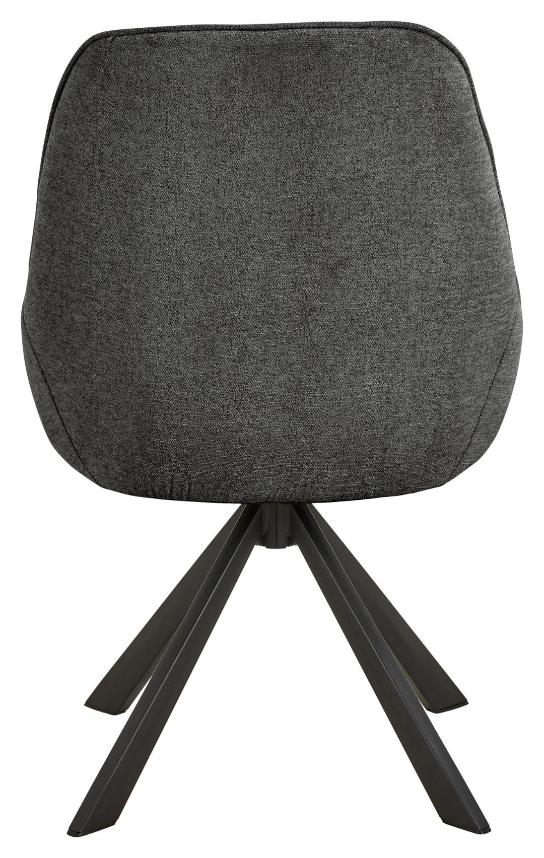 Carlton valgomojo kėdė, Apia kolekcijos tamsiai pilkos spalvos audinys 458, keturių atšakų pagrindas – plieninis, dengtas juoda matine šiurkščios faktūros milteline danga, su kišeninėmis spyruoklėmis ir pasukimo funkcija.