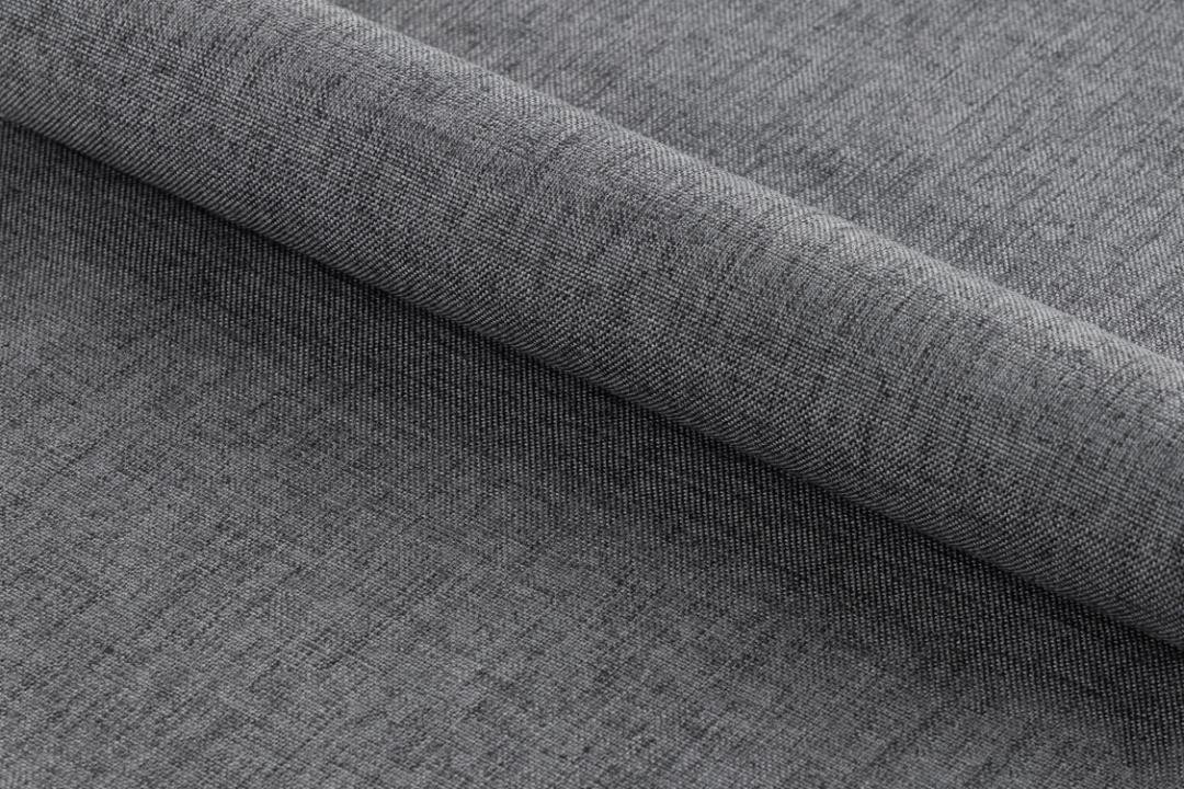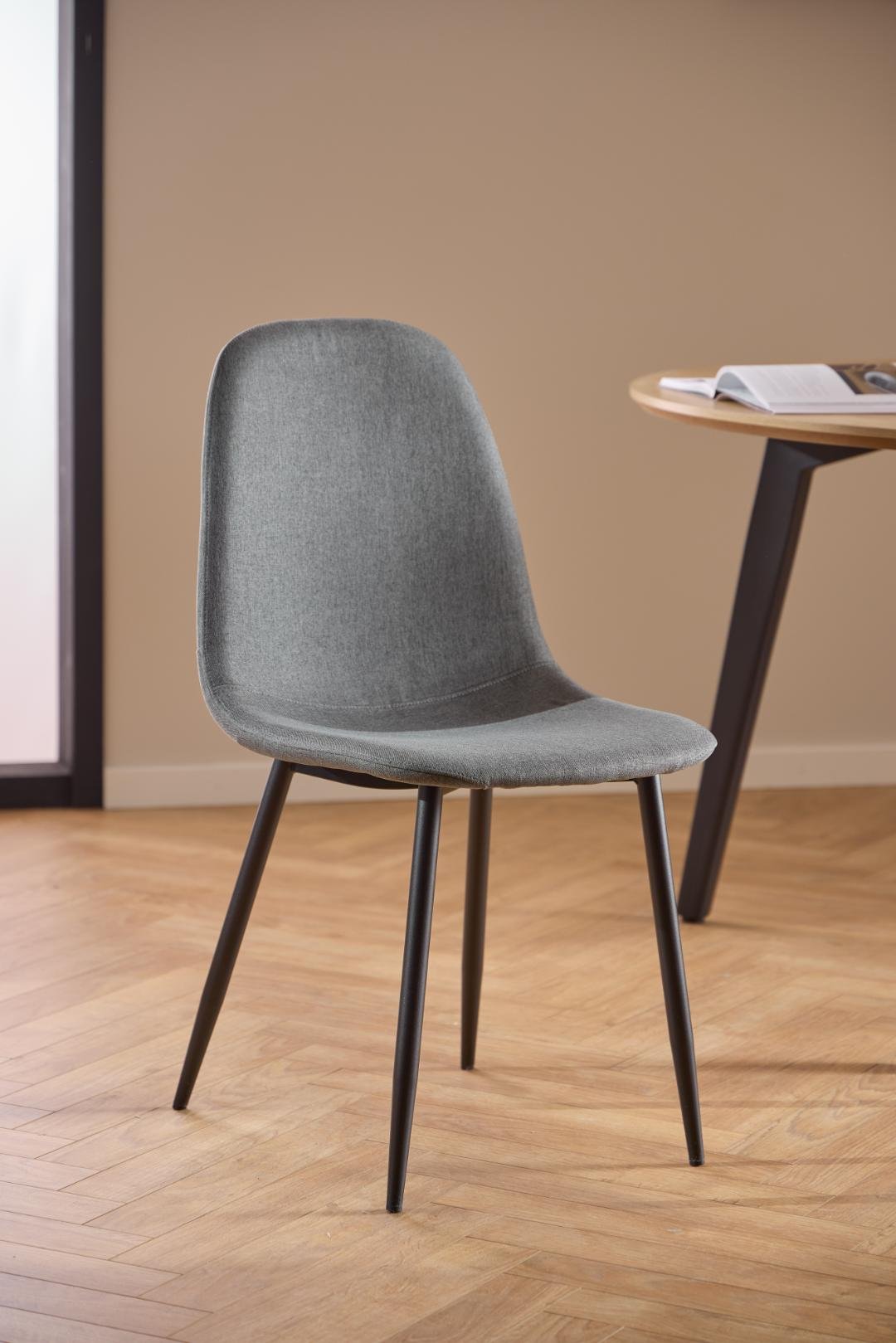 Celia valgomojo kėdė, Nesia kolekcijos tamsiai pilkos spalvos audinys 29, plieninės kojos, dengtos juoda matine šiurkščios faktūros milteline danga, su horizontaliais dygsniais.