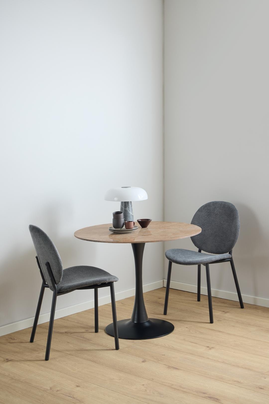 Cliff valgomojo kėdė, Caso kolekcijos antracito spalvos audinys 17, pagrindas – plieninis, dengtas juoda matine šiurkščios faktūros milteline danga, užtrauktukas.