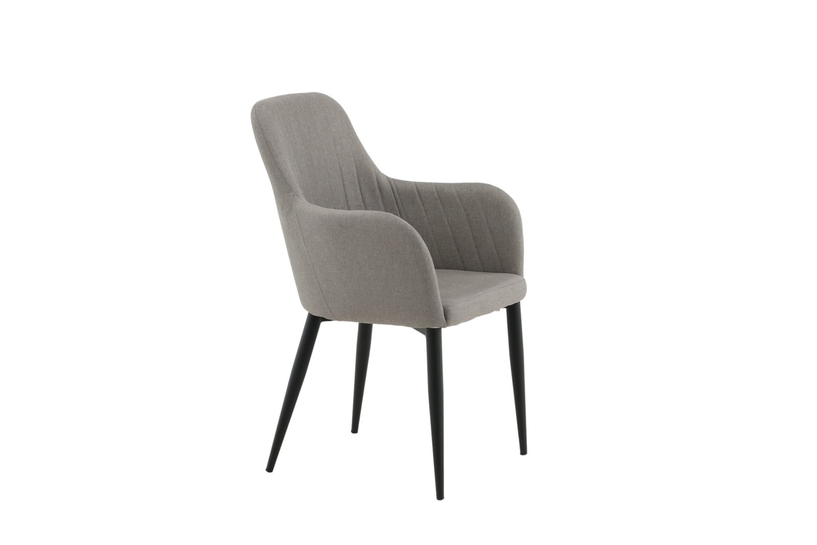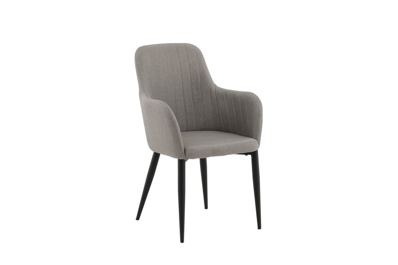 Patogiai įsitaisykite Comfort kolekcijos valgomojo kėdėse! Kėdės rėmas - tvirtas, pilnai išbaigtas dizainas, kojos - iš juodos spalvos milteliniu būdu dažyto metalo. Atlošas ir sėdimoji dalis su integruotais porankiais iš pilko poliesterio audinio. Kėdė pasižymi sėdėjimo komfortu ir patogiu sėdimosios dalies gyliu. Stilinga detalė - puošnūs dygsniai atlošo ir porankių vidinėje pusėje. Lengvai surenkama.